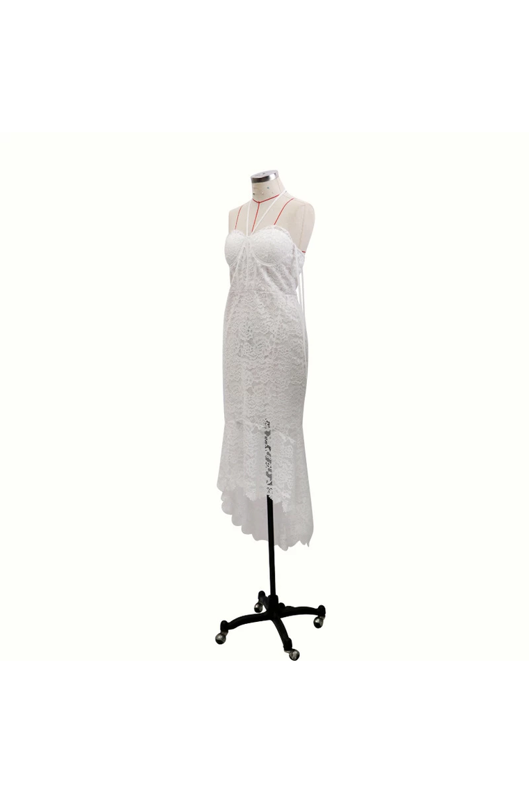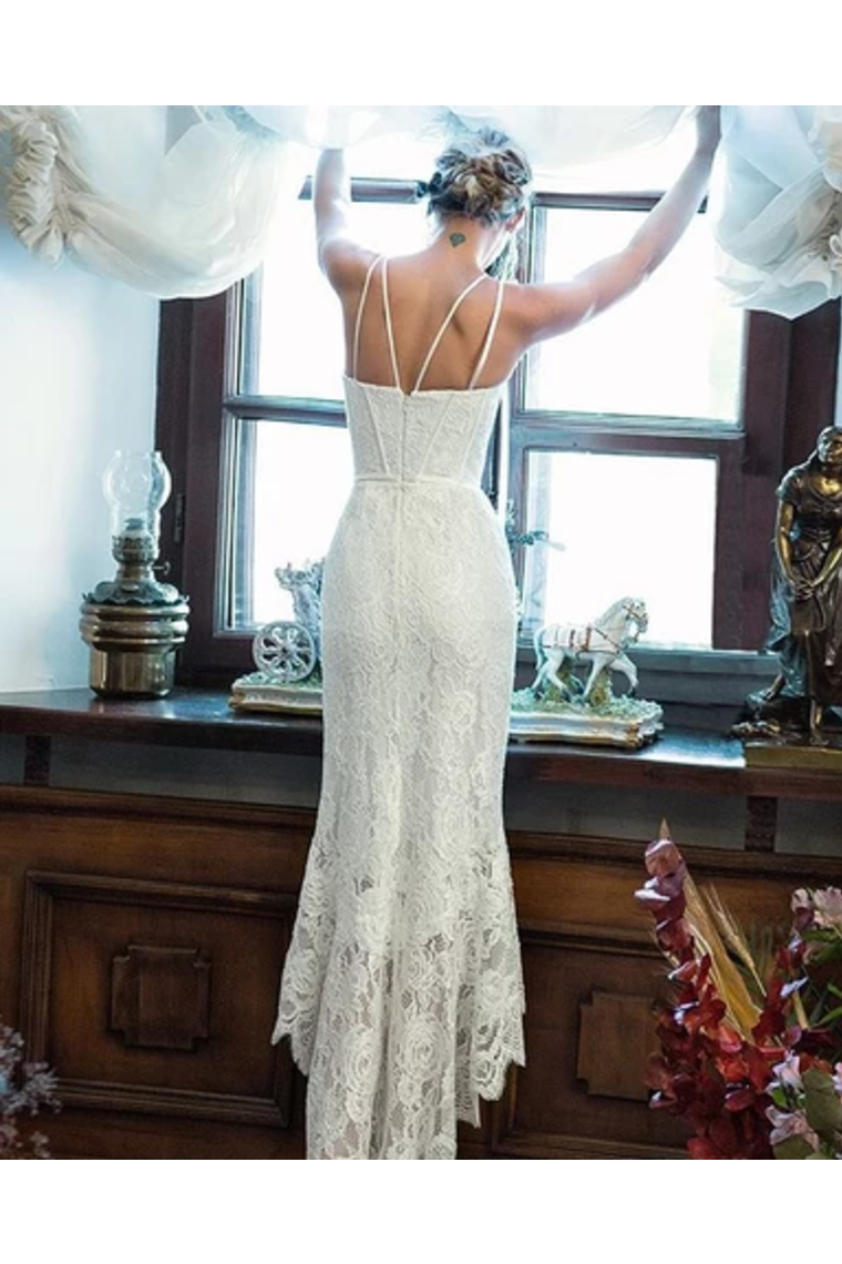 Elegant Lace White Sheath Prom Dress, Lace Simple Wedding Dress