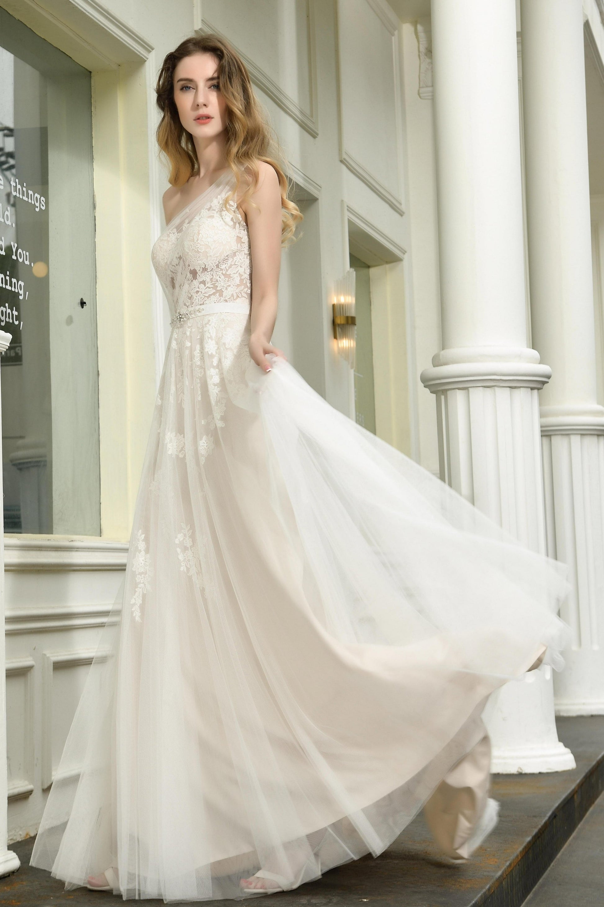 Elegant One Shoulder Sleeveless Tulle Appliques Wedding Dresses