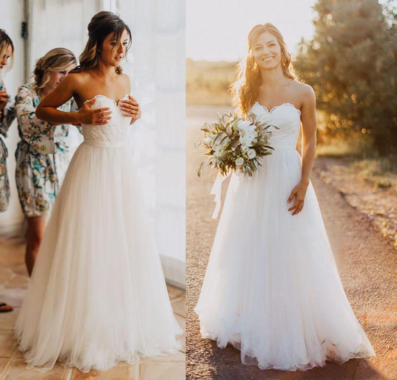 Elegant Tulle Beach 2024 Sweetheart Lace A line Simple Plus Size Country Wedding SRS12176