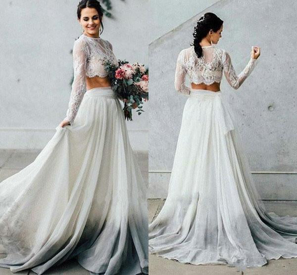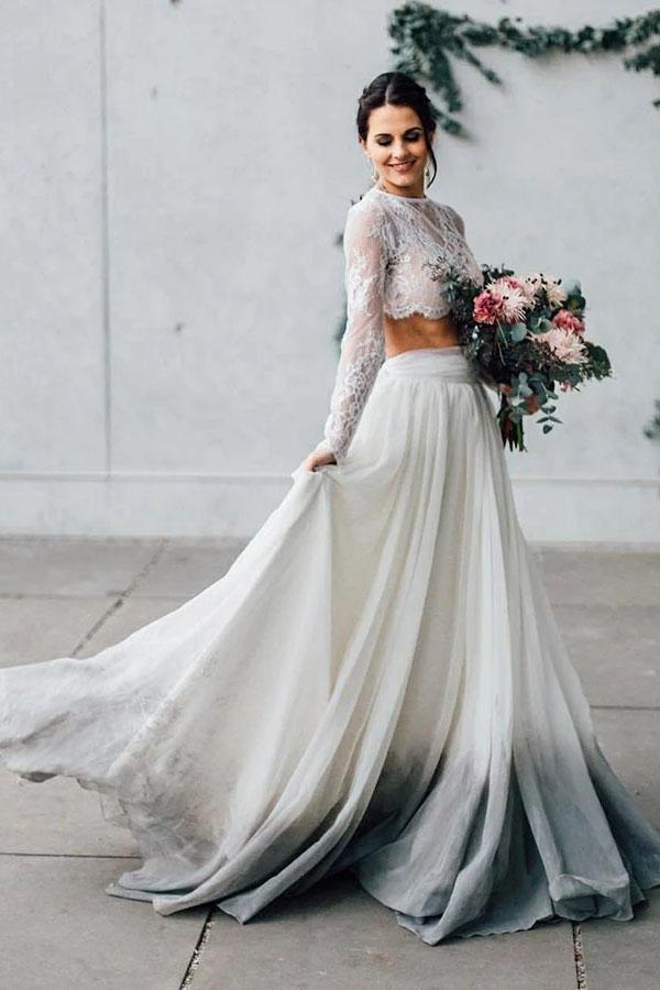 Elegant Two Pieces Chiffon Long Sleeves Wedding Dress with Lace Appliques SRS15209