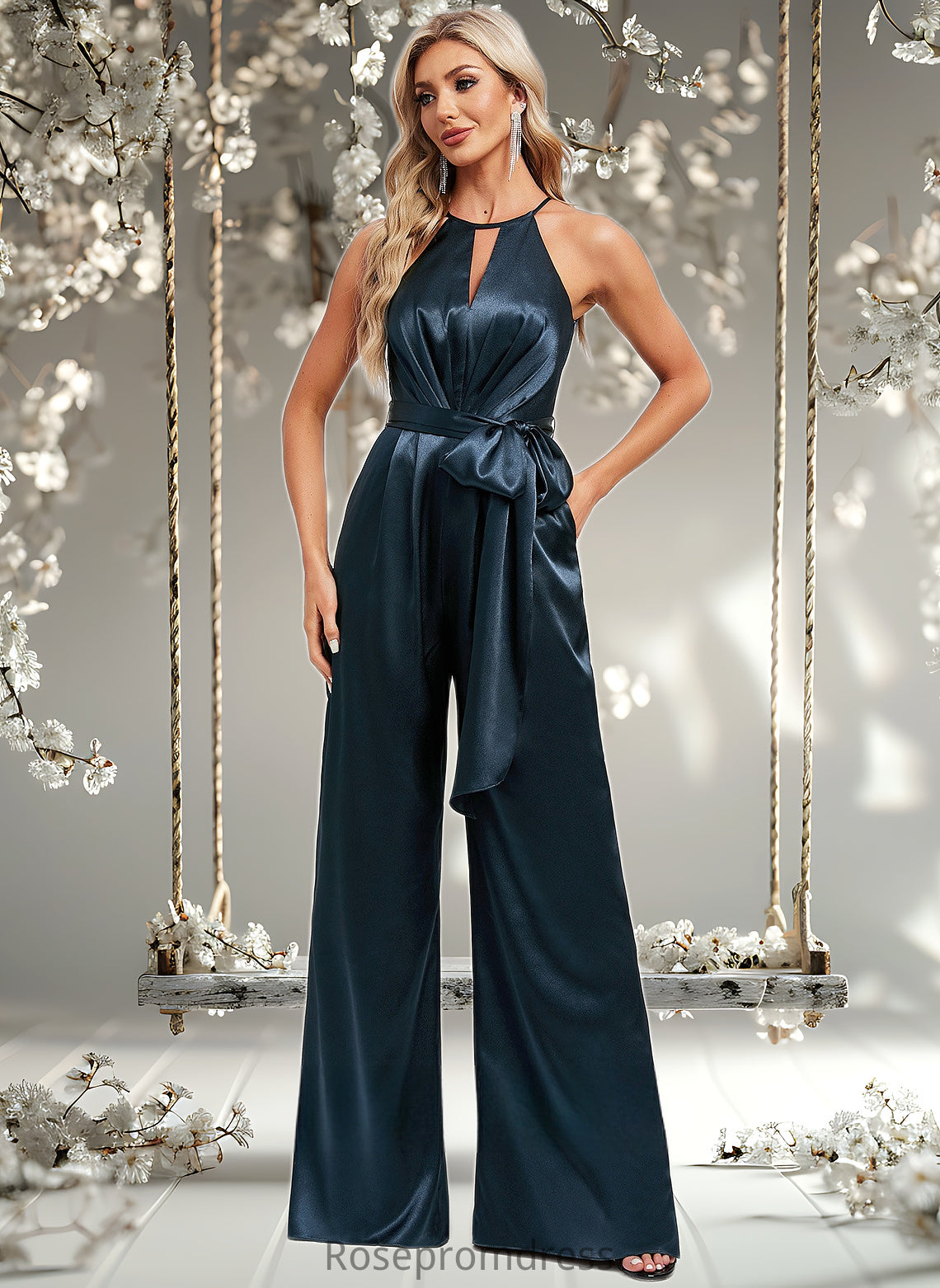 Elliana Jumpsuit/Pantsuit Halter Floor-Length Stretch Satin Bridesmaid Dress DSP0025805