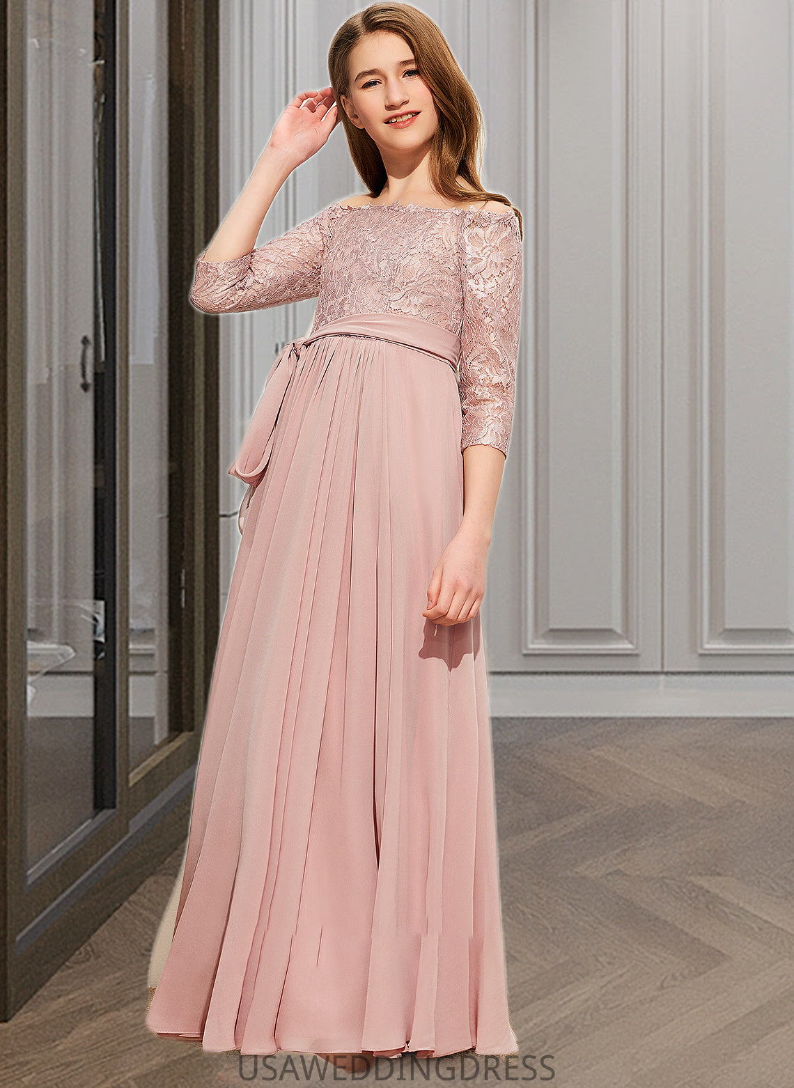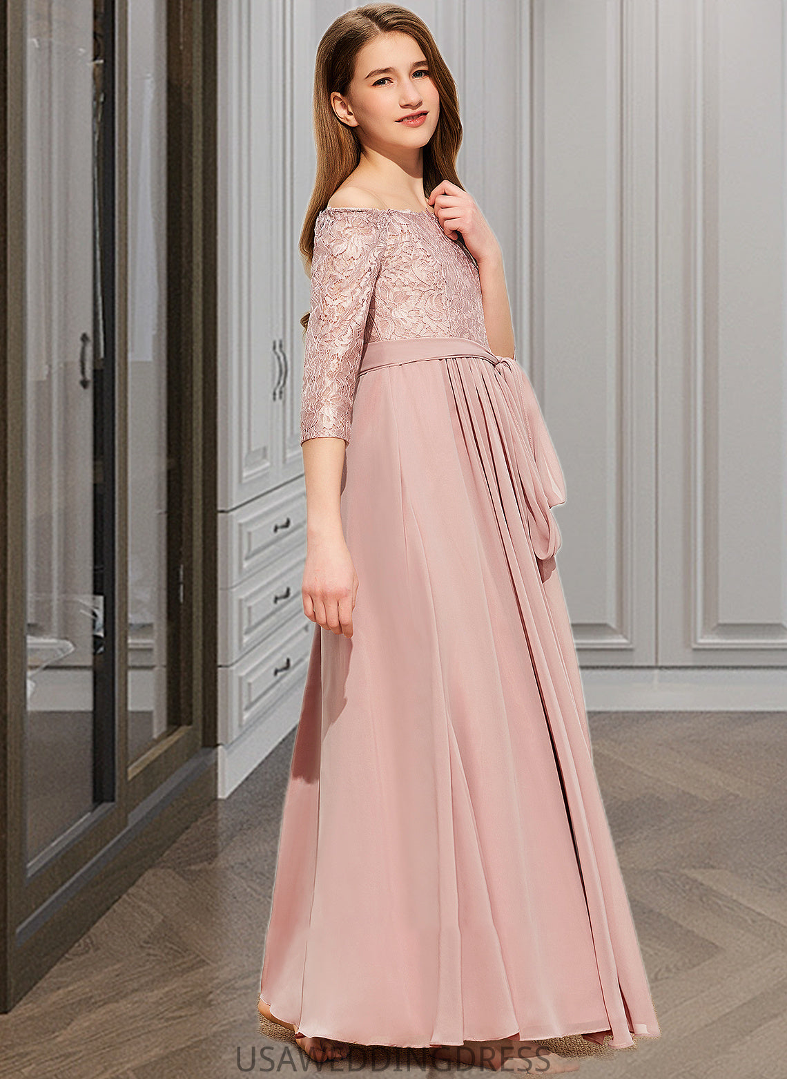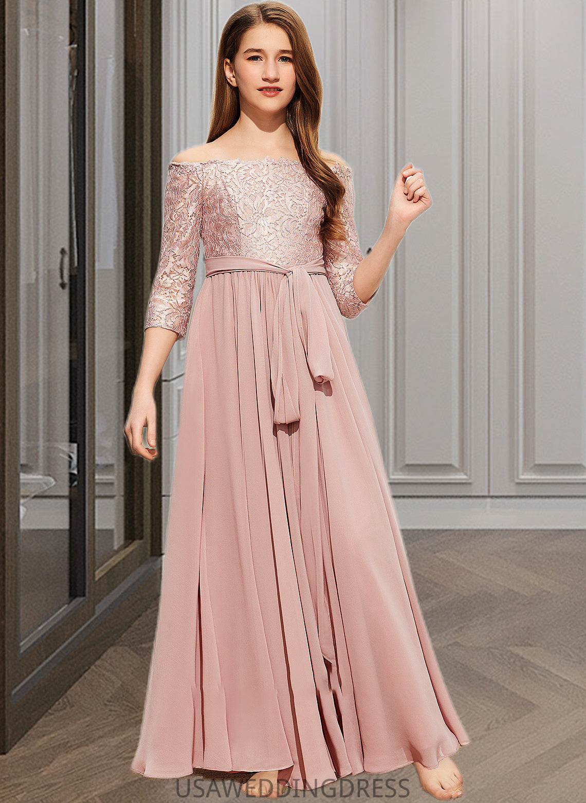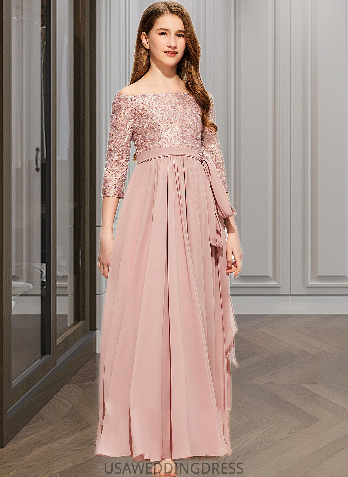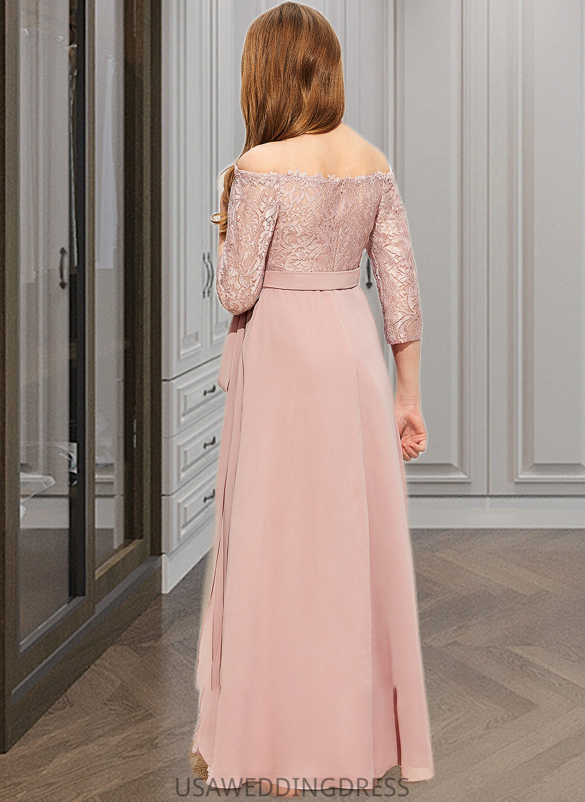 Elsie A-Line Off-the-Shoulder Floor-Length Chiffon Lace Junior Bridesmaid Dress With Bow(s) DSP0013658