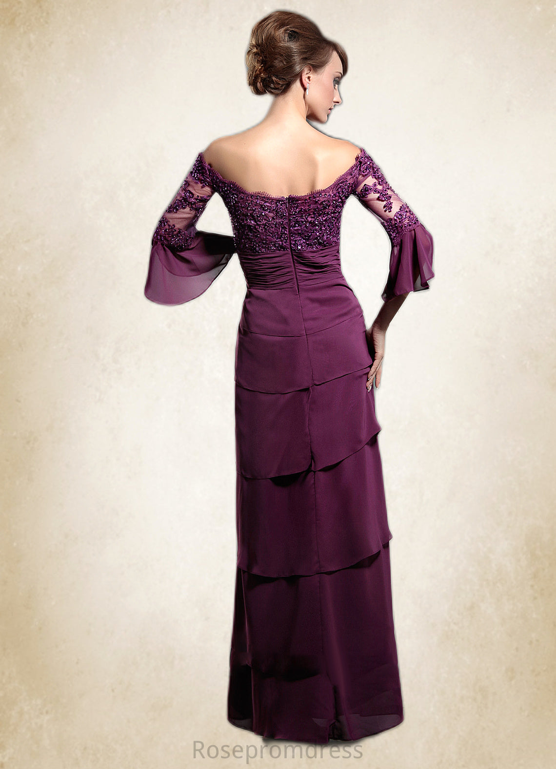 Elvira A-Line Off-the-Shoulder Floor-Length Chiffon Mother of the Bride Dress With Lace Beading Sequins Bow(s) Cascading Ruffles SRS126P0014726