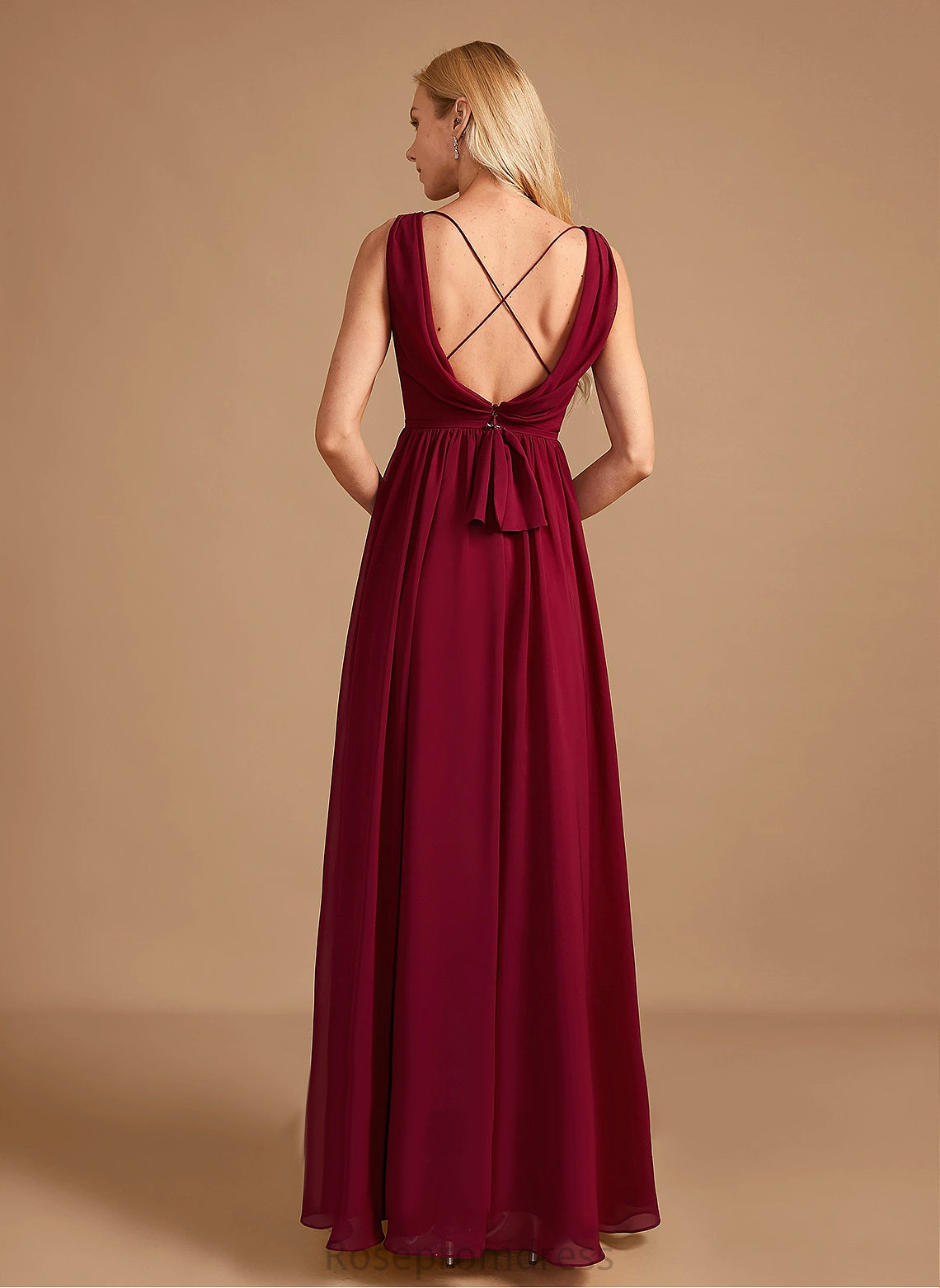 Embellishment Length Floor-Length Silhouette Neckline A-line Fabric HighNeck Beryl A-Line/Princess Sleeveless Spaghetti Staps Bridesmaid Dresses