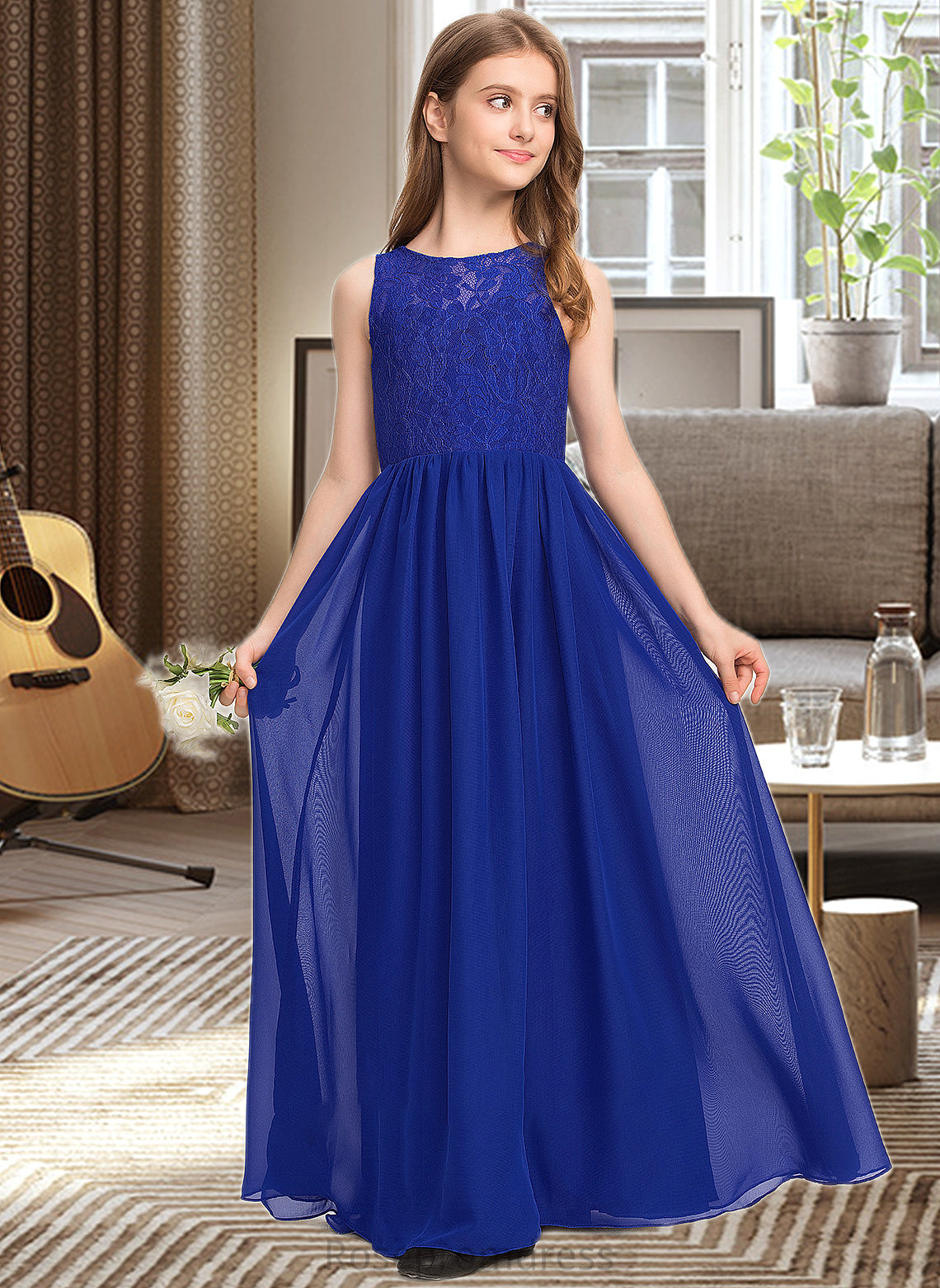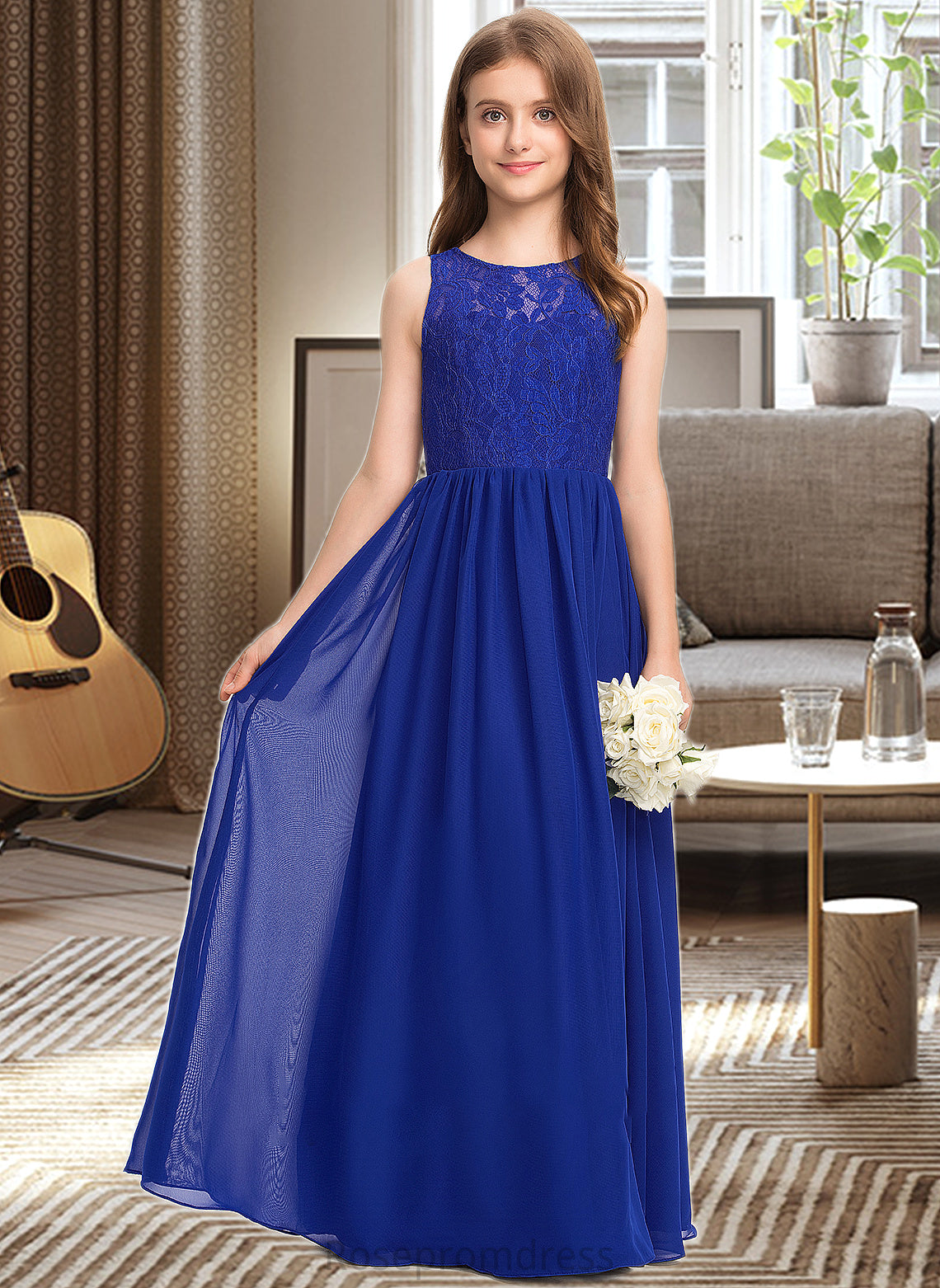 Emmalee A-Line Scoop Neck Floor-Length Chiffon Lace Junior Bridesmaid Dress SRSP0013469
