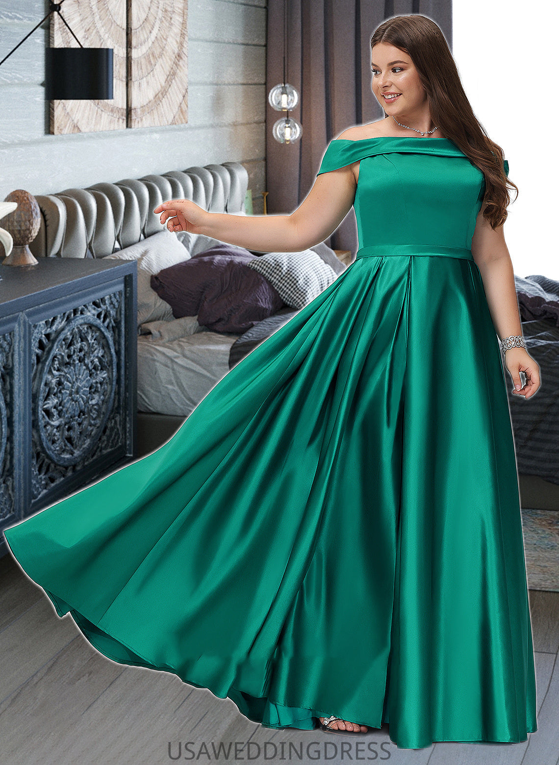 Emmalee Ball-Gown/Princess Off-the-Shoulder Floor-Length Satin Bridesmaid Dress With Split Front Pockets DSP0012866
