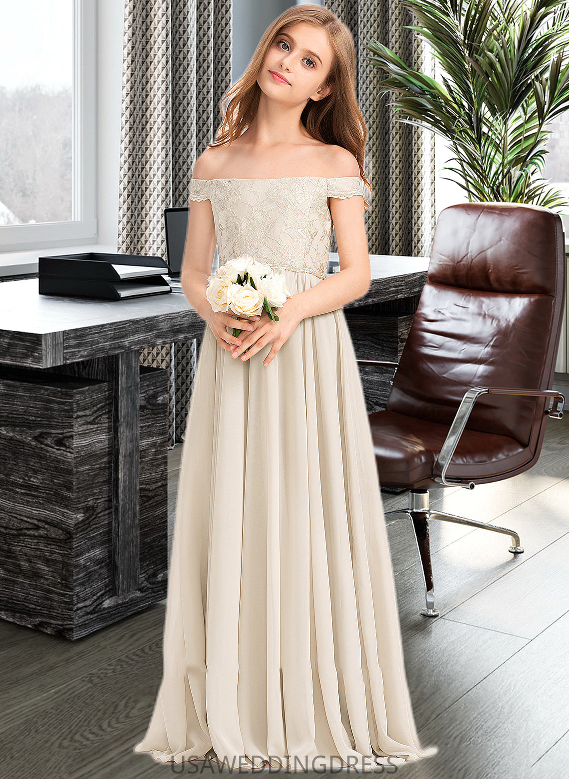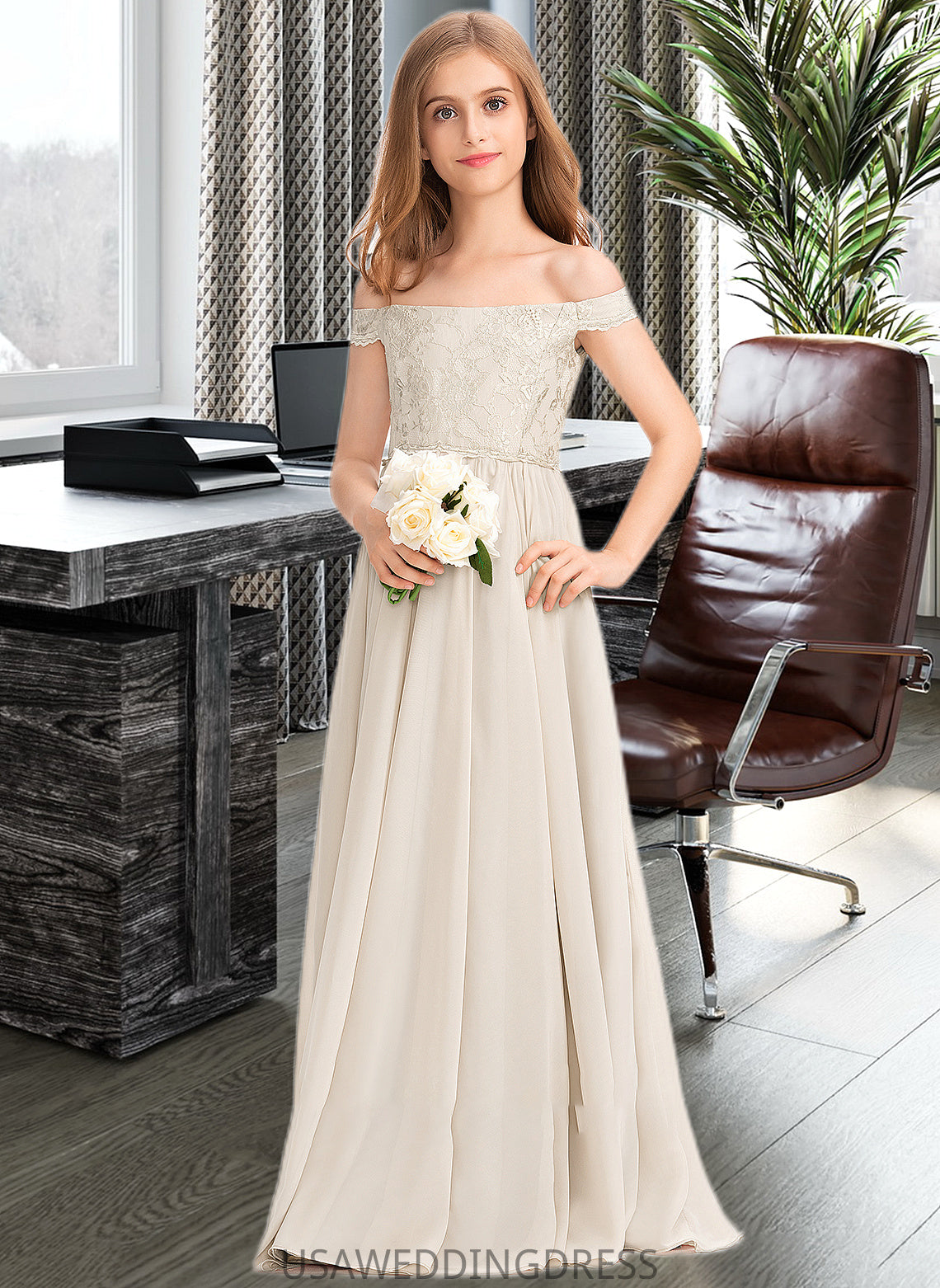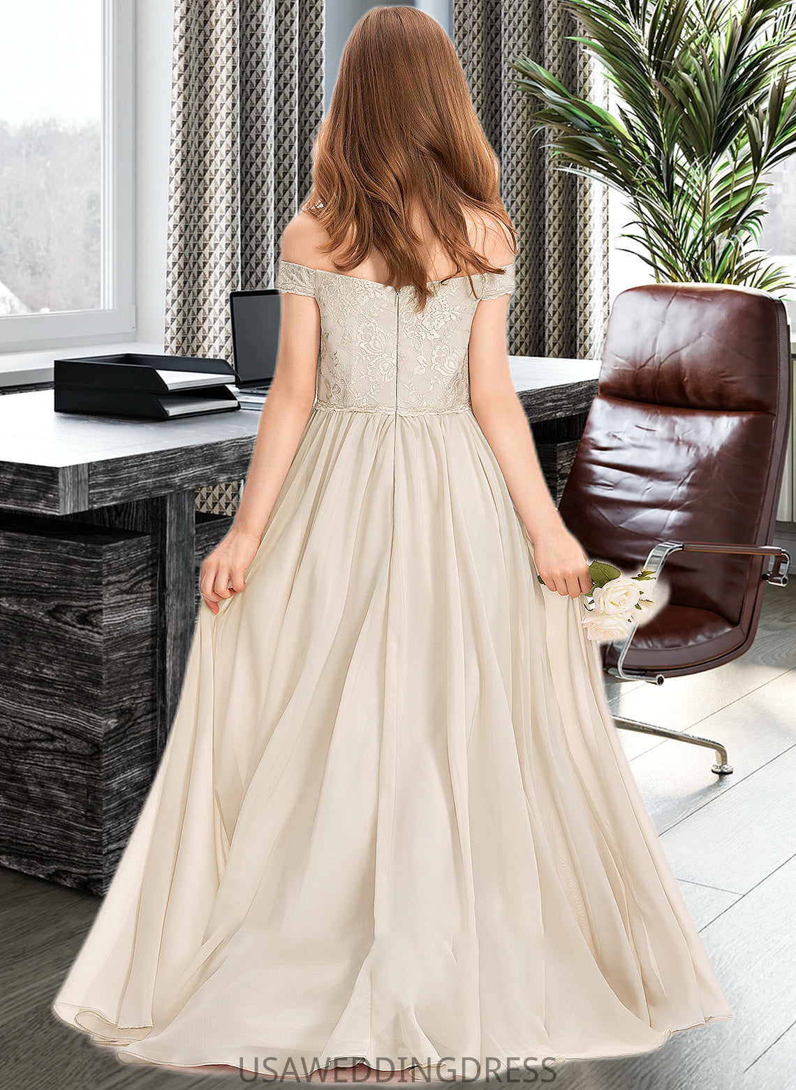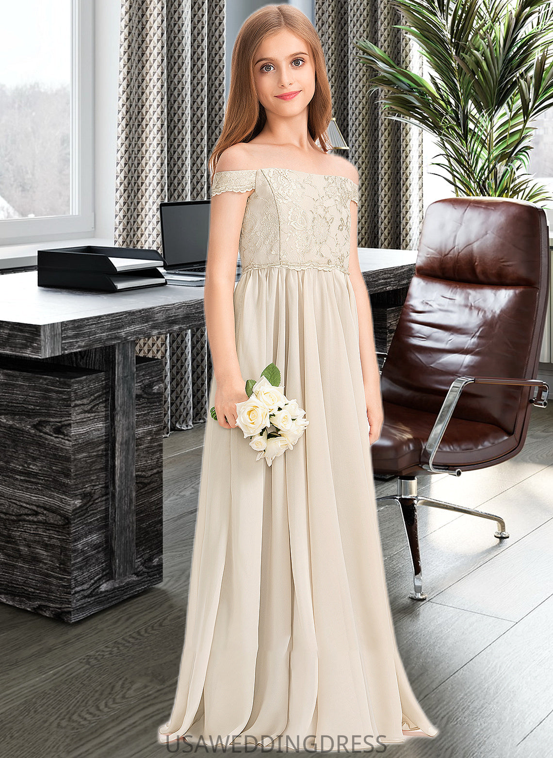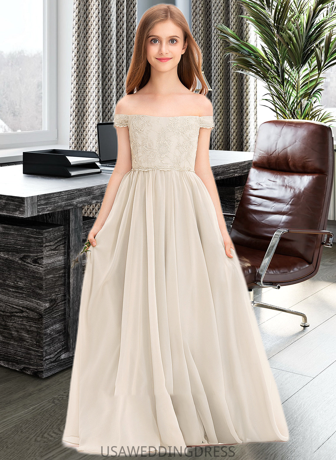Esperanza A-Line Off-the-Shoulder Floor-Length Chiffon Lace Junior Bridesmaid Dress DSP0013514