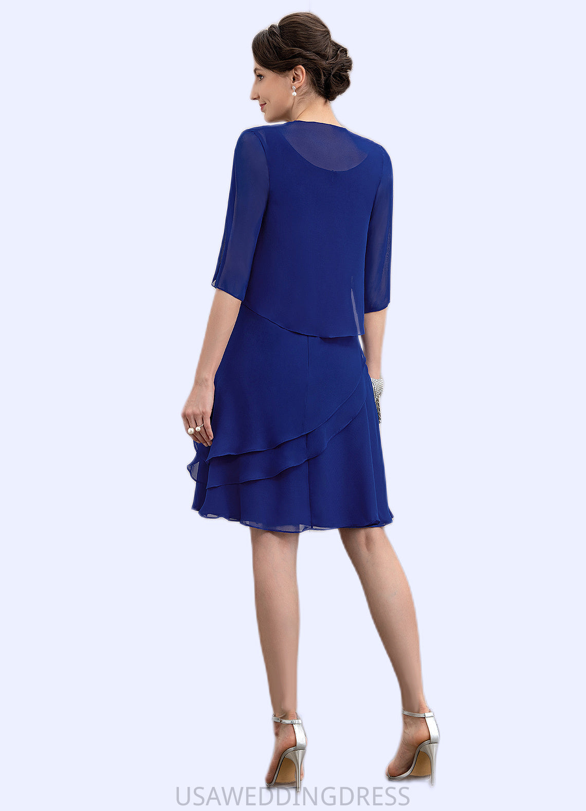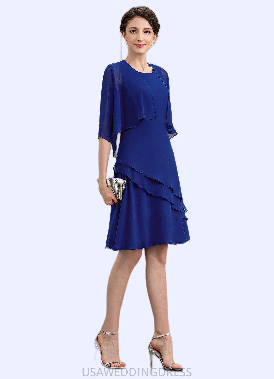 Eva A-Line Scoop Neck Knee-Length Chiffon Mother of the Bride Dress With Cascading Ruffles DS126P0014884