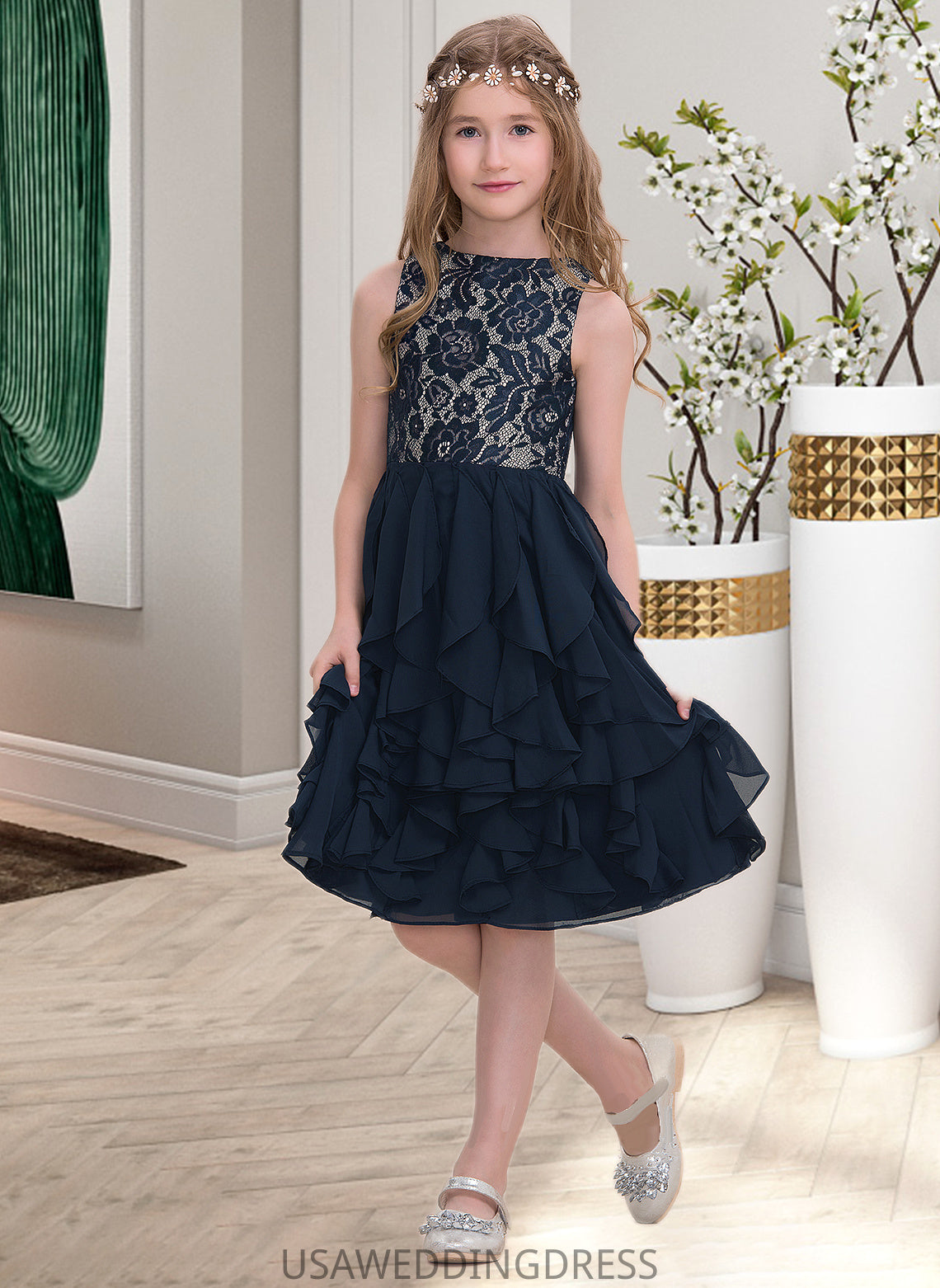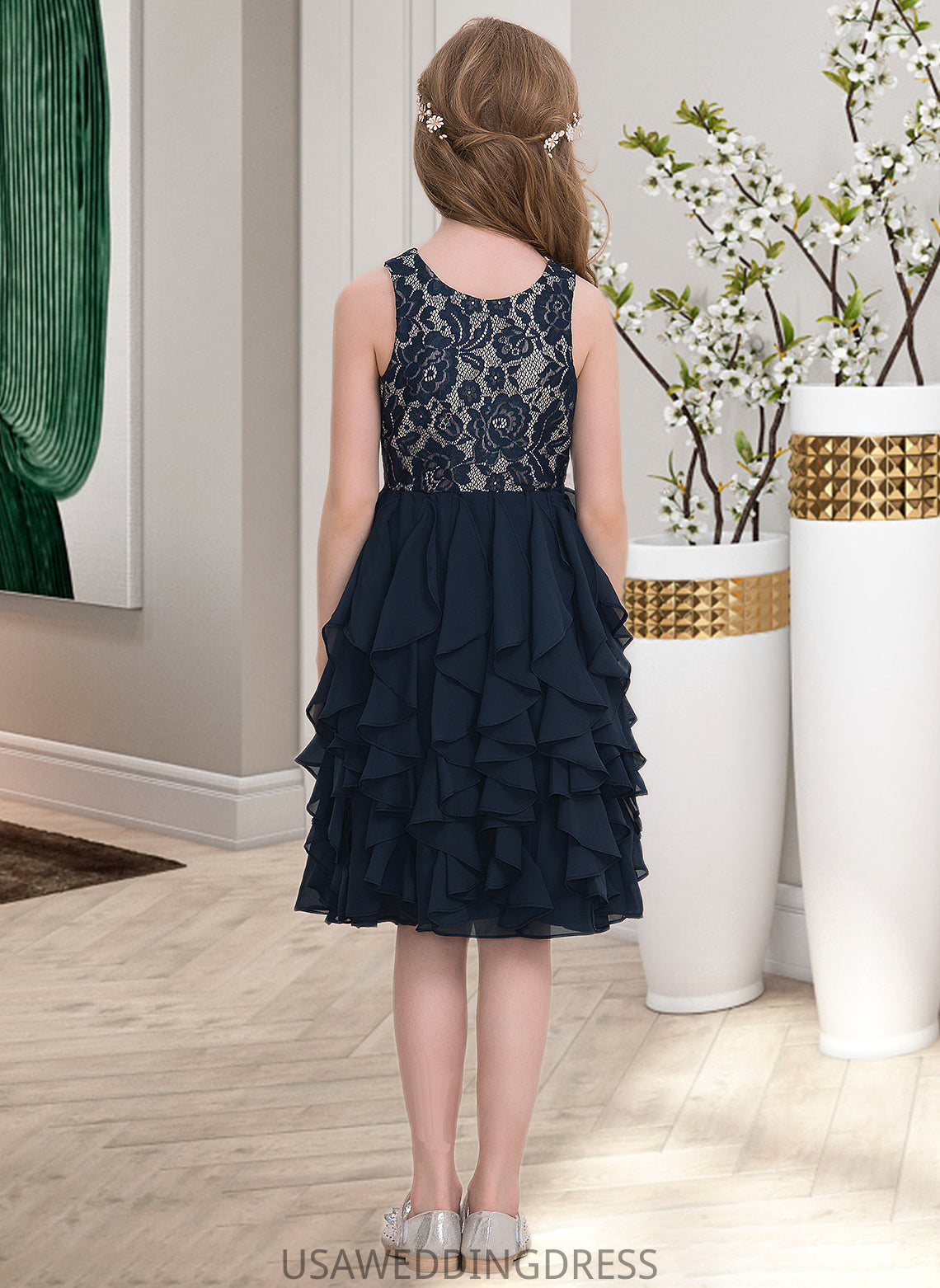 Evelin A-Line Scoop Neck Knee-Length Chiffon Junior Bridesmaid Dress With Cascading Ruffles DSP0013543