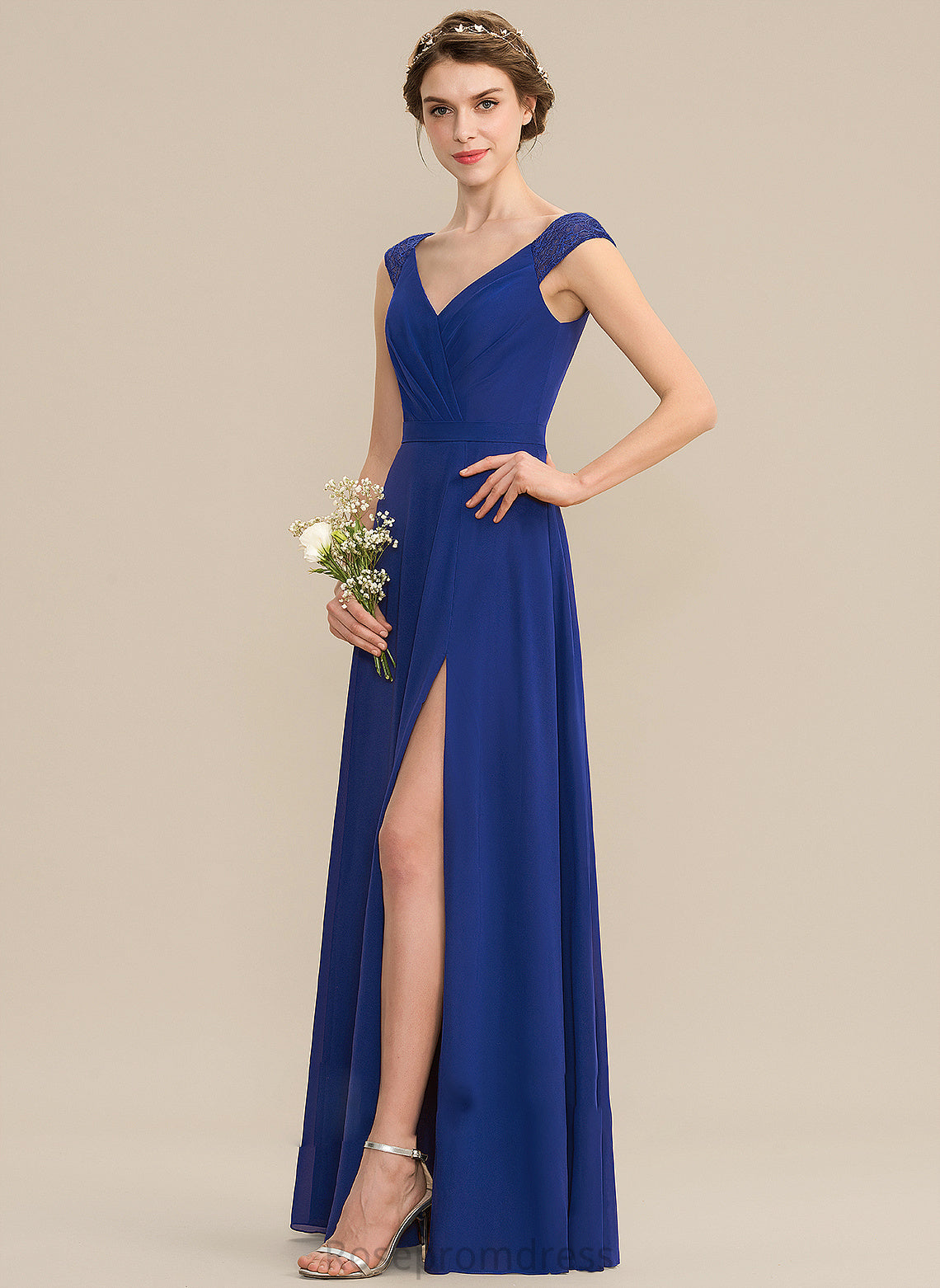 Fabric A-Line SplitFront Length Silhouette V-neck Embellishment Floor-Length Ruffle Neckline Jordin V-Neck Bridesmaid Dresses