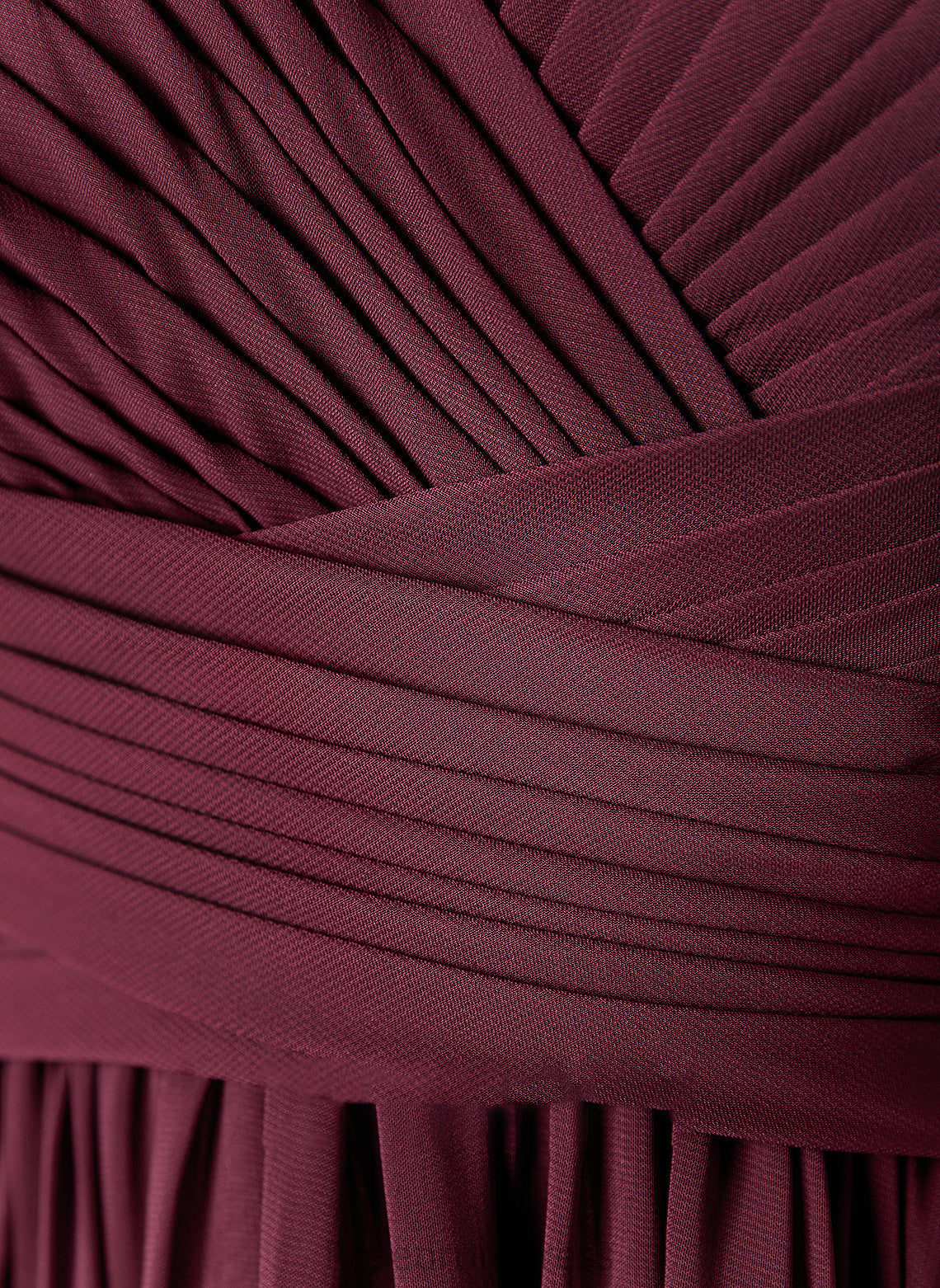 Fabric Silhouette Floor-Length Ruffle V-neck Embellishment Neckline A-Line Length Makenna Bridesmaid Dresses