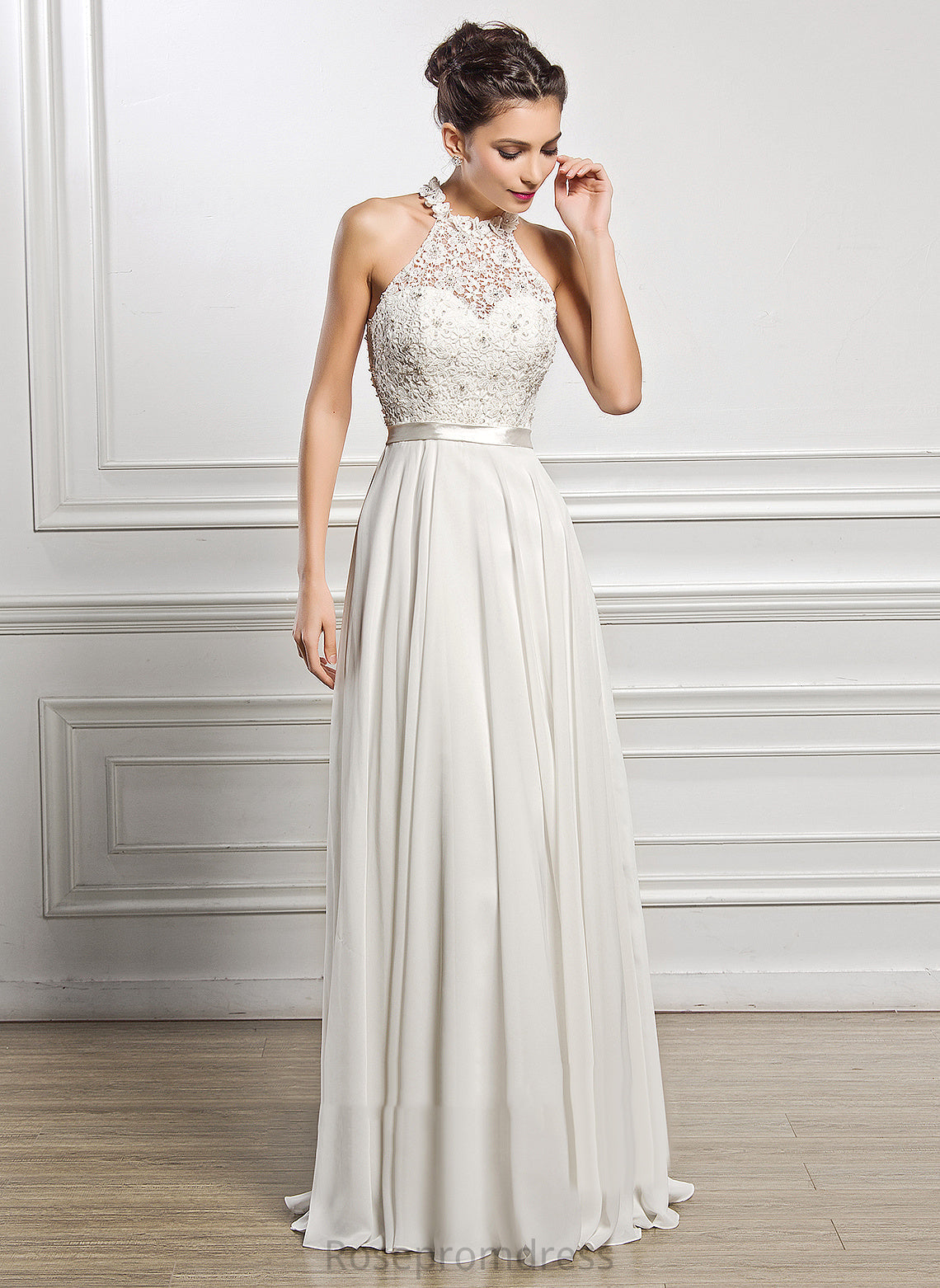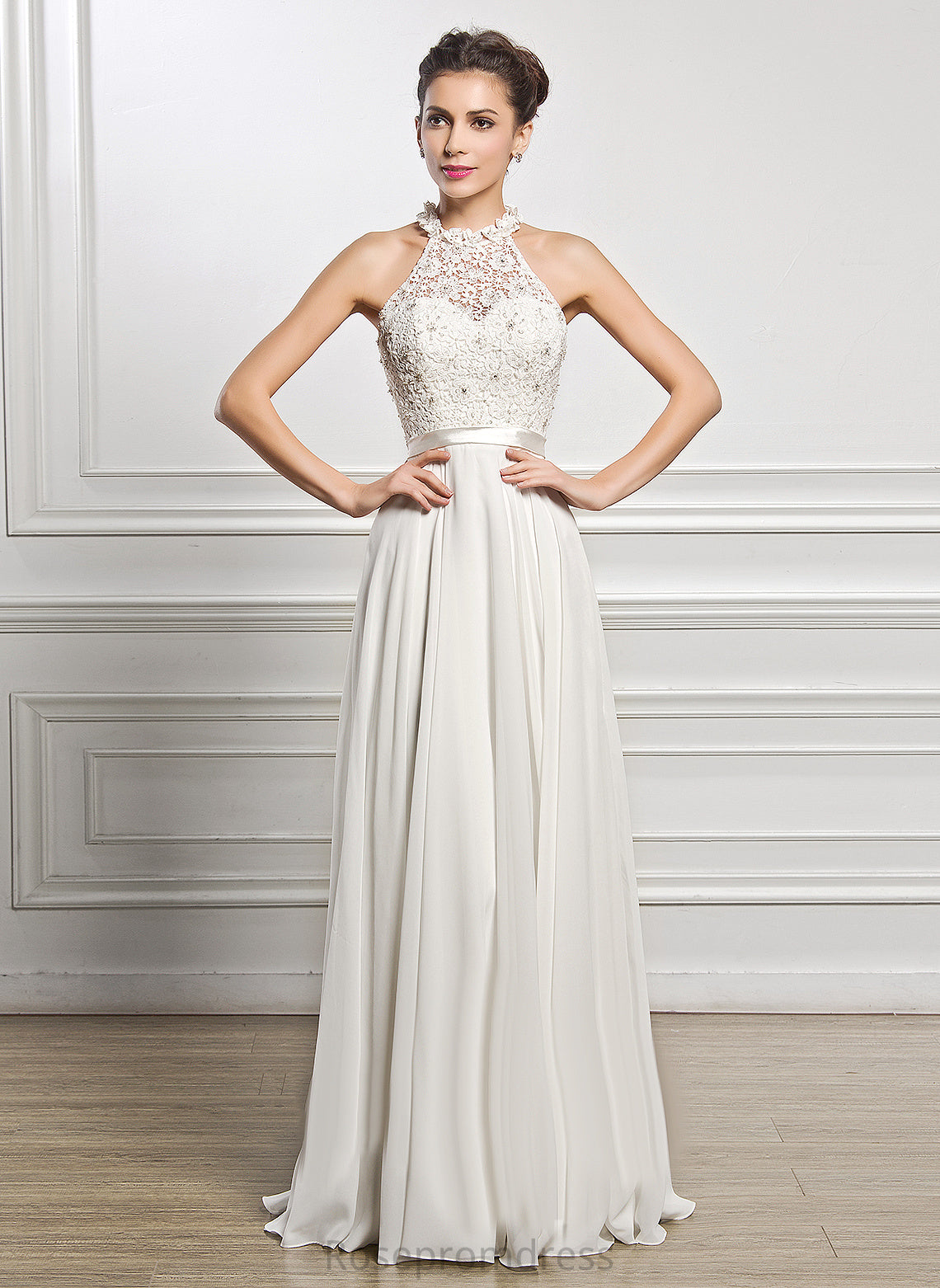 Floor-Length A-Line Shaylee Wedding Chiffon Scoop With Beading Sequins Dress Neck Wedding Dresses Lace