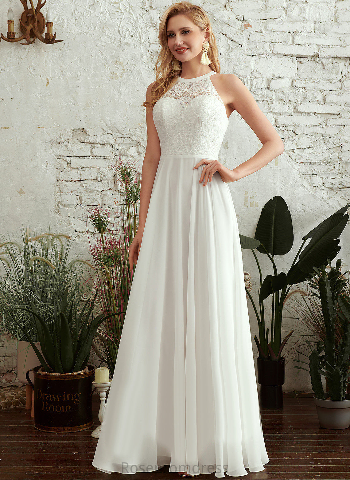 Floor-Length A-Line Wedding Dresses Lucy Chiffon Neck Lace Scoop Wedding Dress