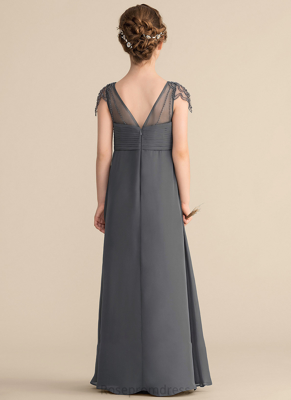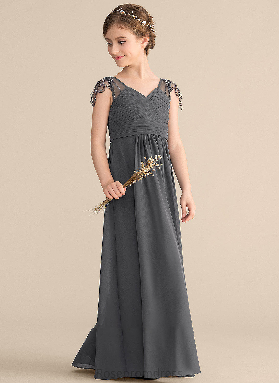 Floor-Length Beading Chiffon Junior Bridesmaid Dresses Hope Ruffle With V-neck A-Line