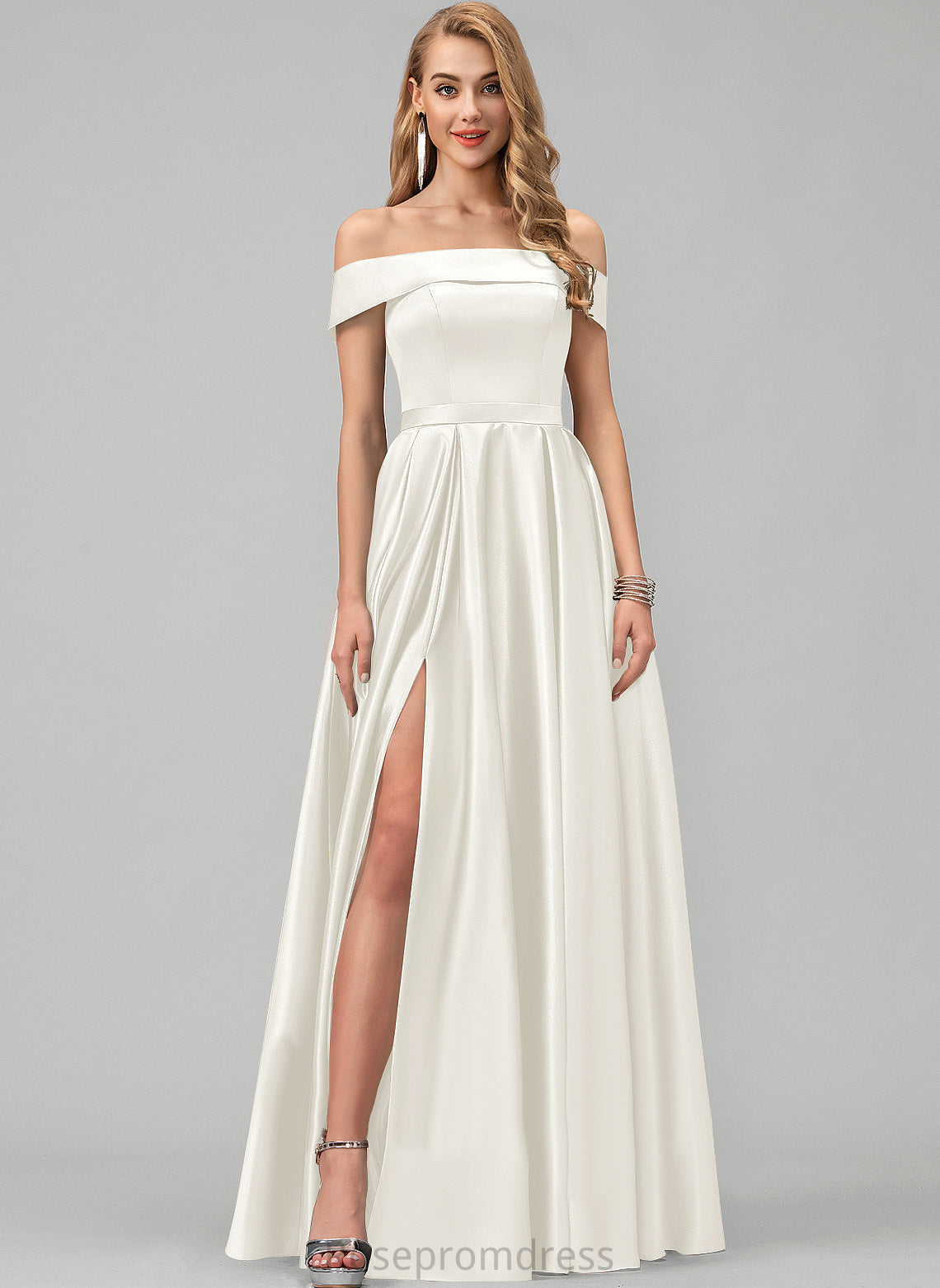 Floor-Length Dress Satin Wedding Dresses Wedding Off-the-Shoulder Ball-Gown/Princess Emilie