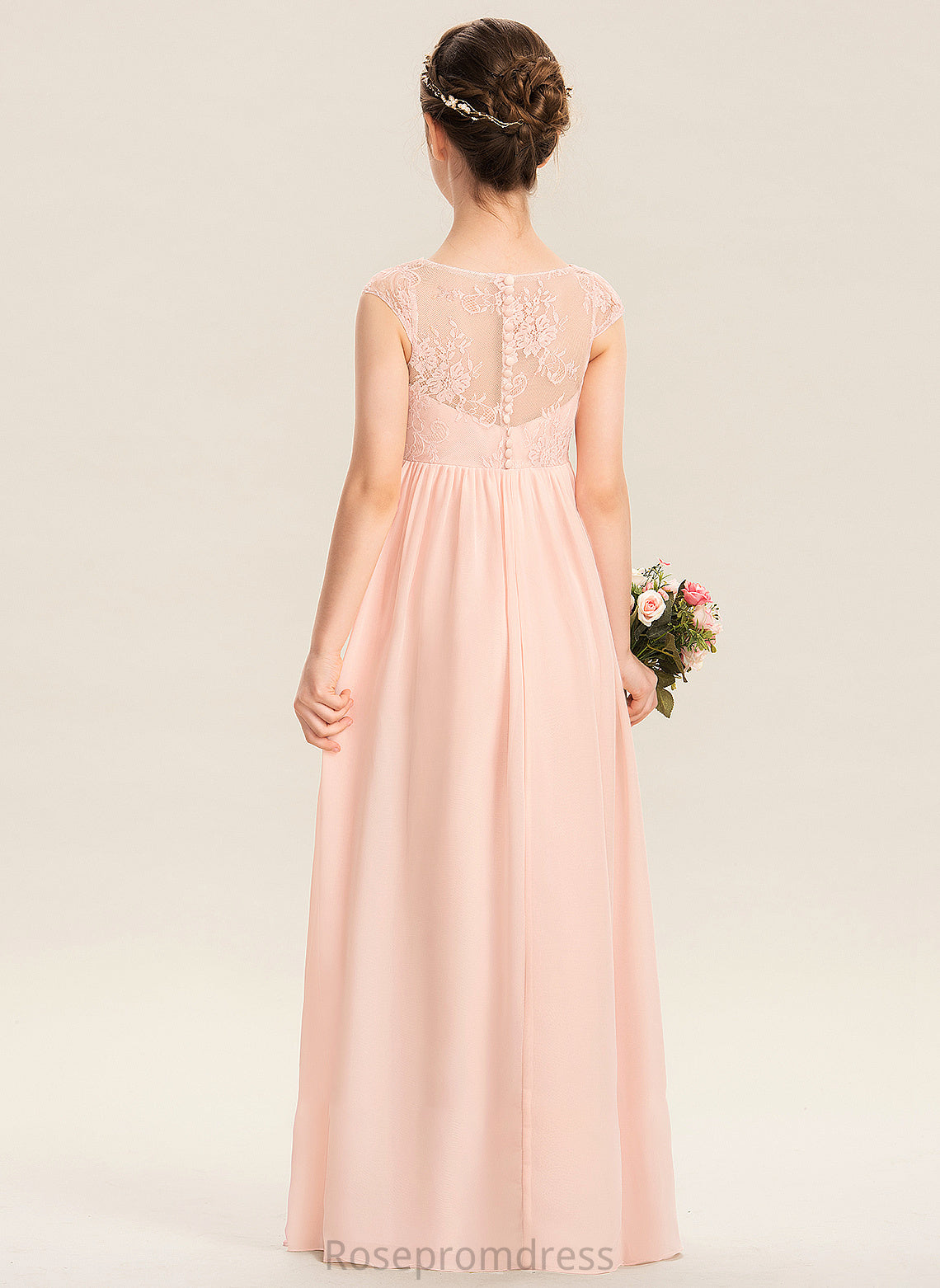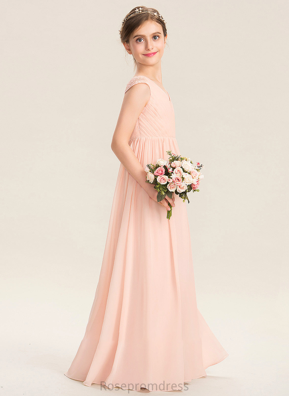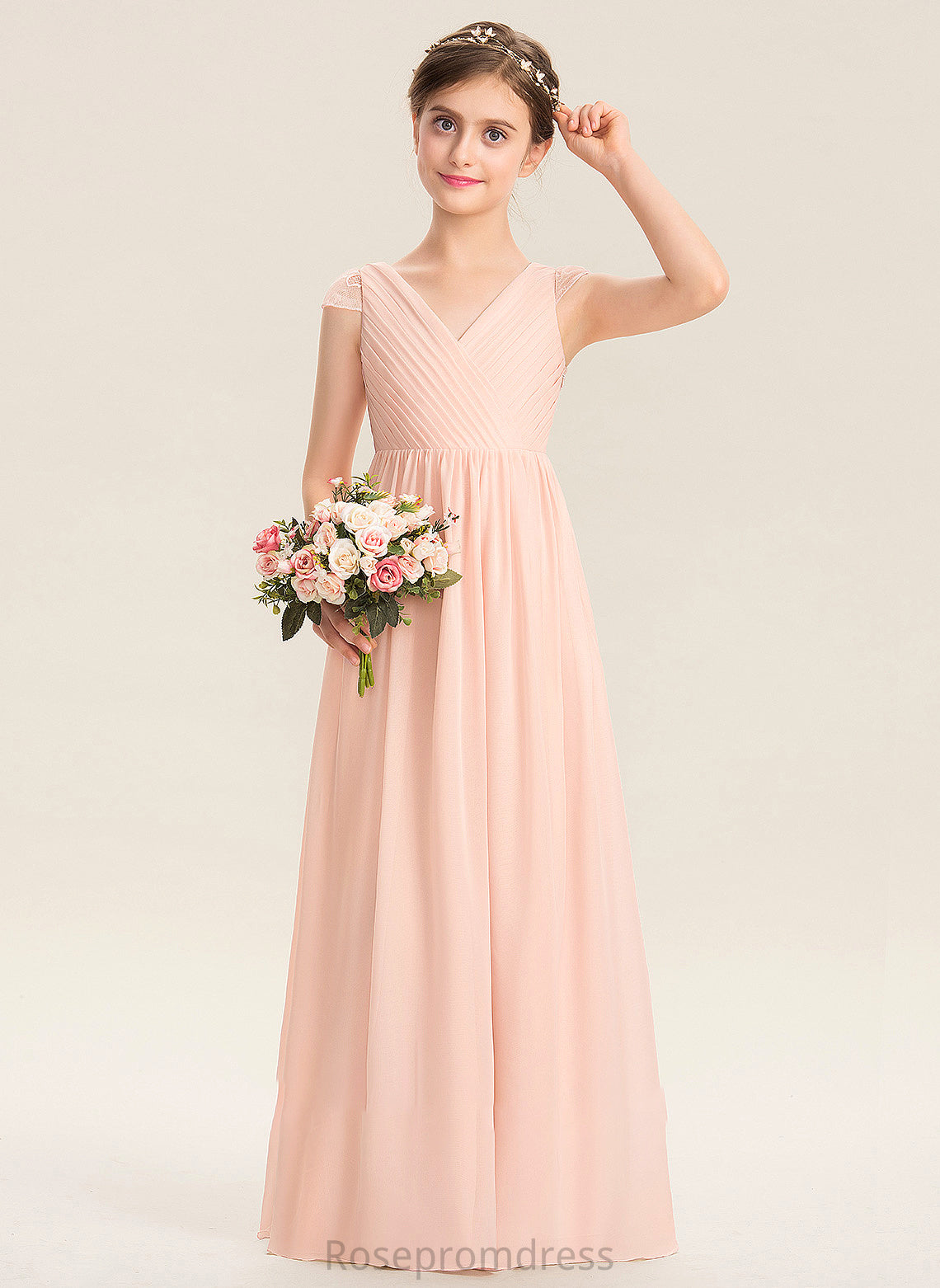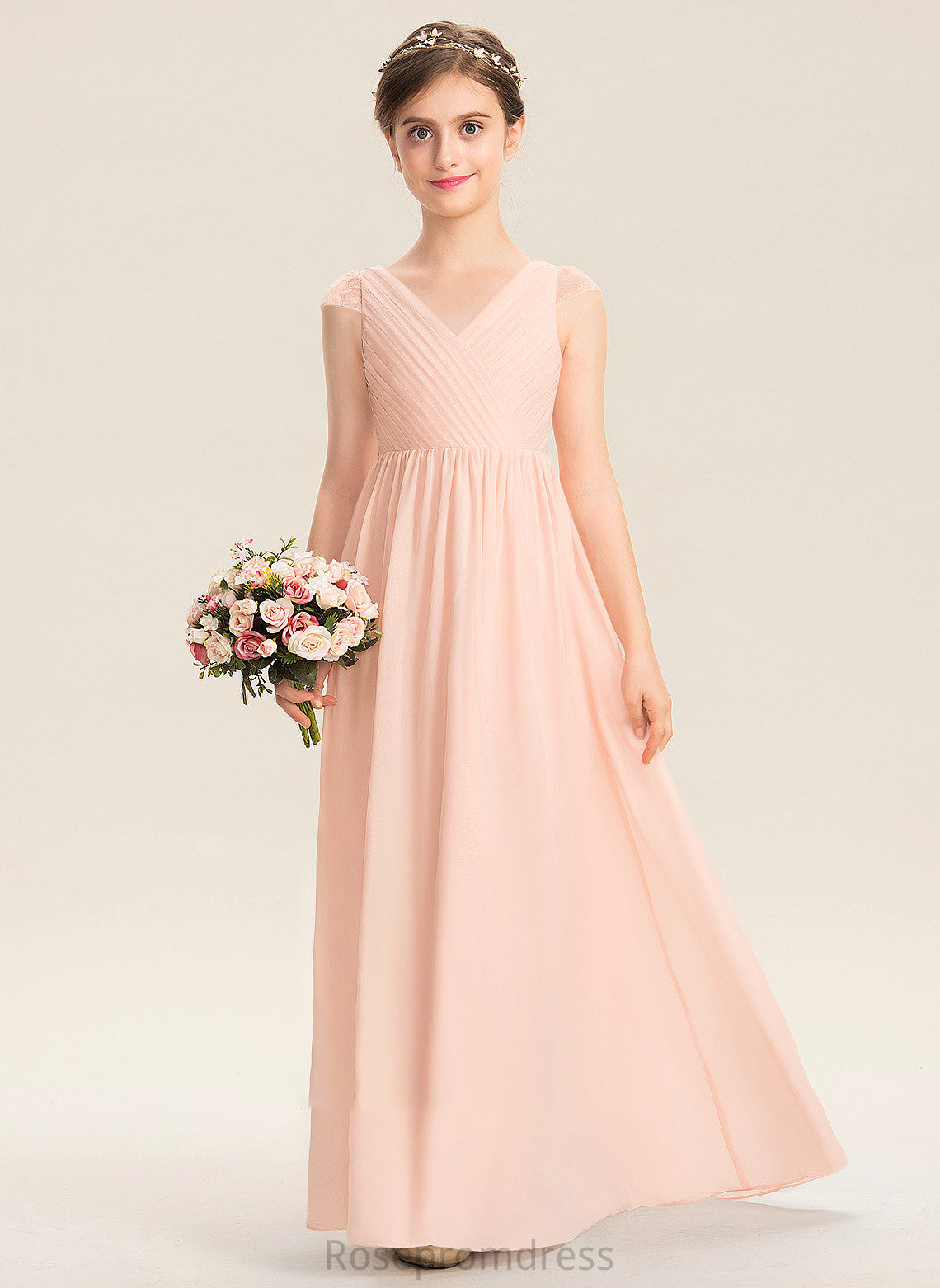 Floor-Length Elsie Junior Bridesmaid Dresses Lace Chiffon Ruffle A-Line V-neck With