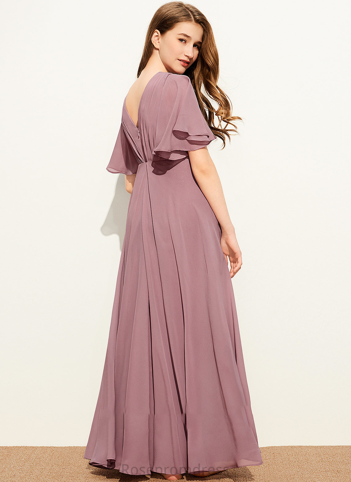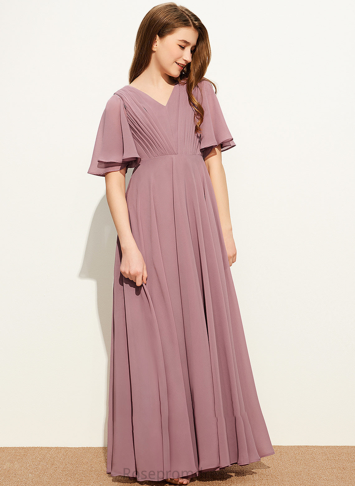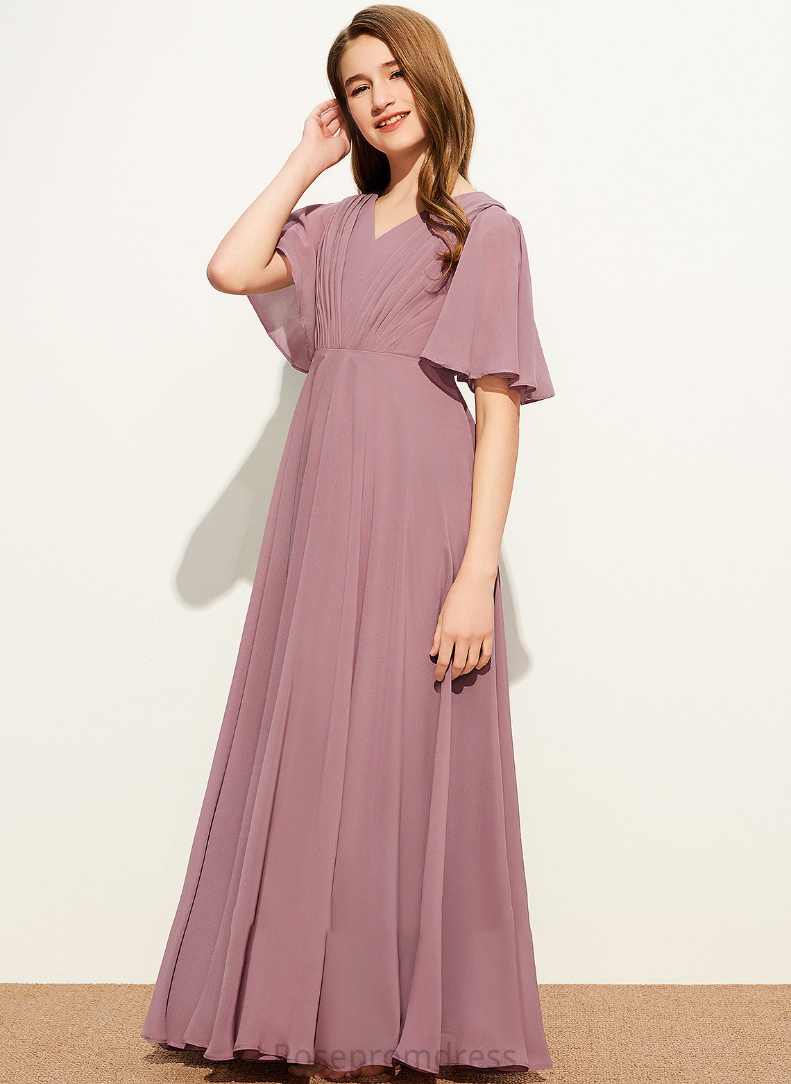 Floor-Length Junior Bridesmaid Dresses With A-Line V-neck Jacquelyn Ruffle Chiffon