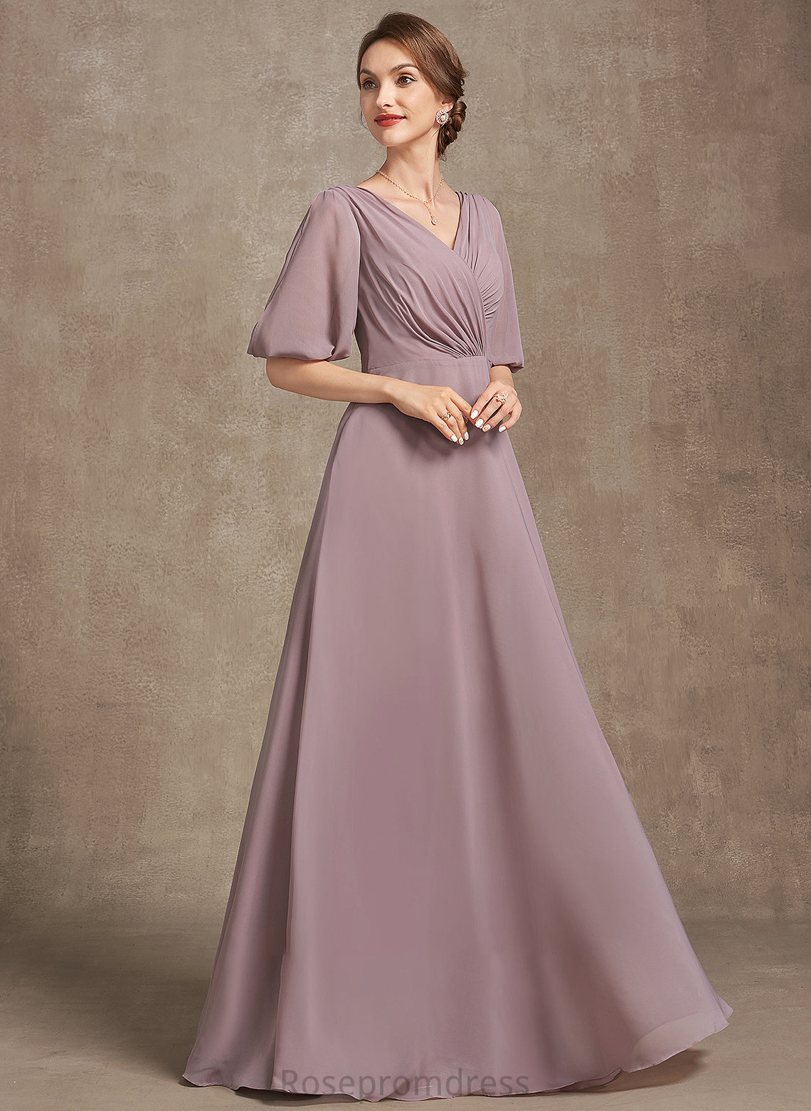 Floor-Length Mother Dress the of Ruffle A-Line V-neck Bride Chiffon Mother of the Bride Dresses With Emely
