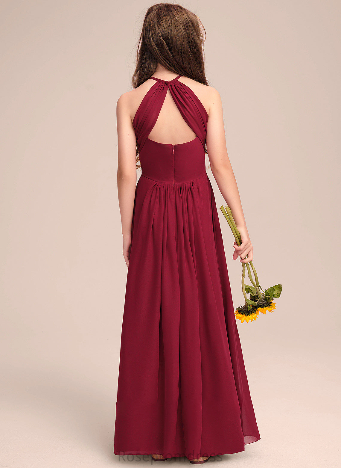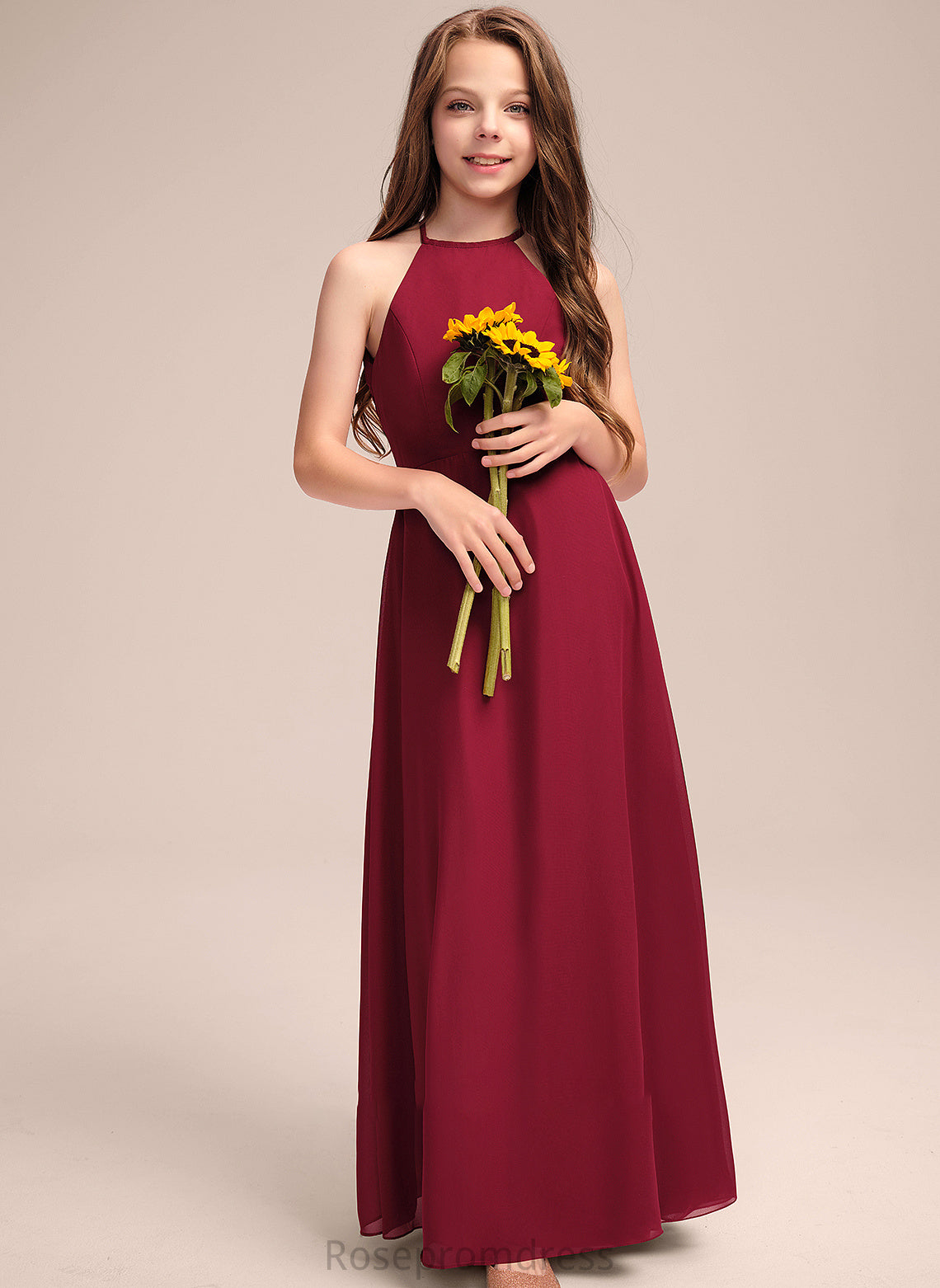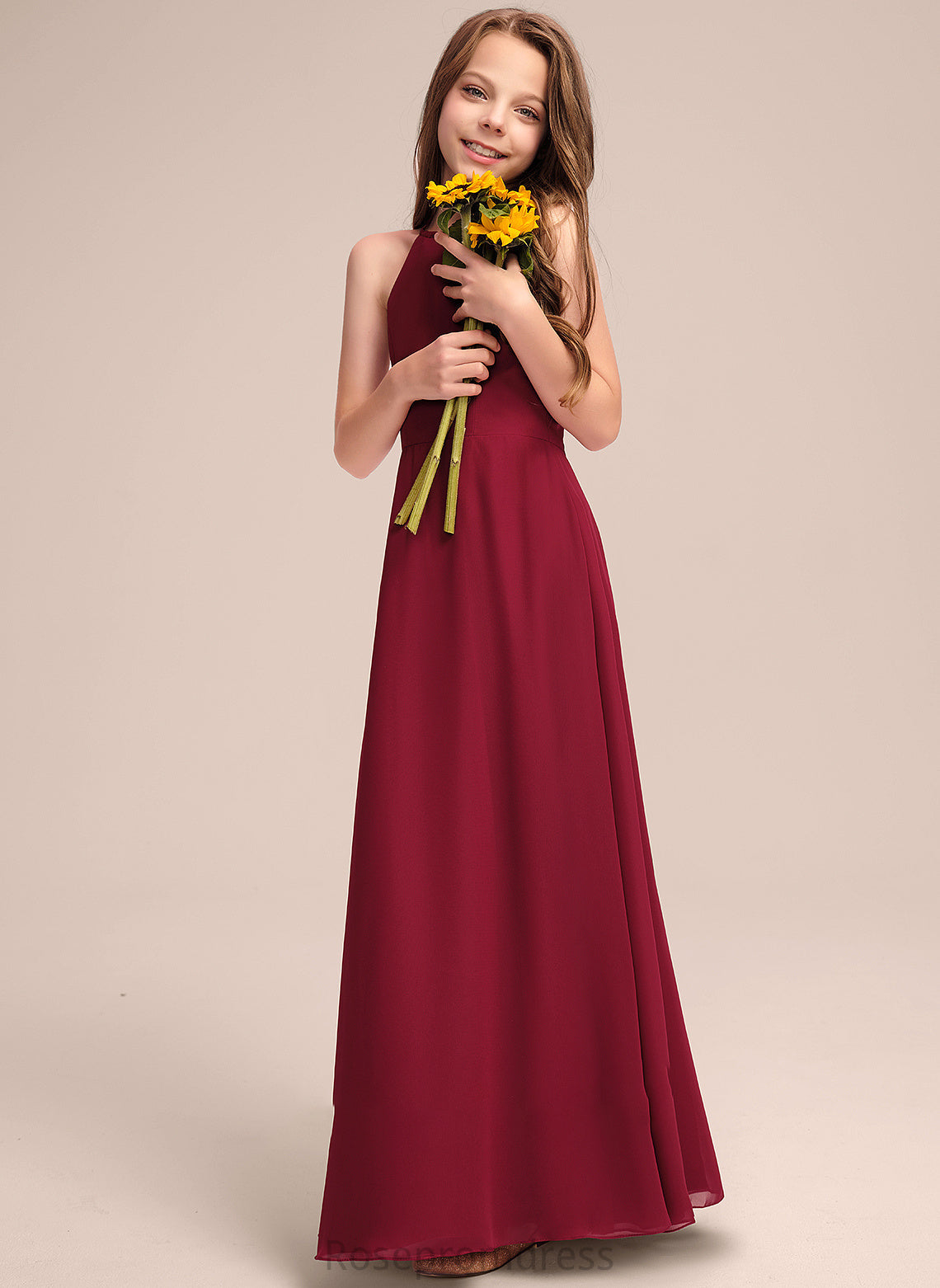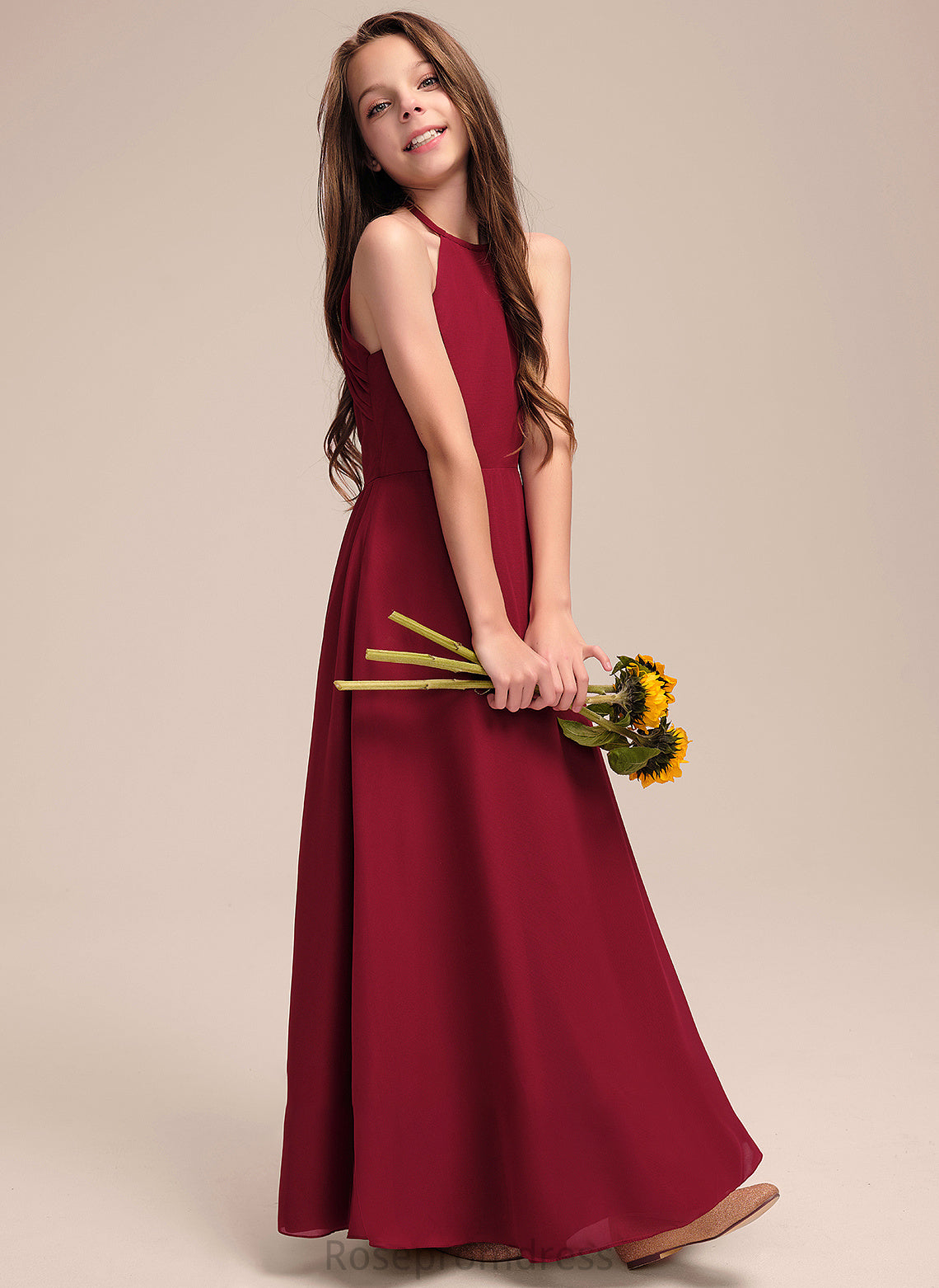 Floor-Length Scoop Setlla Junior Bridesmaid Dresses Chiffon A-Line Neck