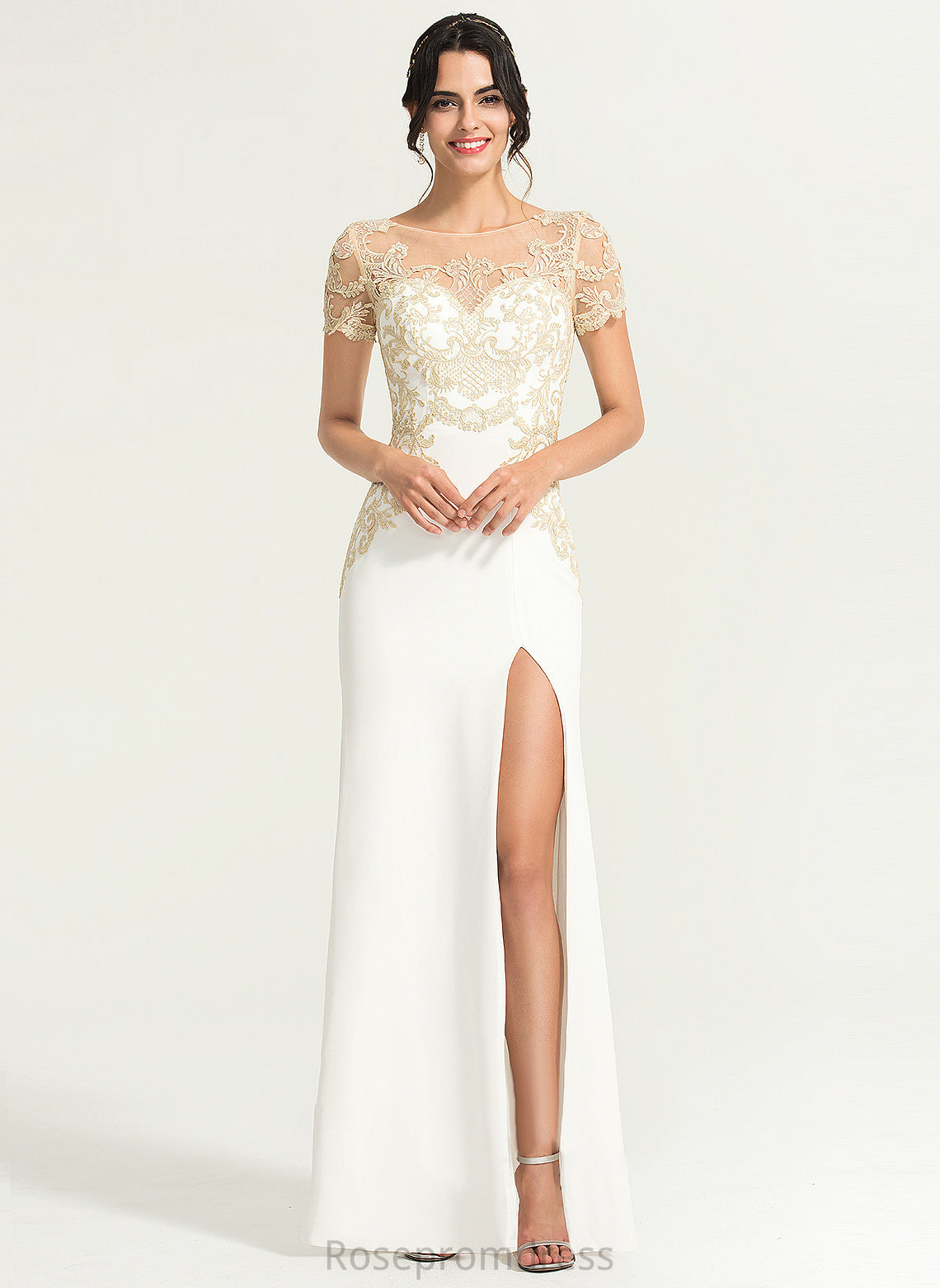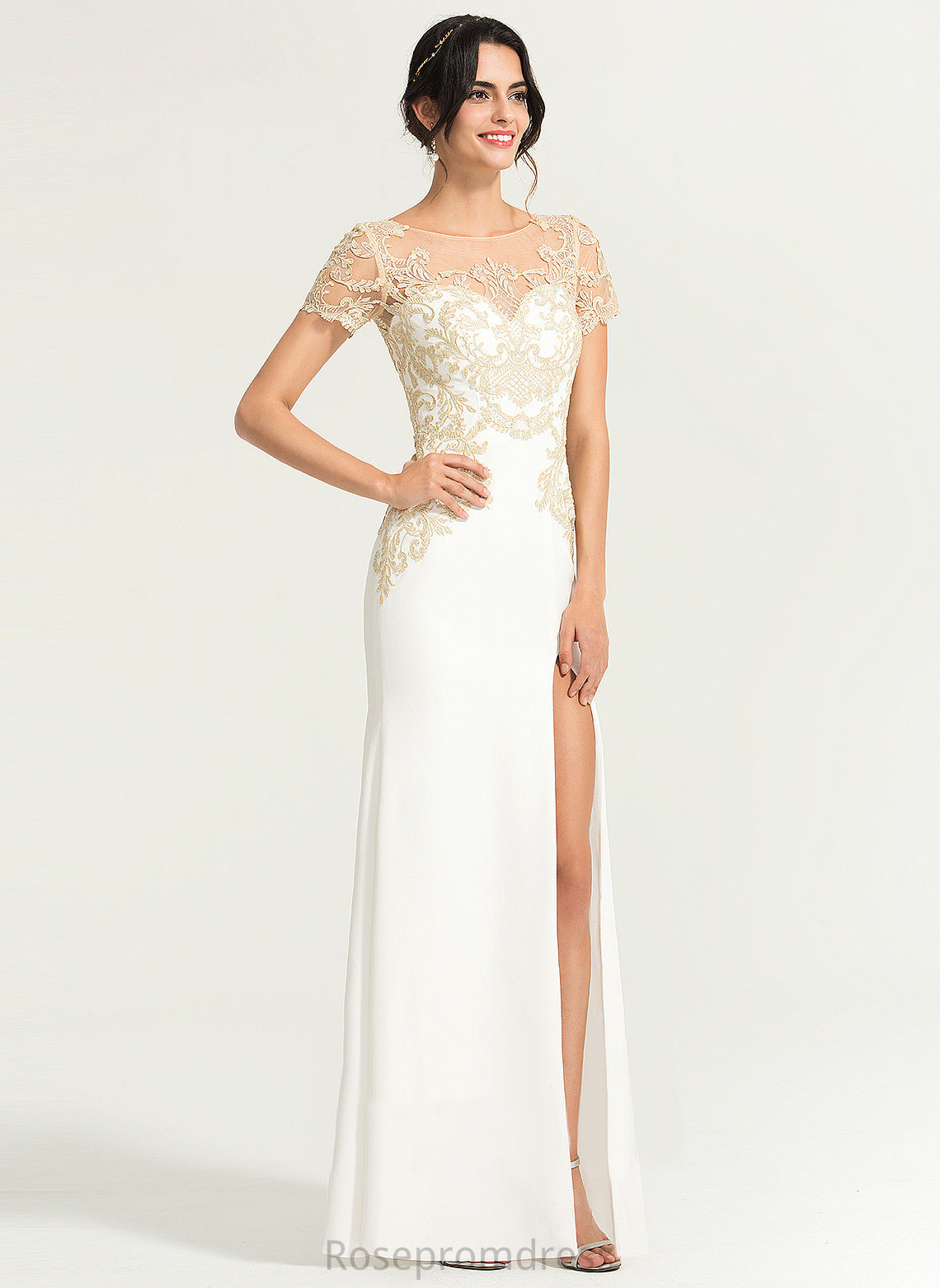 Floor-Length Stretch Lace Dress Crepe Front Split Neck Marisa Wedding Sheath/Column With Scoop Wedding Dresses
