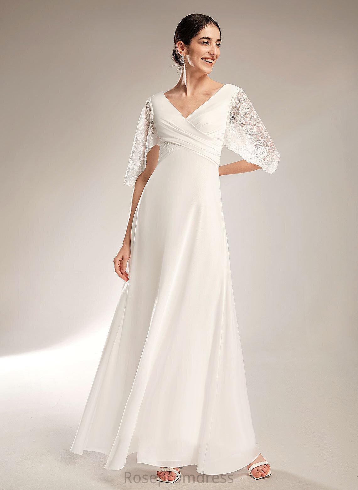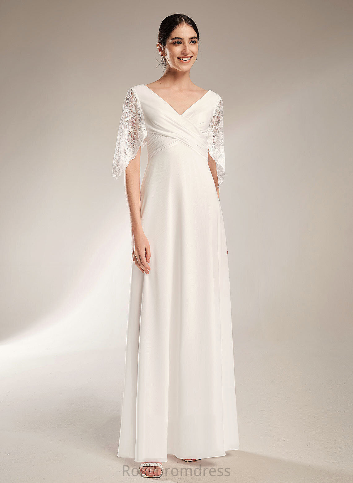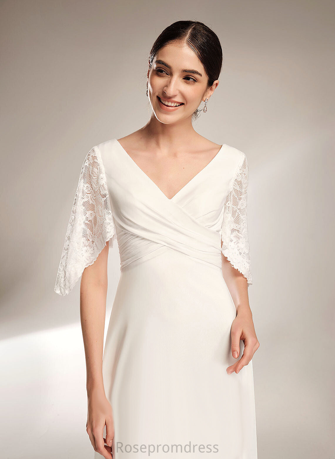 Floor-Length Wedding Dress With V-neck Lace Keira Chiffon Wedding Dresses Sheath/Column