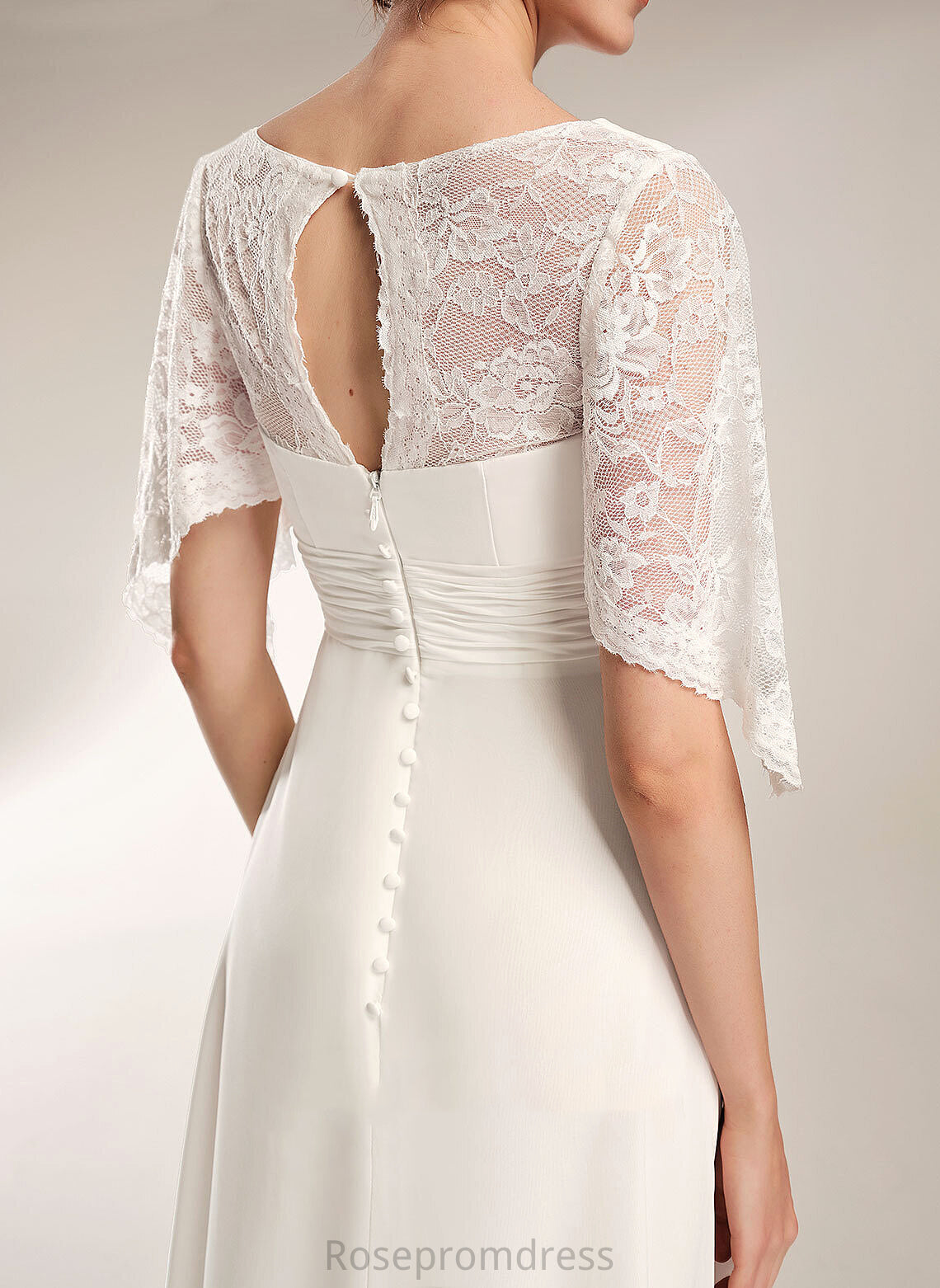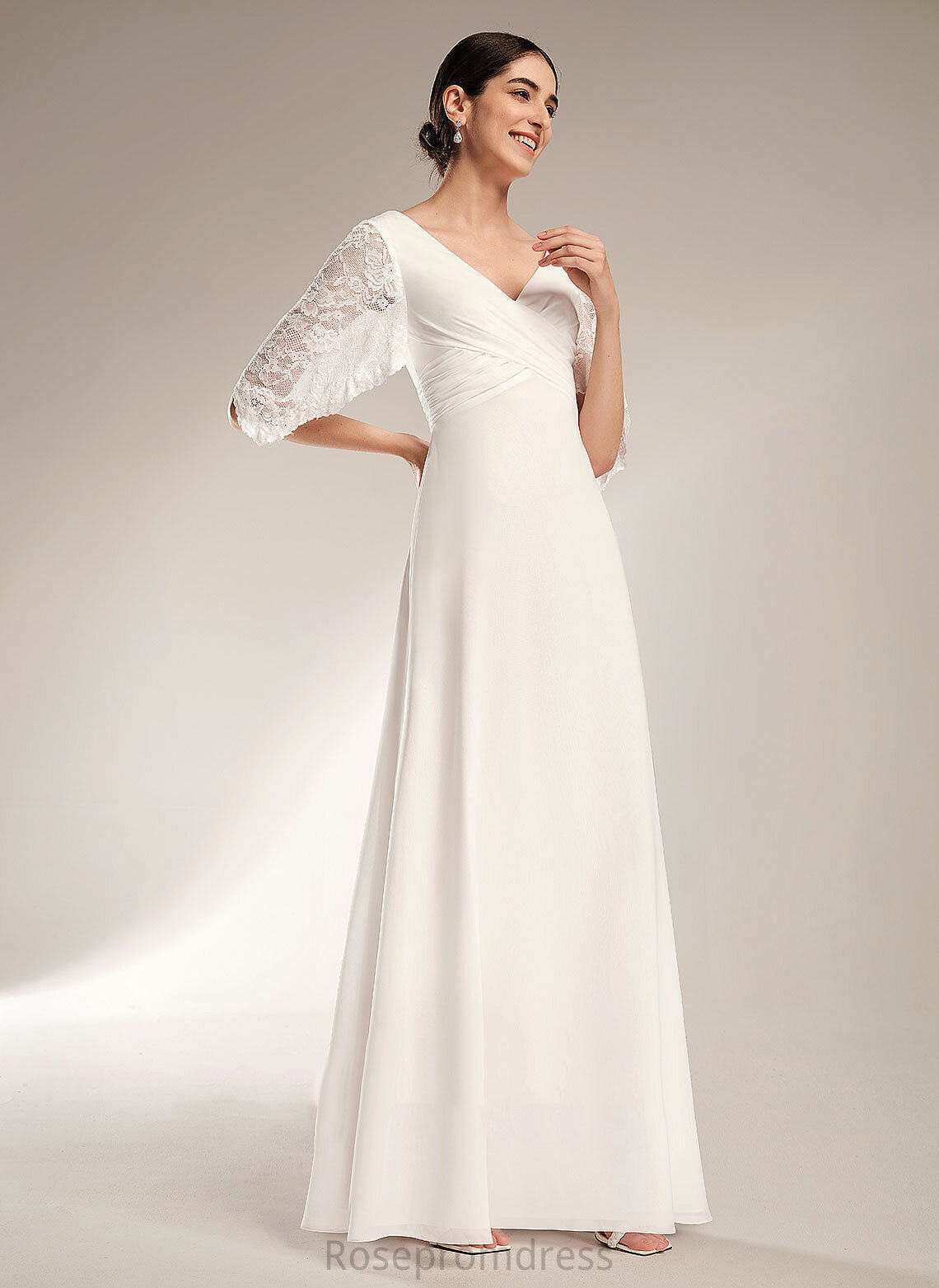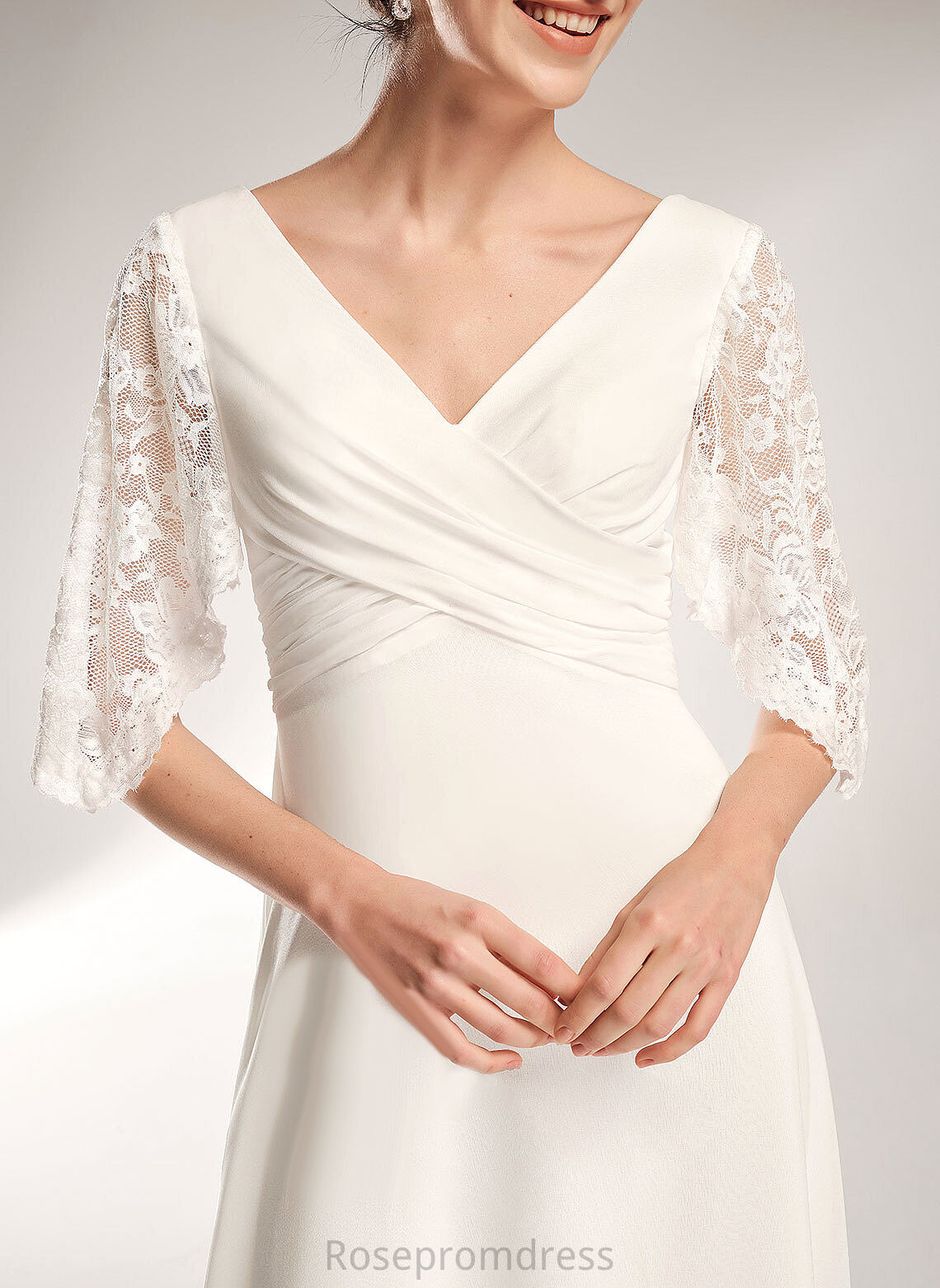 Floor-Length Wedding Dress With V-neck Lace Keira Chiffon Wedding Dresses Sheath/Column