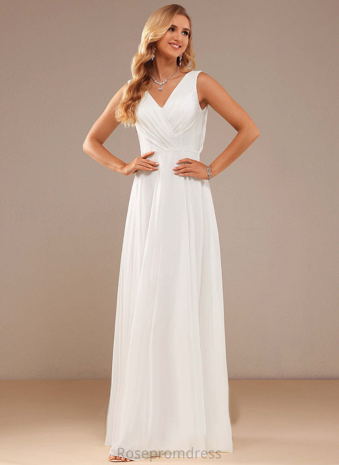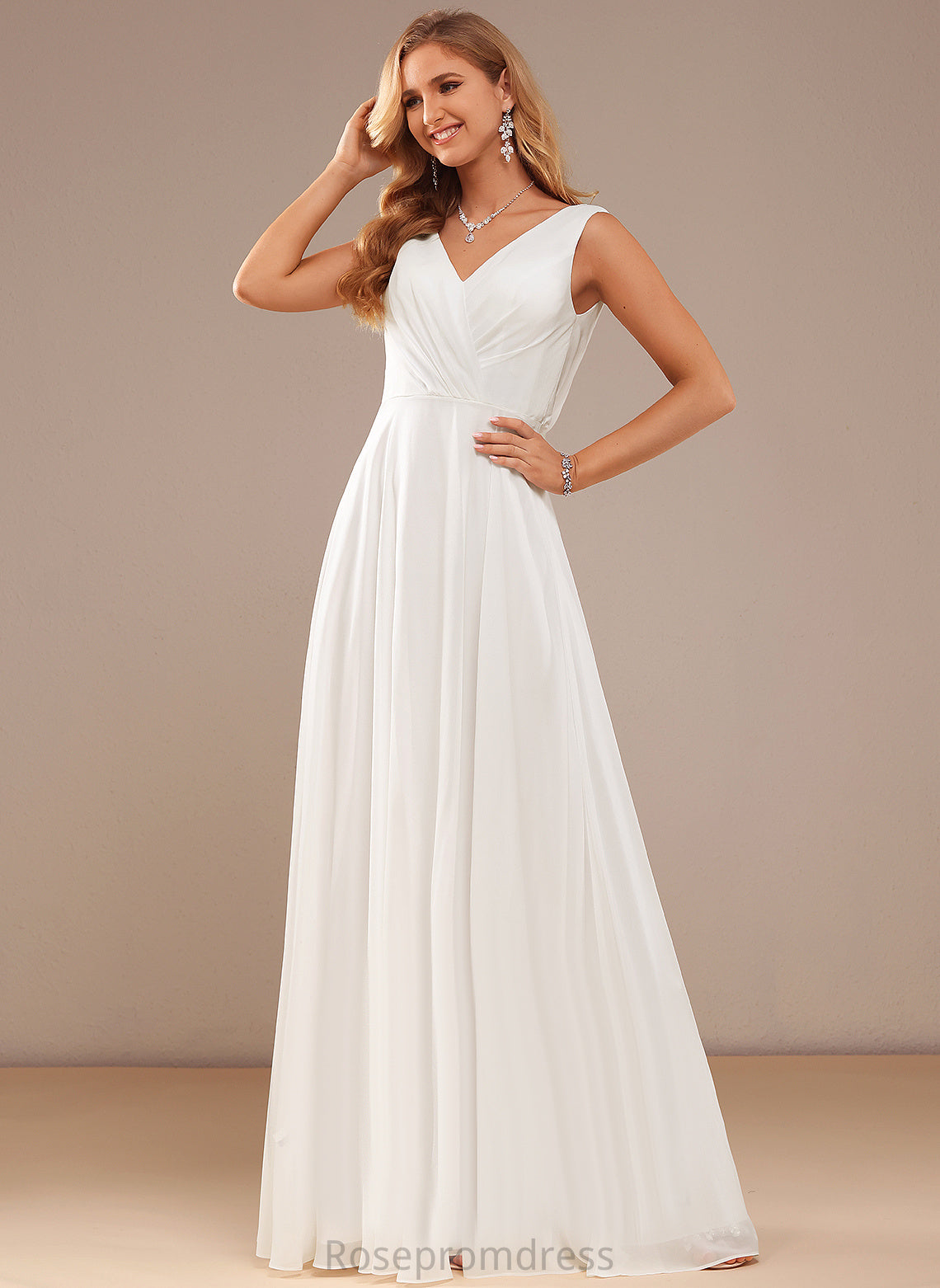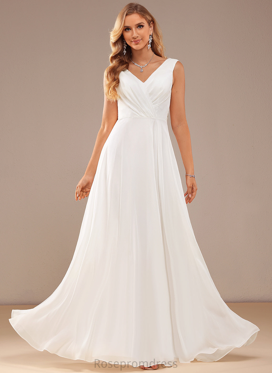 Floor-Length Wedding Dresses V-neck Wedding Kaiya Chiffon Dress A-Line Lace
