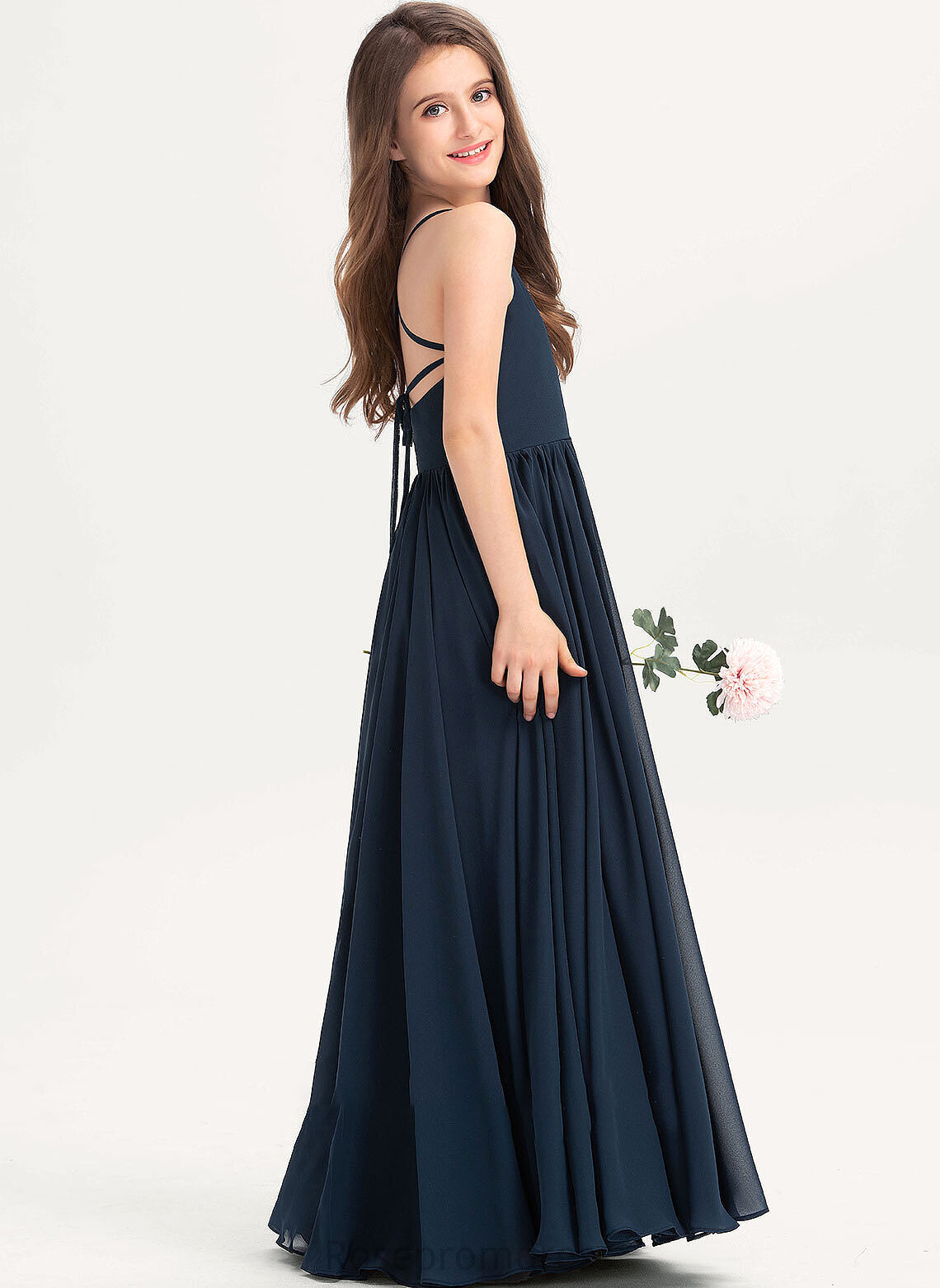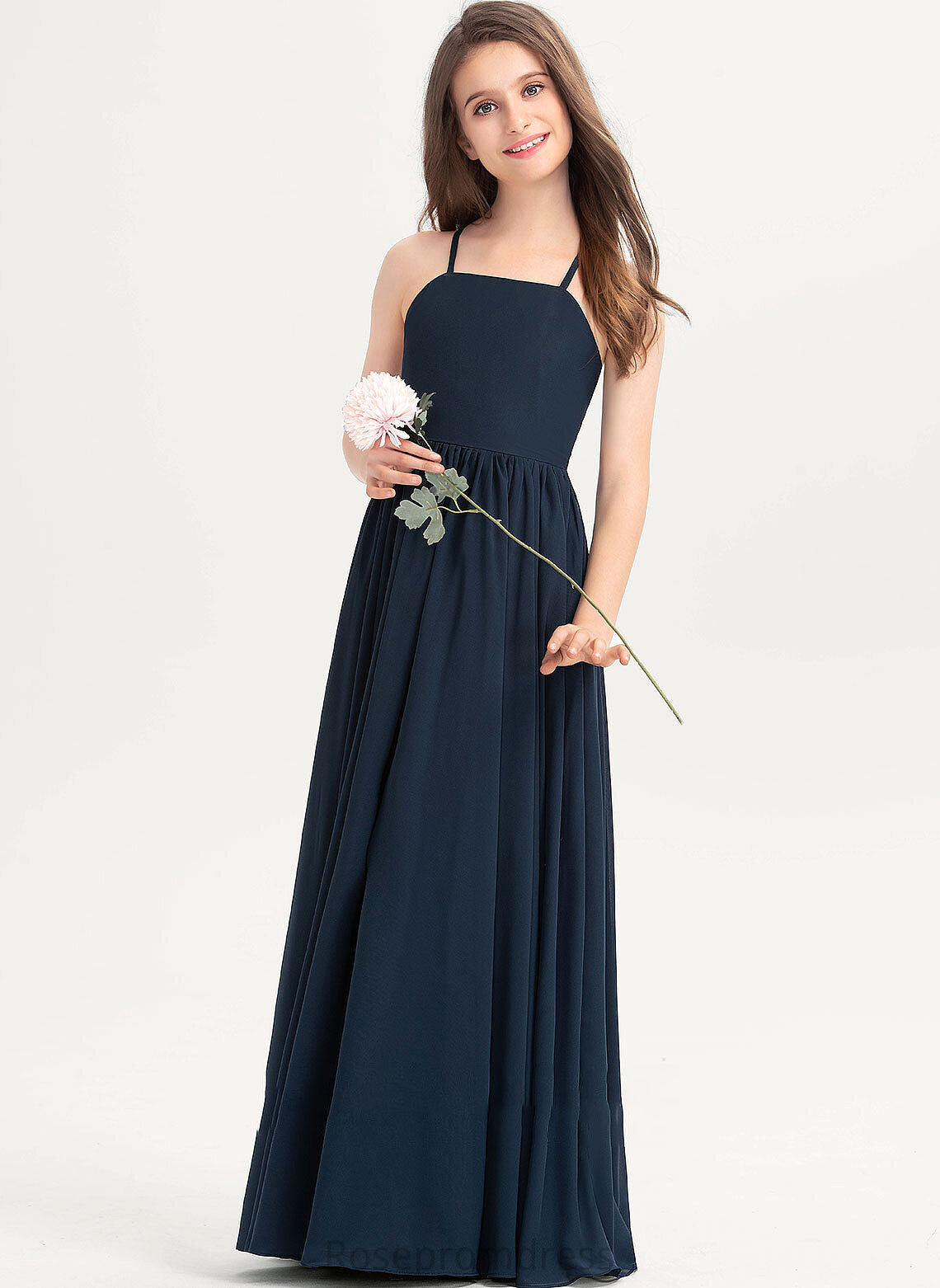 Floor-Length With Bow(s) Square Renee Junior Bridesmaid Dresses Chiffon A-Line Neckline