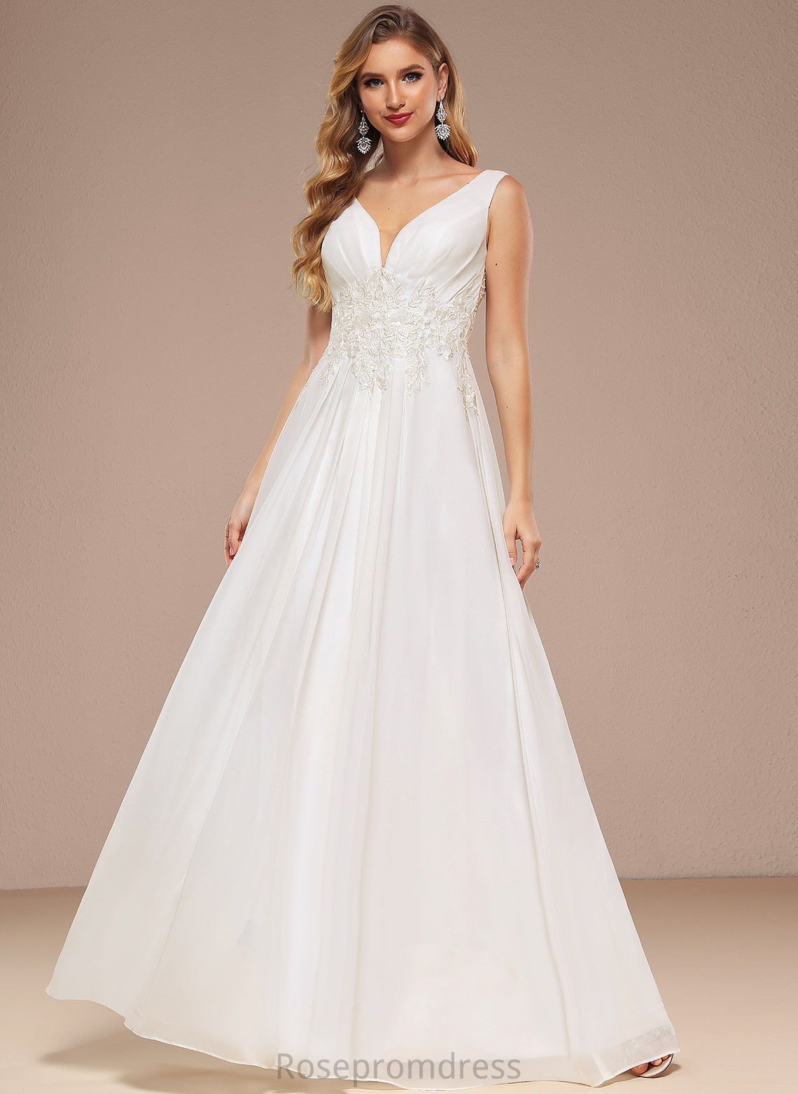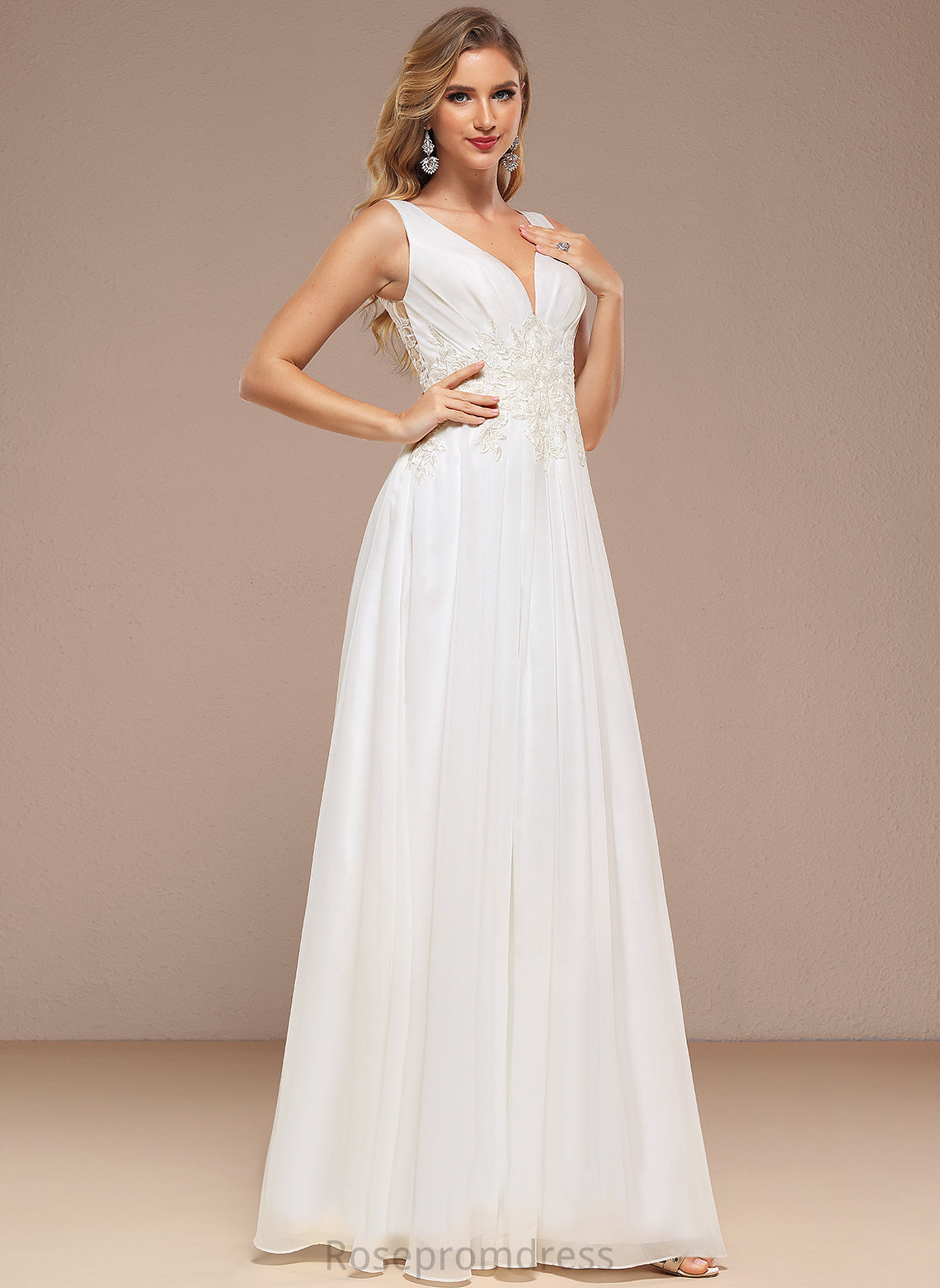 Floor-Length With Wedding Dresses Chiffon Ryleigh Wedding Sequins V-neck A-Line Lace Dress