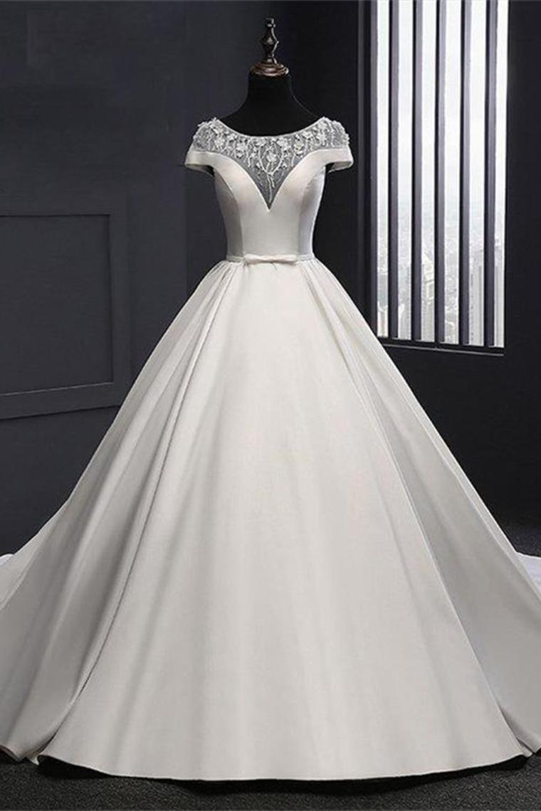 Formal Vintage Ivory Lace Satin Long Ball Gown Wedding Dresses