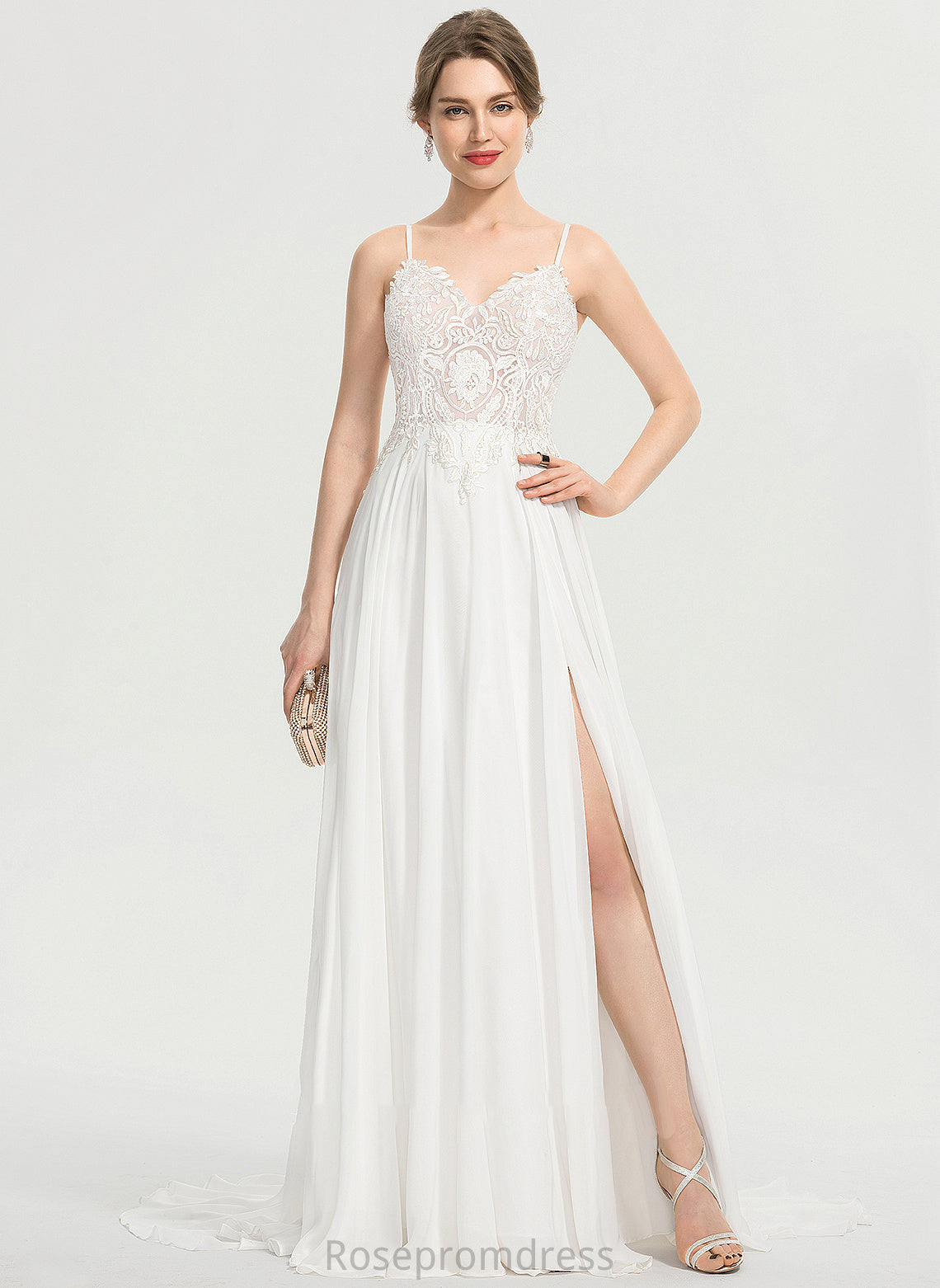 Front Chiffon A-Line Train Wedding Yasmine With V-neck Sweep Wedding Dresses Split Dress