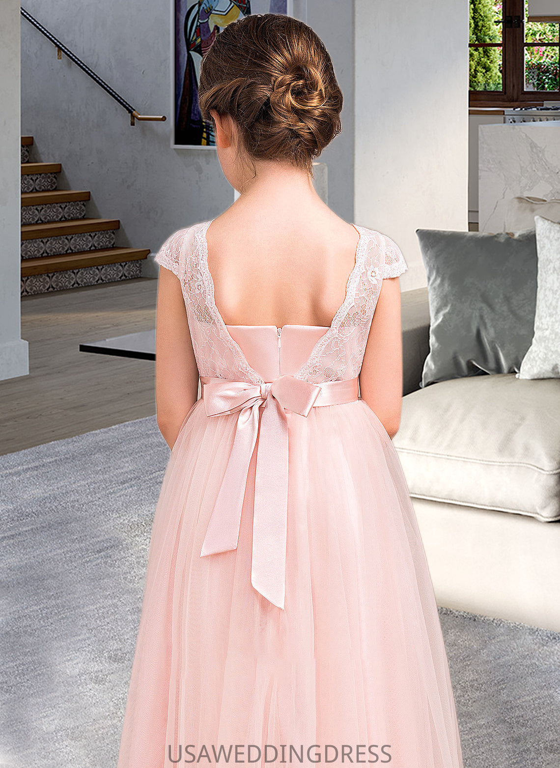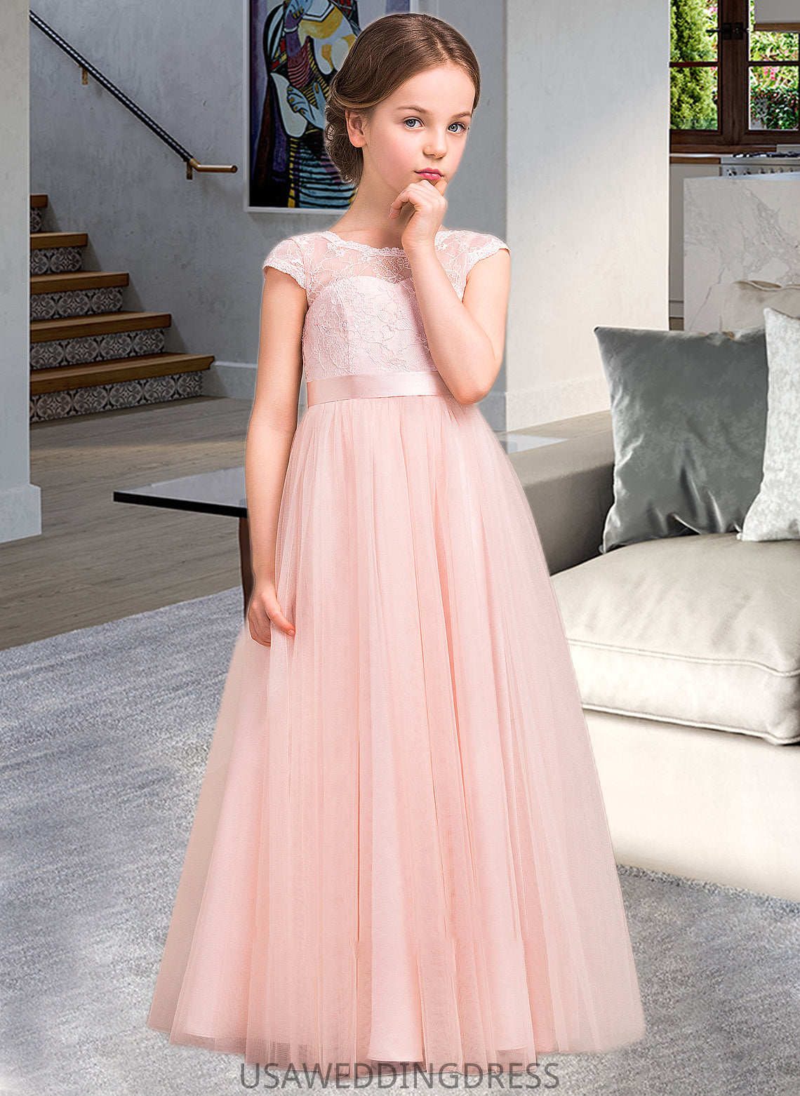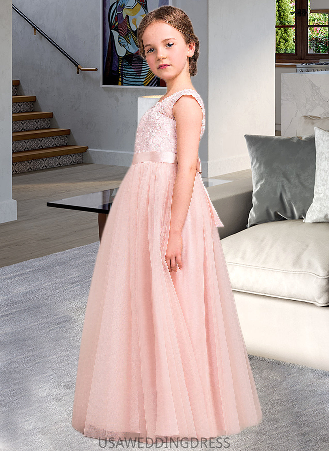 Gabrielle A-Line Scoop Neck Floor-Length Tulle Lace Junior Bridesmaid Dress With Bow(s) DSP0013619
