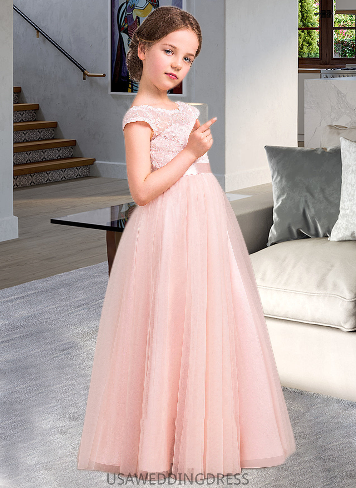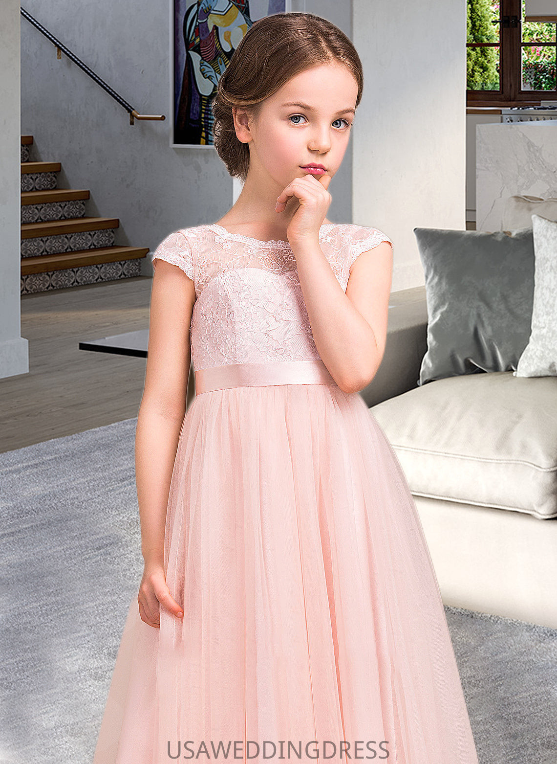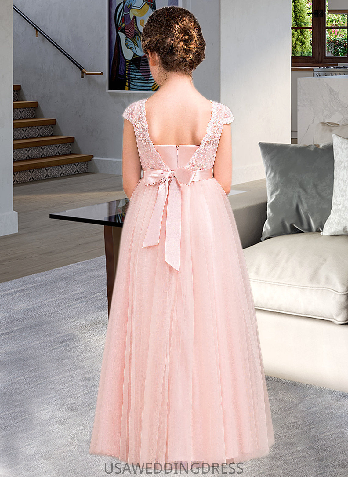 Gabrielle A-Line Scoop Neck Floor-Length Tulle Lace Junior Bridesmaid Dress With Bow(s) DSP0013619