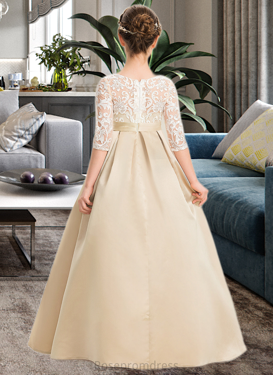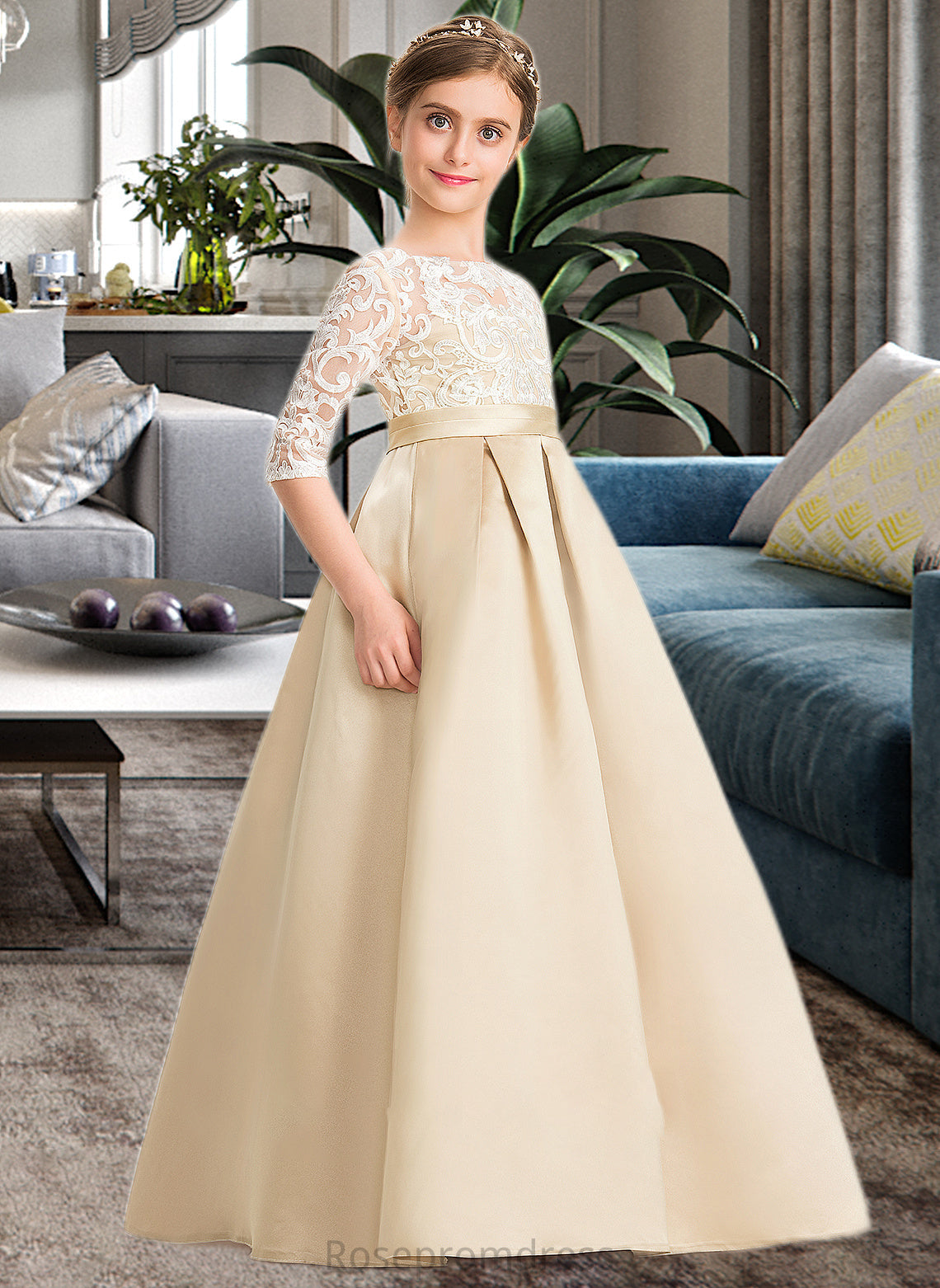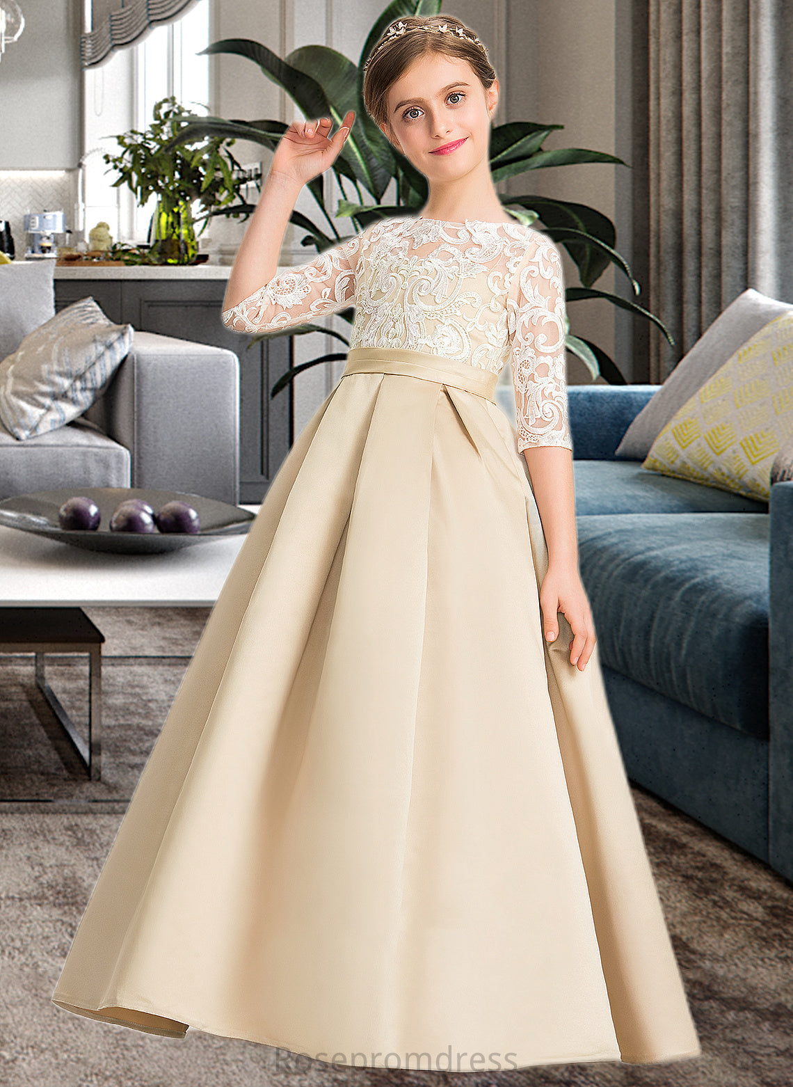 Gabrielle Ball-Gown/Princess Scoop Neck Floor-Length Satin Lace Junior Bridesmaid Dress SRSP0013498