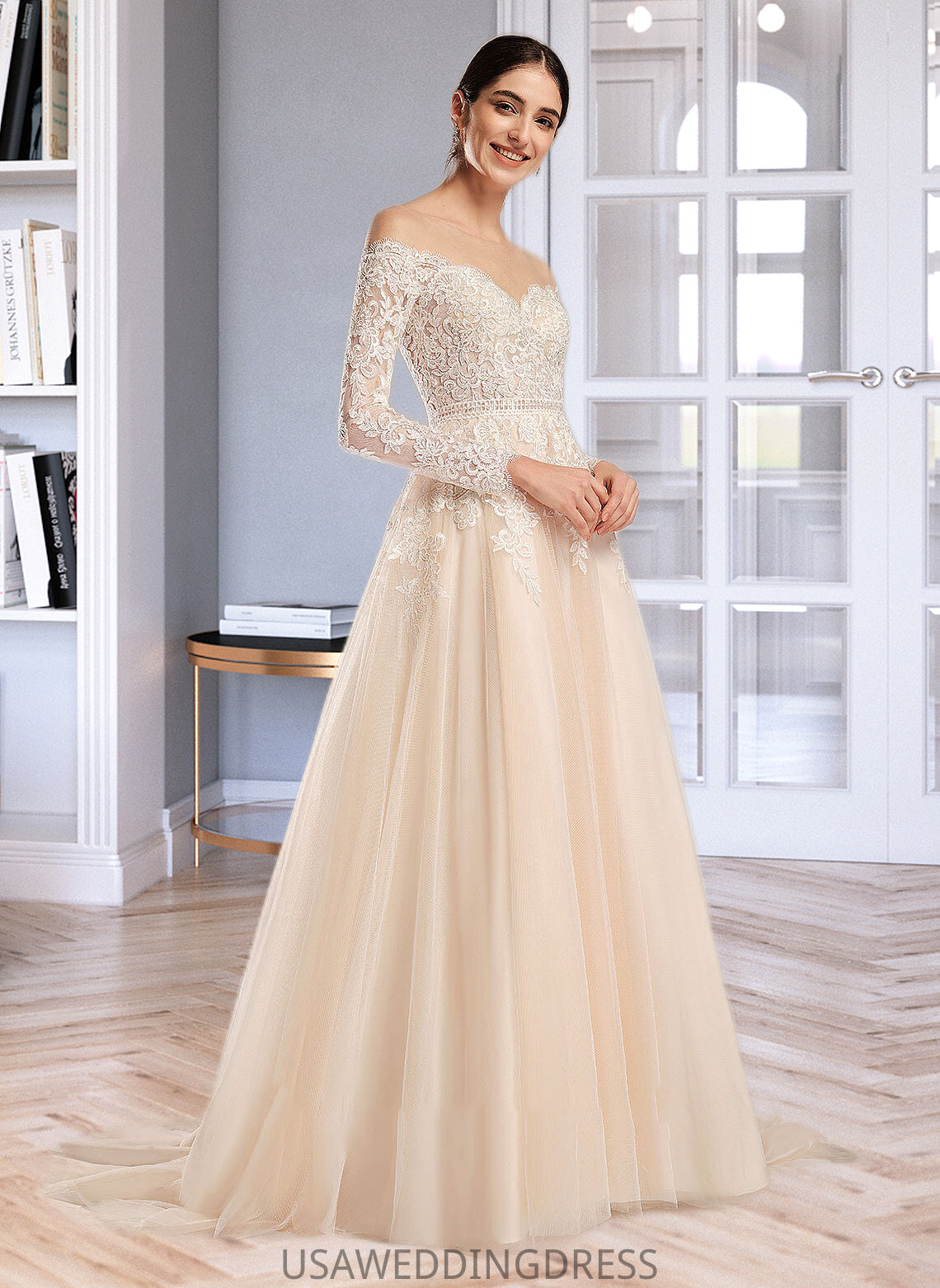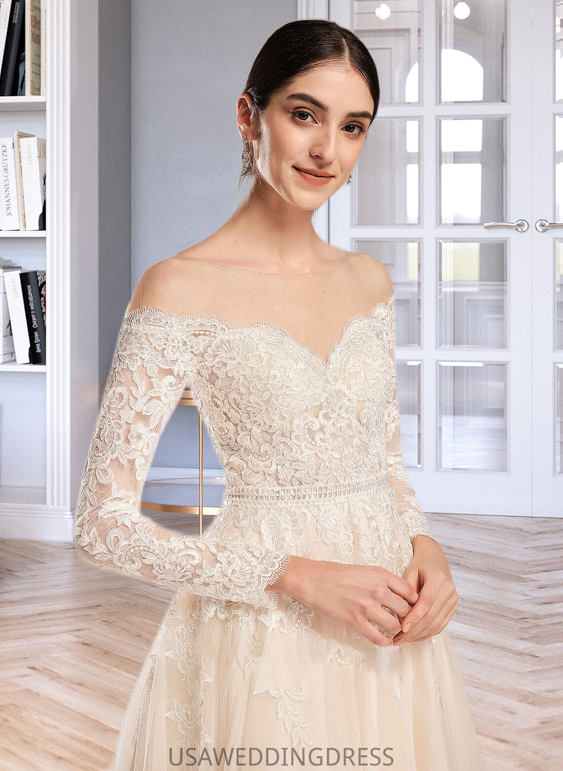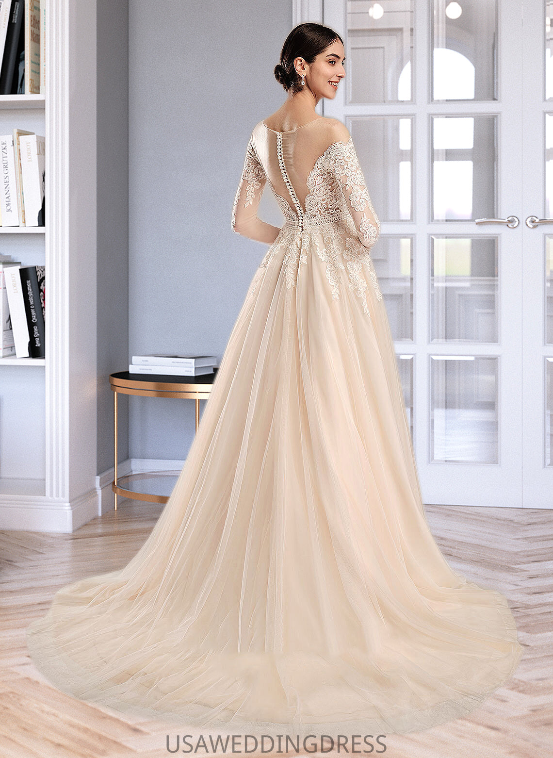 Gemma Ball-Gown/Princess Illusion Chapel Train Wedding Dress With Sequins DSP0013798