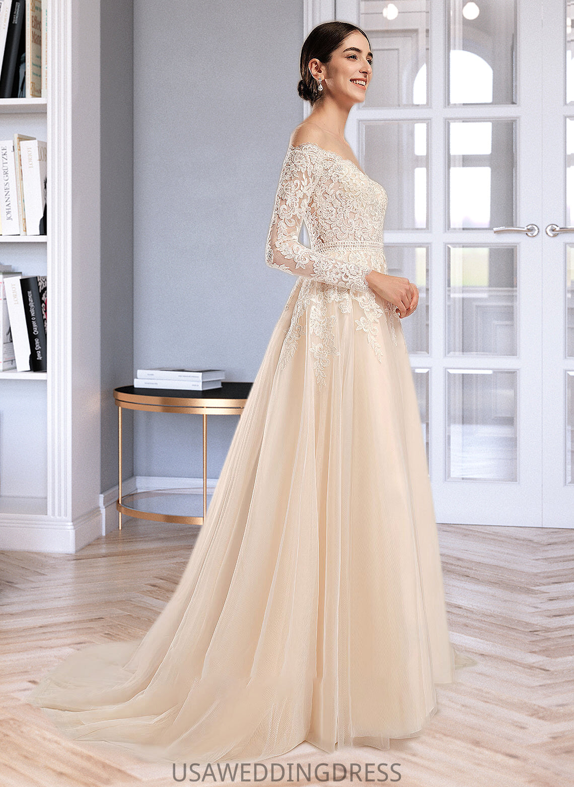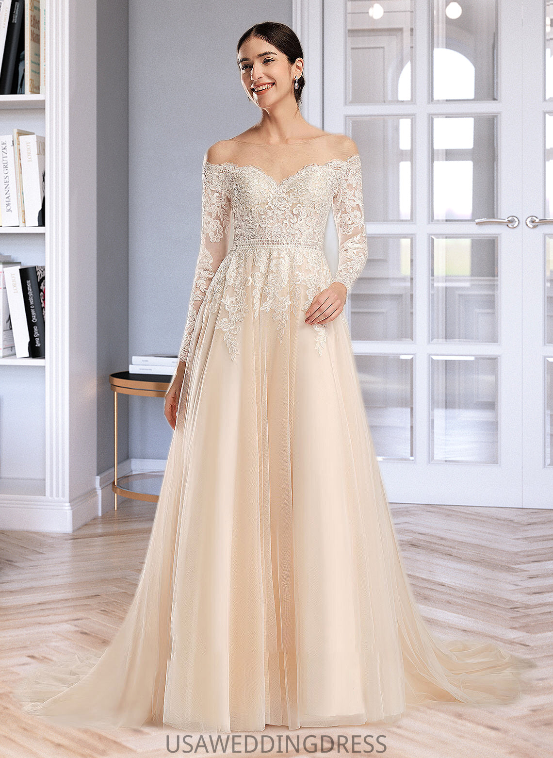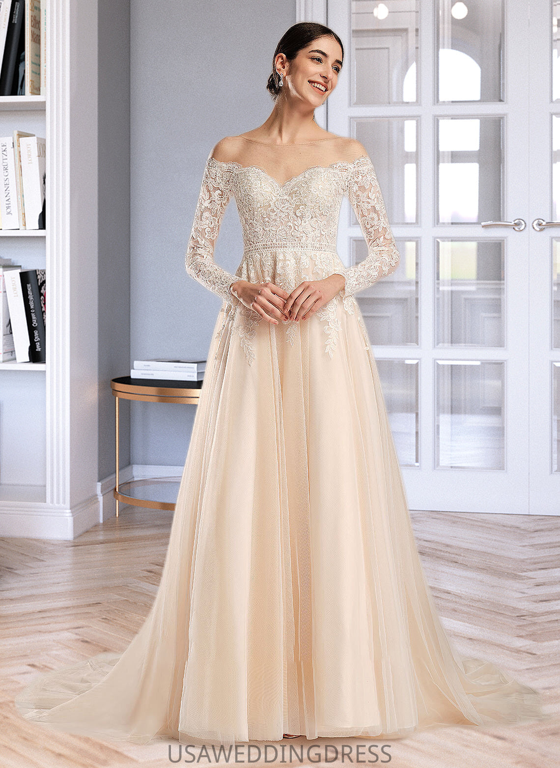 Gemma Ball-Gown/Princess Illusion Chapel Train Wedding Dress With Sequins DSP0013798