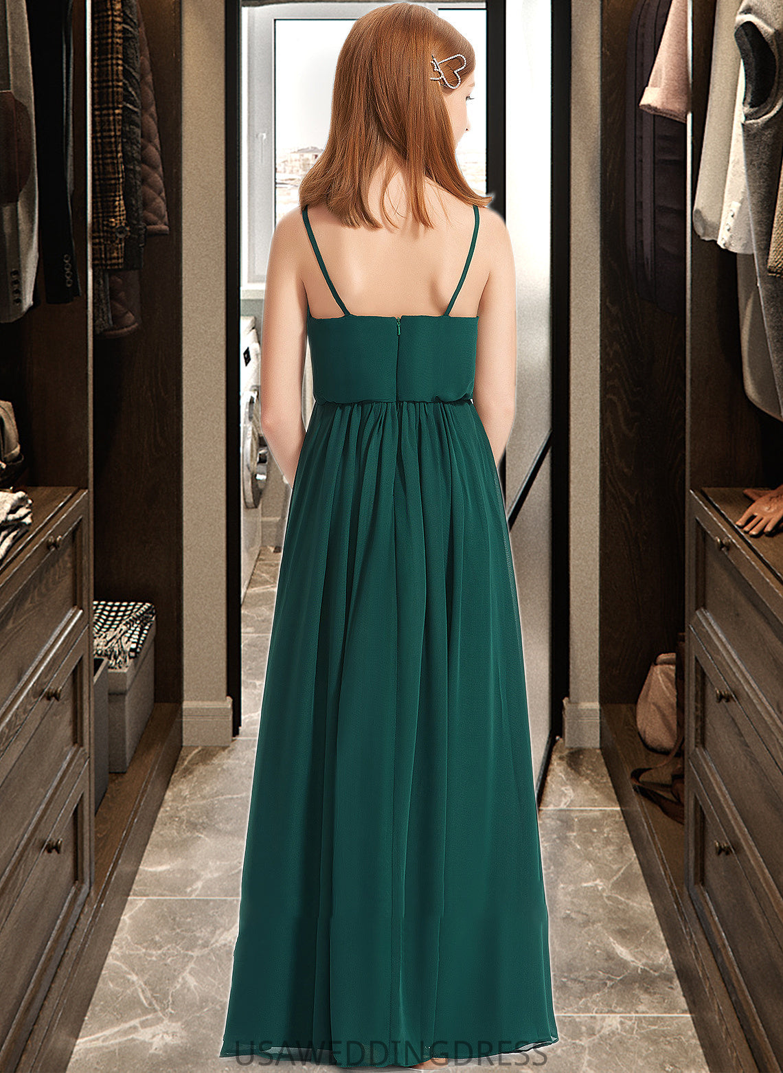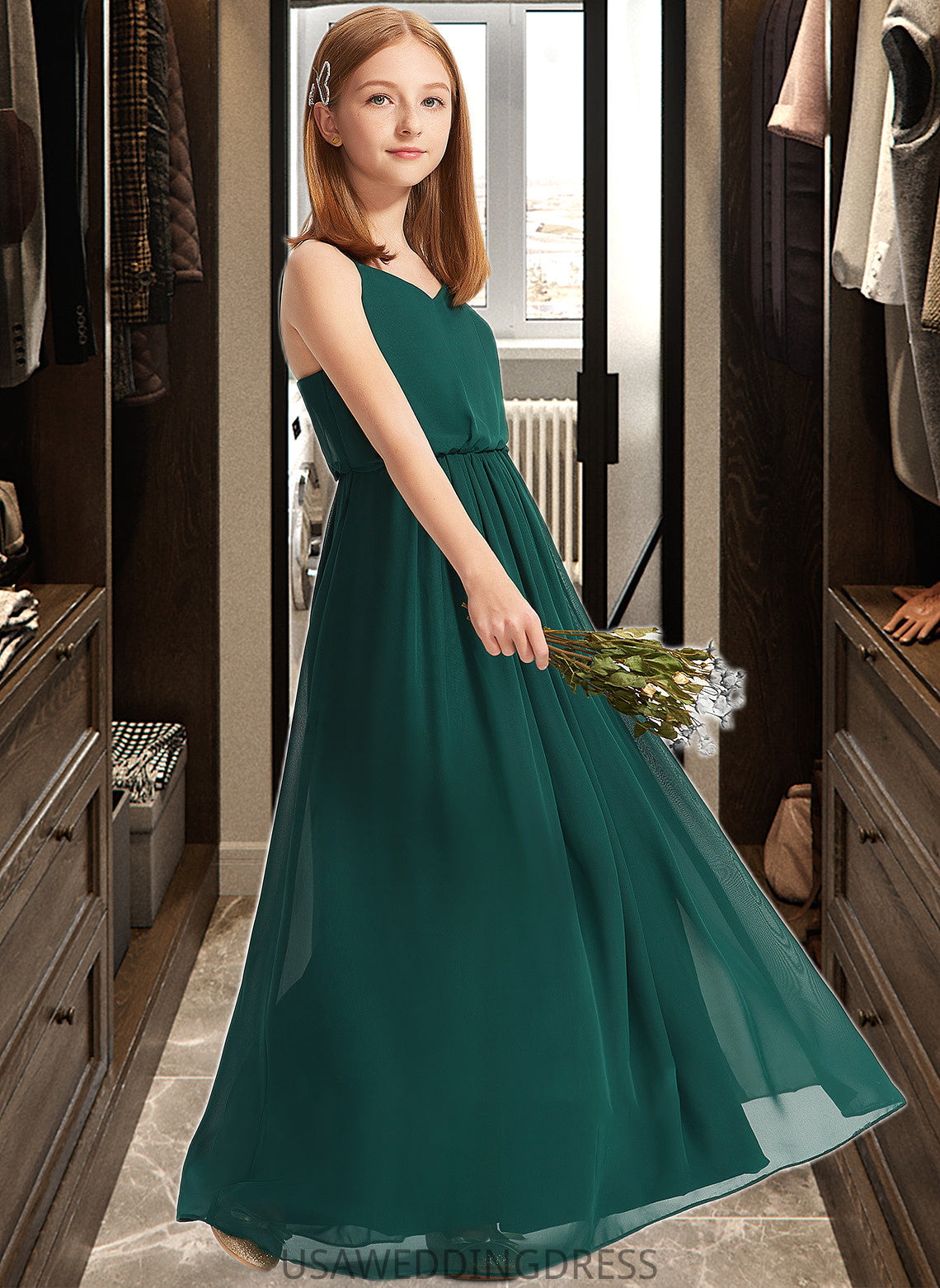 Gia A-Line V-neck Floor-Length Chiffon Junior Bridesmaid Dress With Ruffle DSP0013606