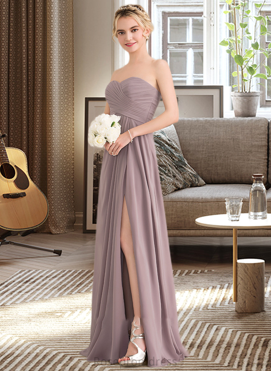 Gianna A-Line Sweetheart Floor-Length Chiffon Bridesmaid Dress With Ruffle Split Front SRSP0013079