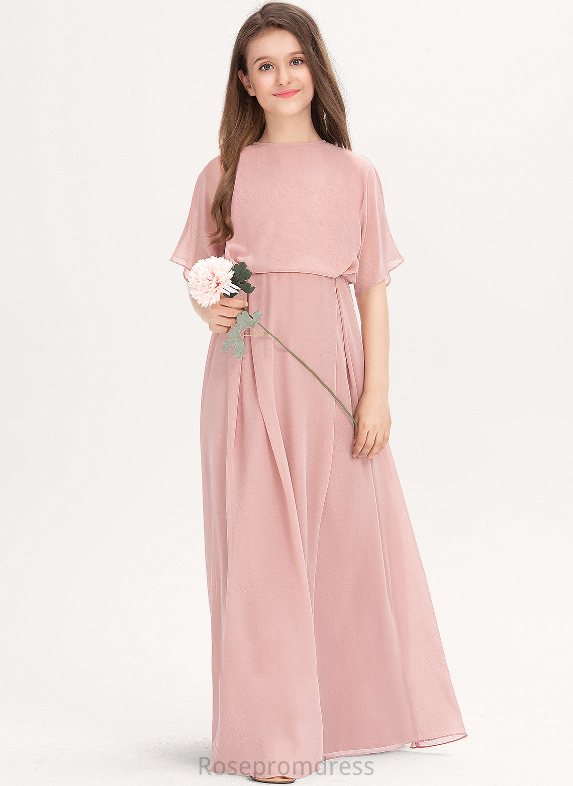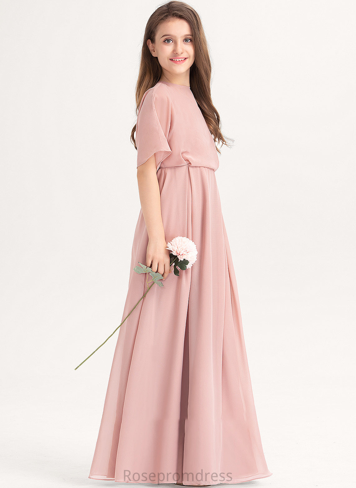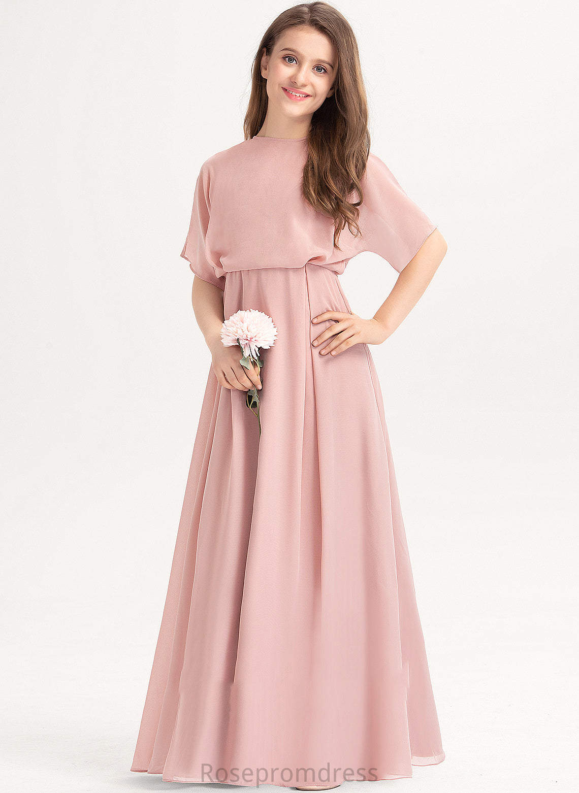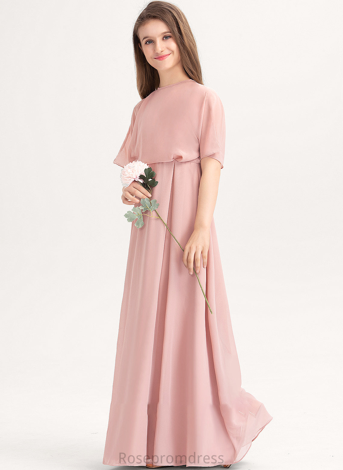 Gillian Neck Floor-Length Junior Bridesmaid Dresses Scoop A-Line Chiffon