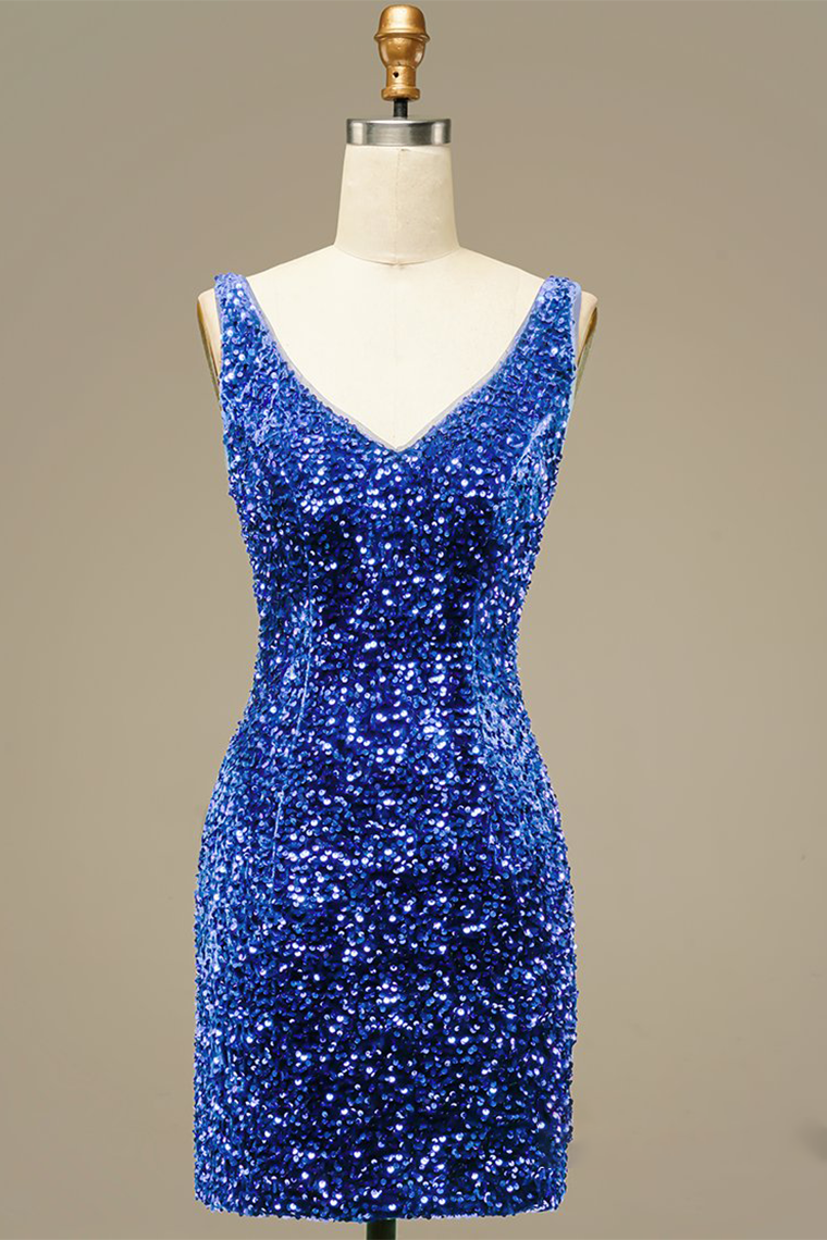 Glitter Blue Sequins Short Prom Dress Party Homecoming Dresses Vera Dress