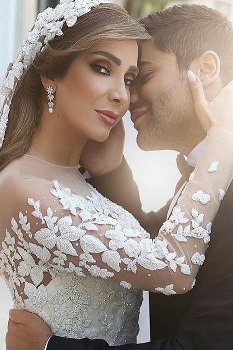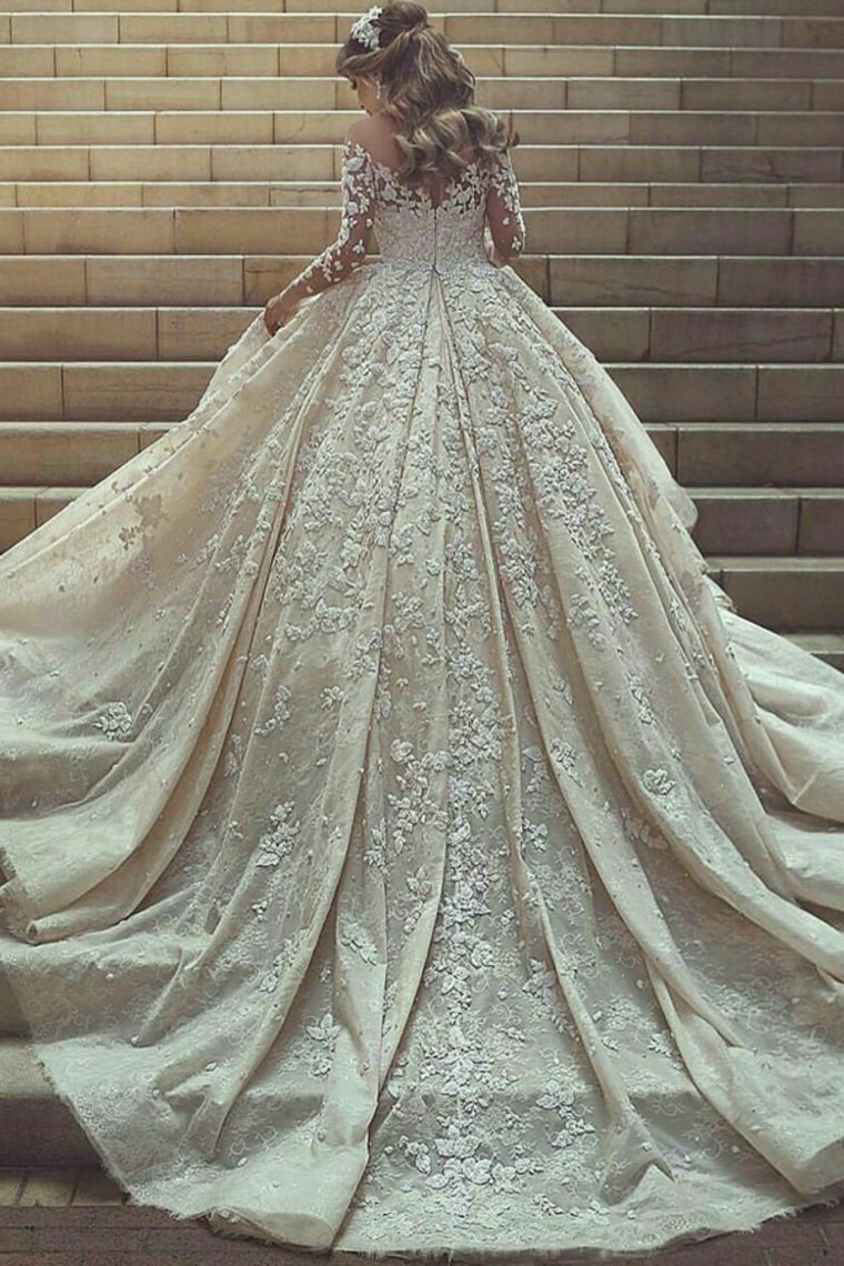 Gorgeous Beautiful Modest Lace Ball Gown Long Sleeves Wedding Dresses