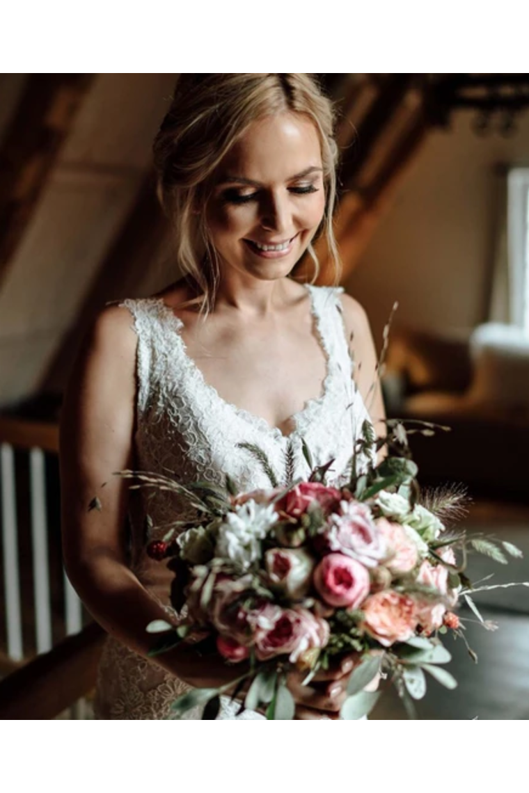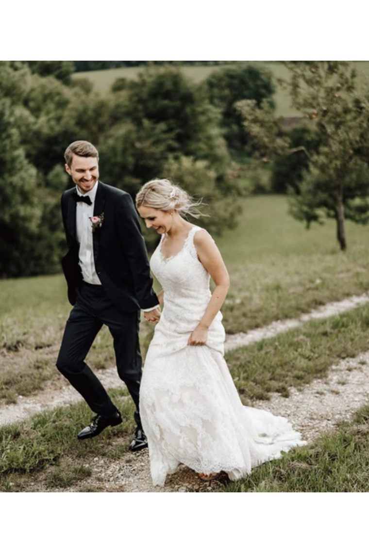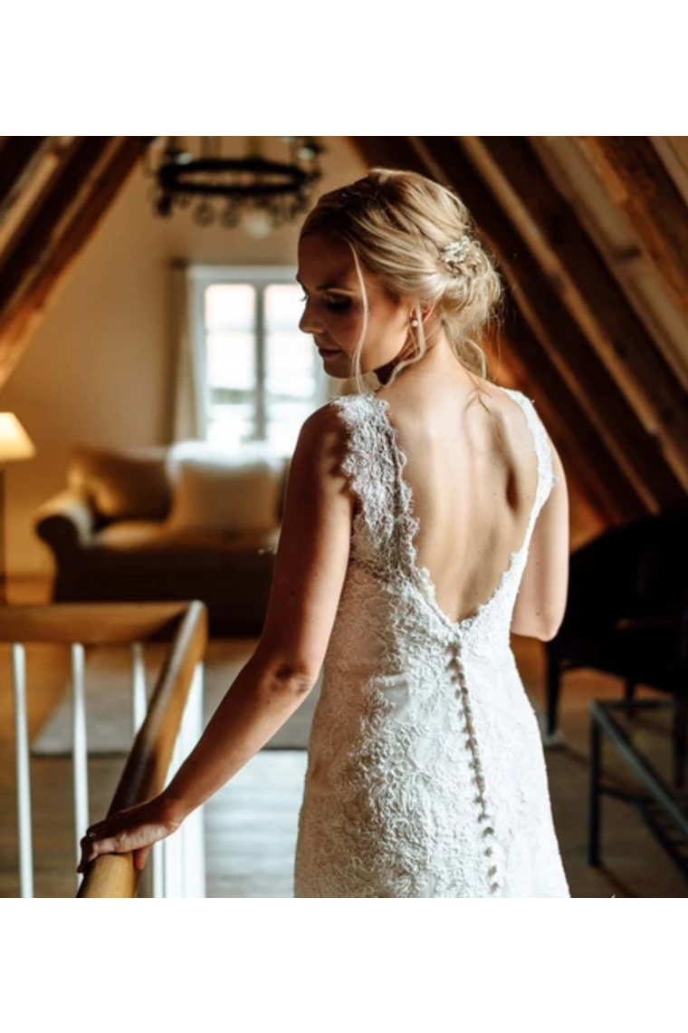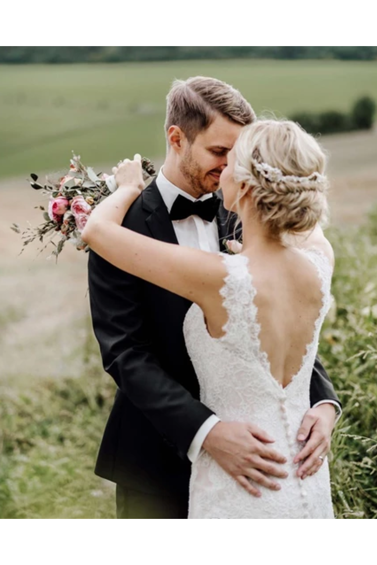 Graceful Lace Wedding Dress With Covered Buttons Mermaid Bridal Dress