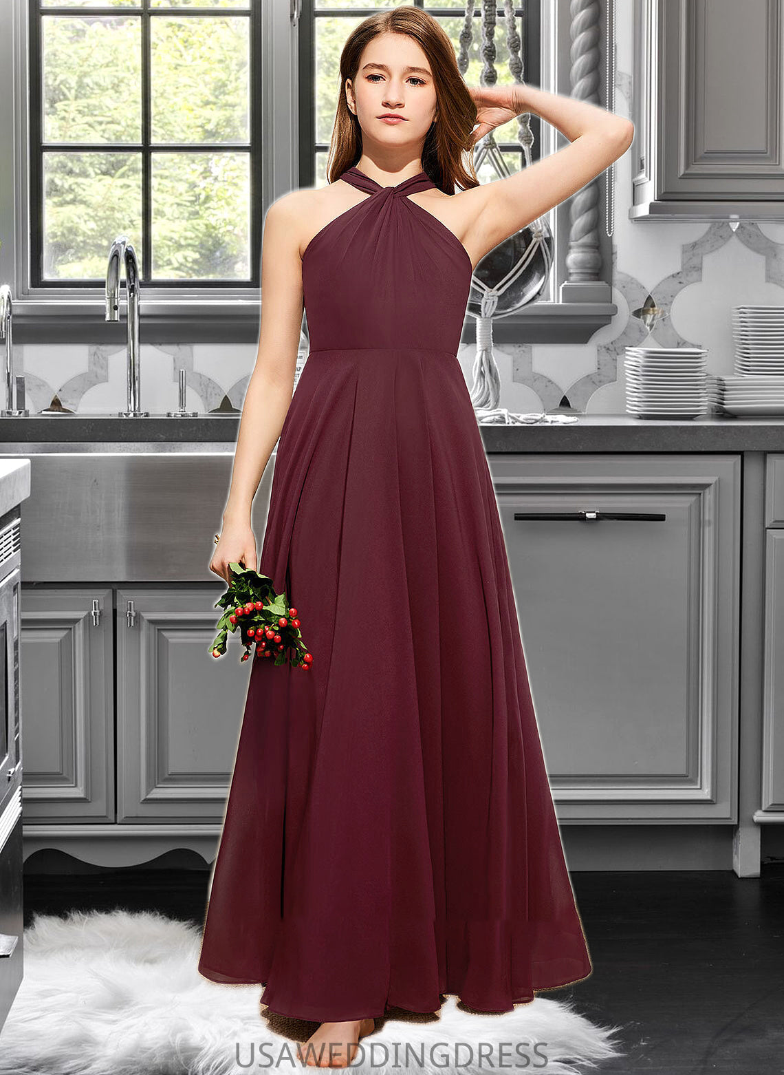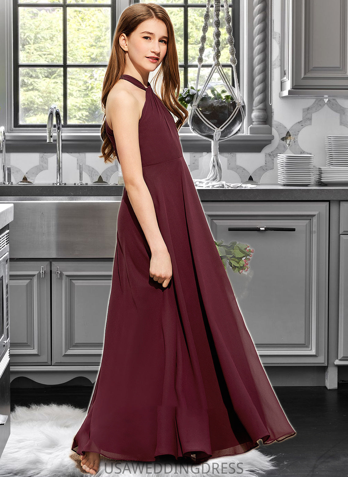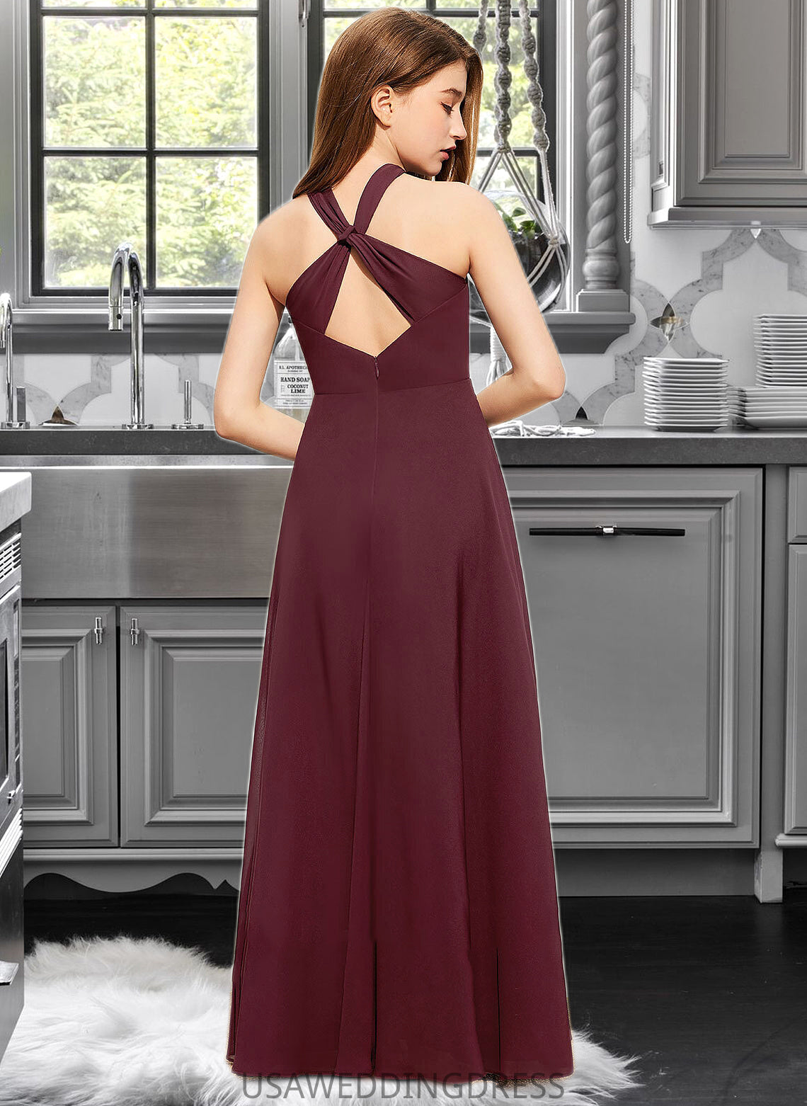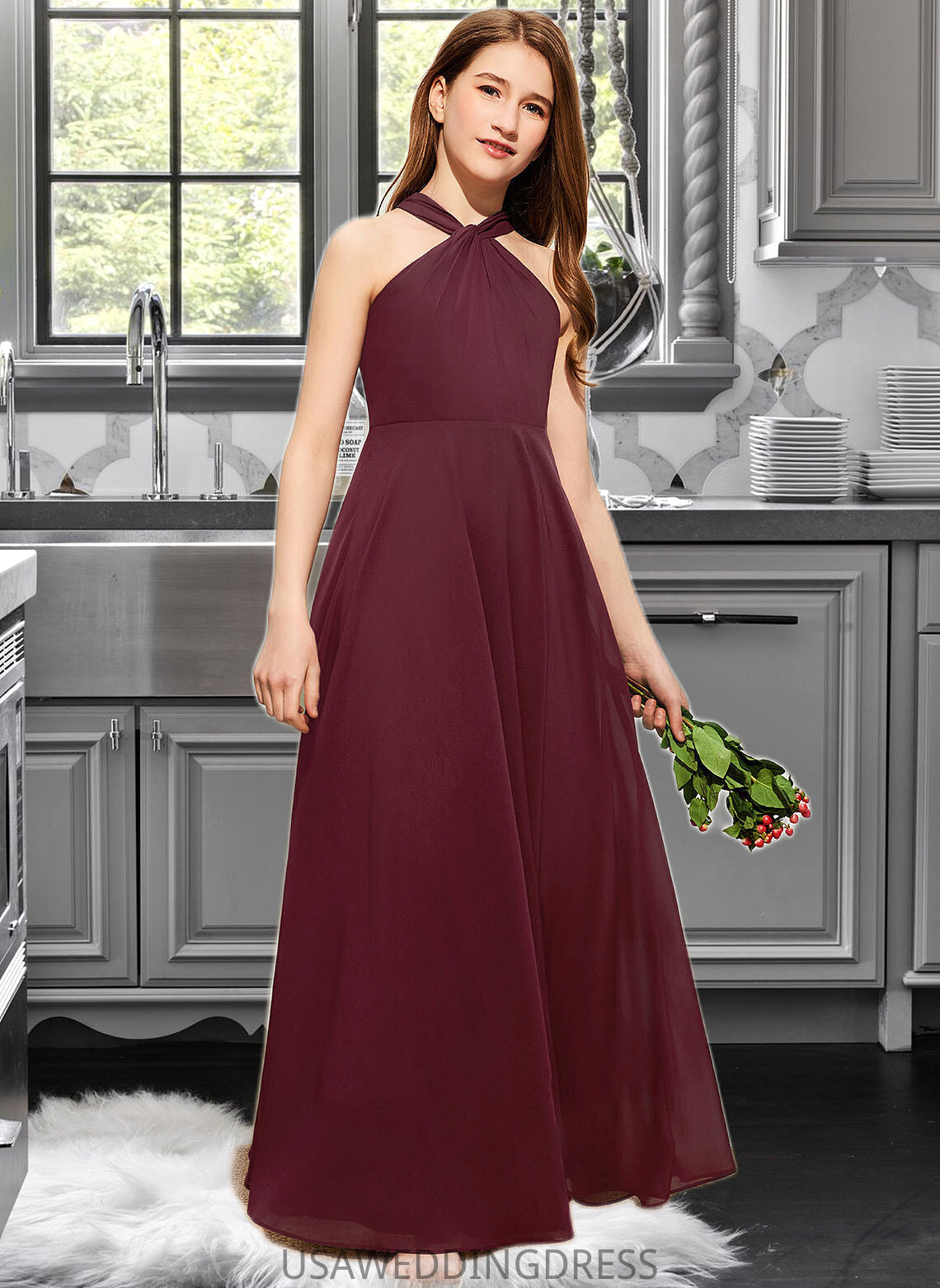 Gwendoline A-Line V-neck Floor-Length Chiffon Junior Bridesmaid Dress With Ruffle DSP0013468