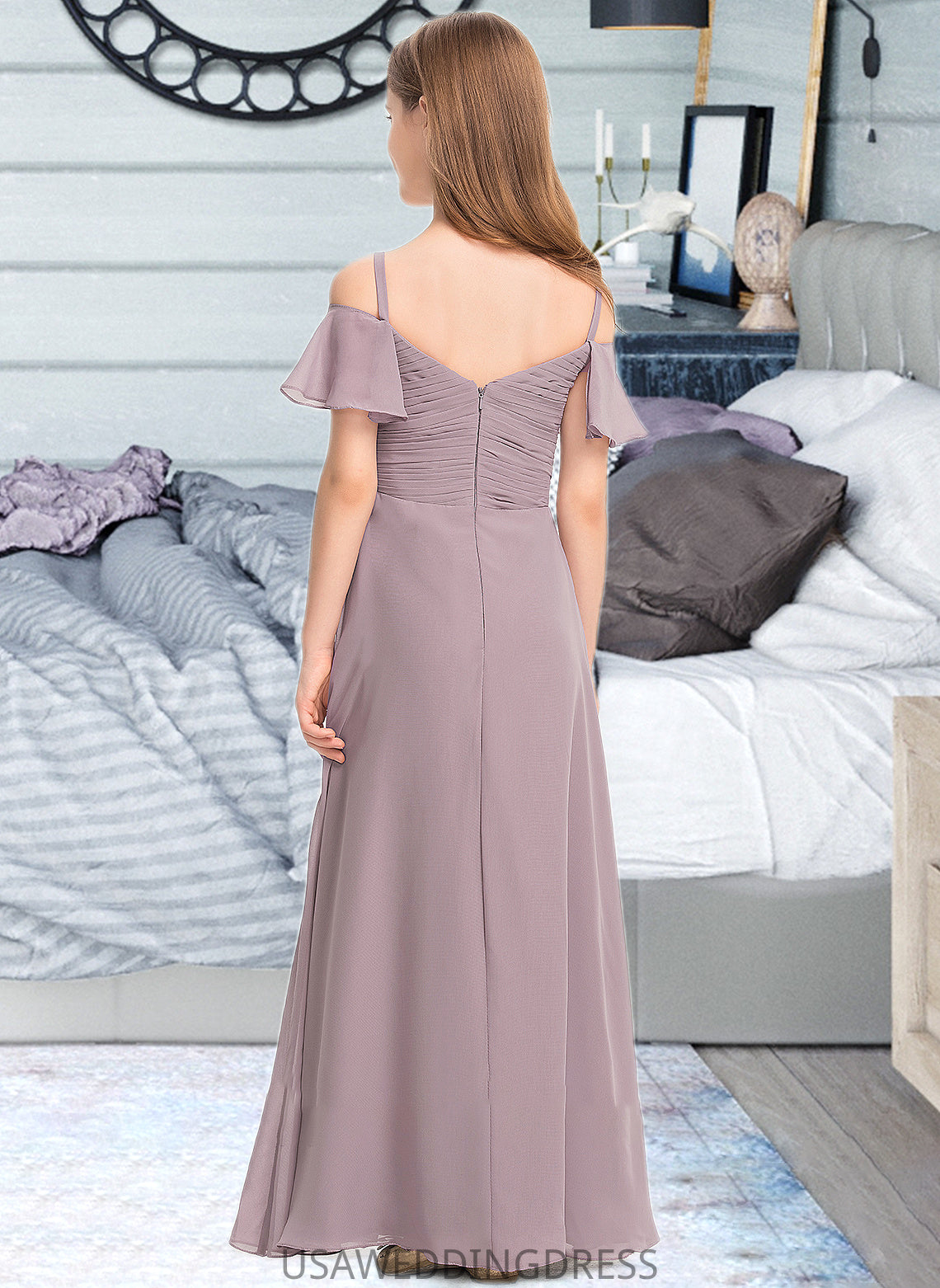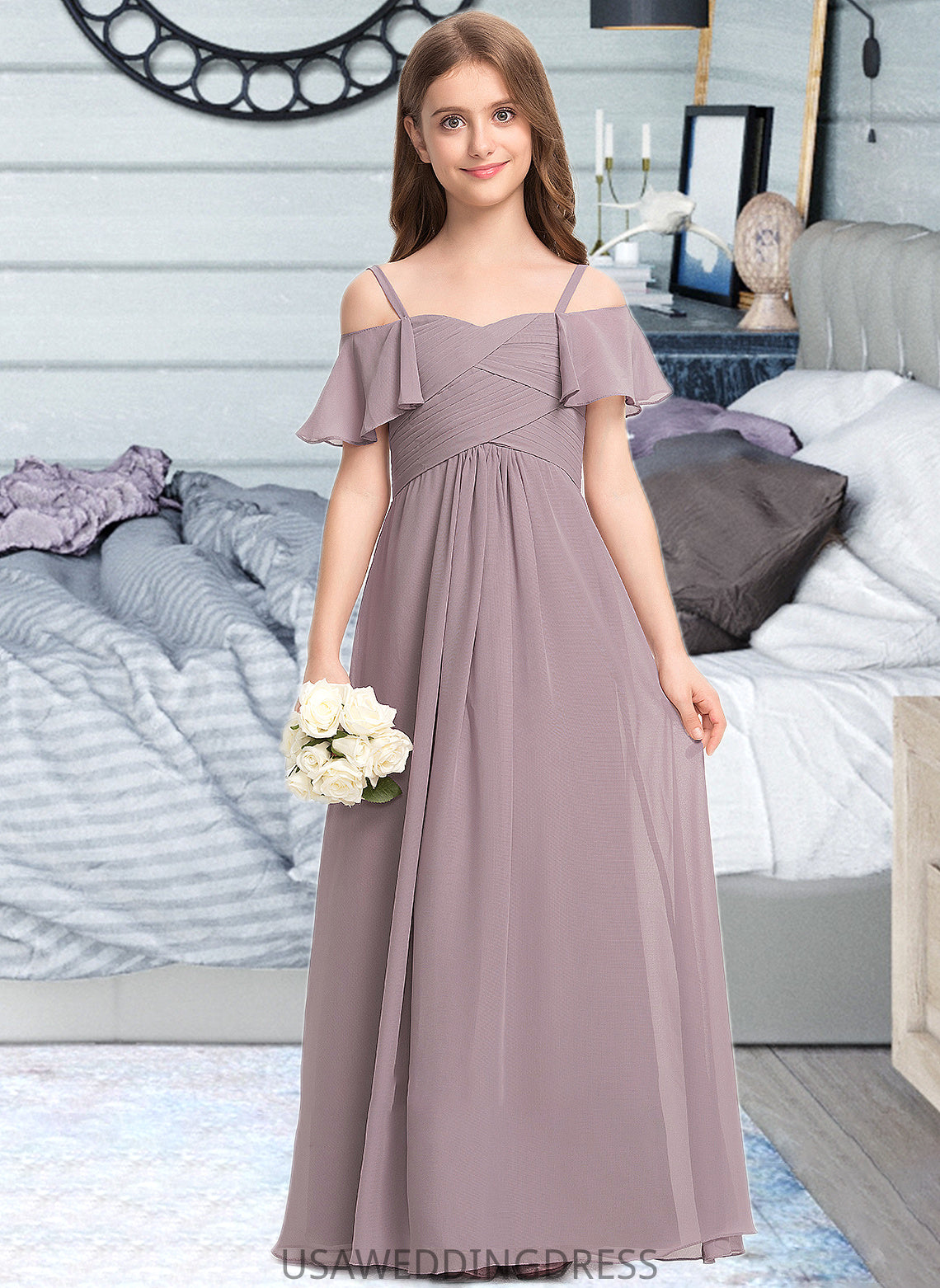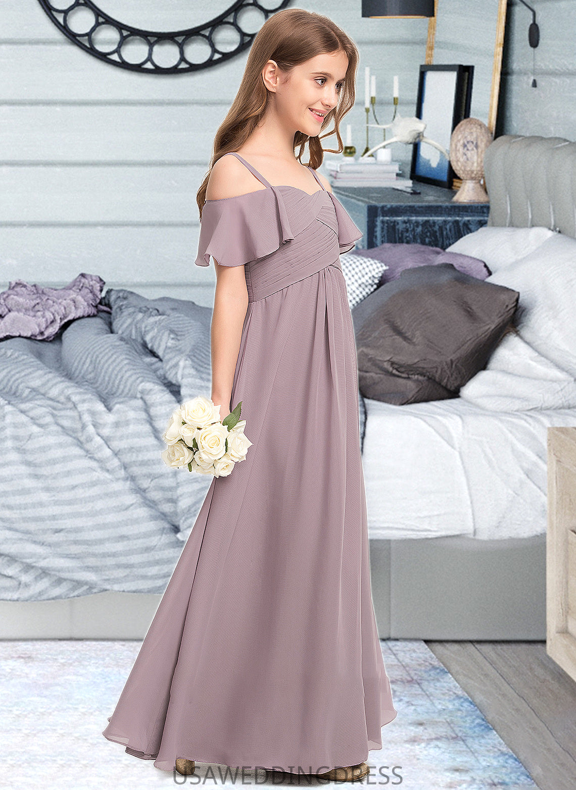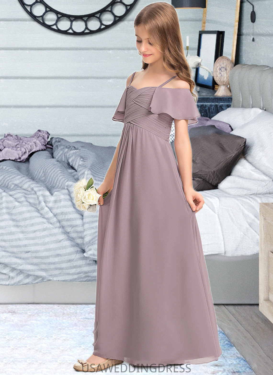 Hadassah A-Line Off-the-Shoulder Floor-Length Chiffon Junior Bridesmaid Dress With Ruffle DSP0013610
