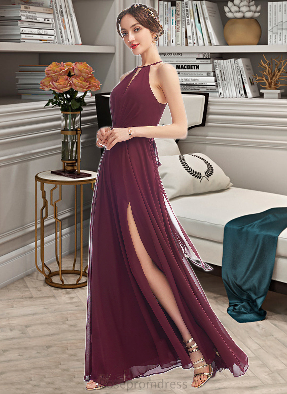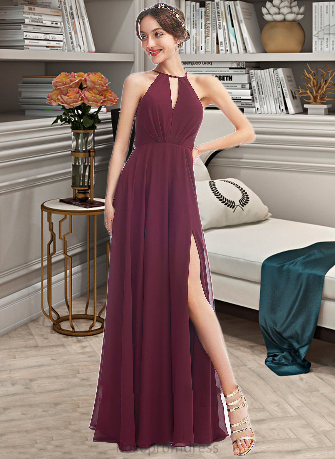 Hadley A-Line Halter Floor-Length Bridesmaid Dress With Split Front SRSP0012798