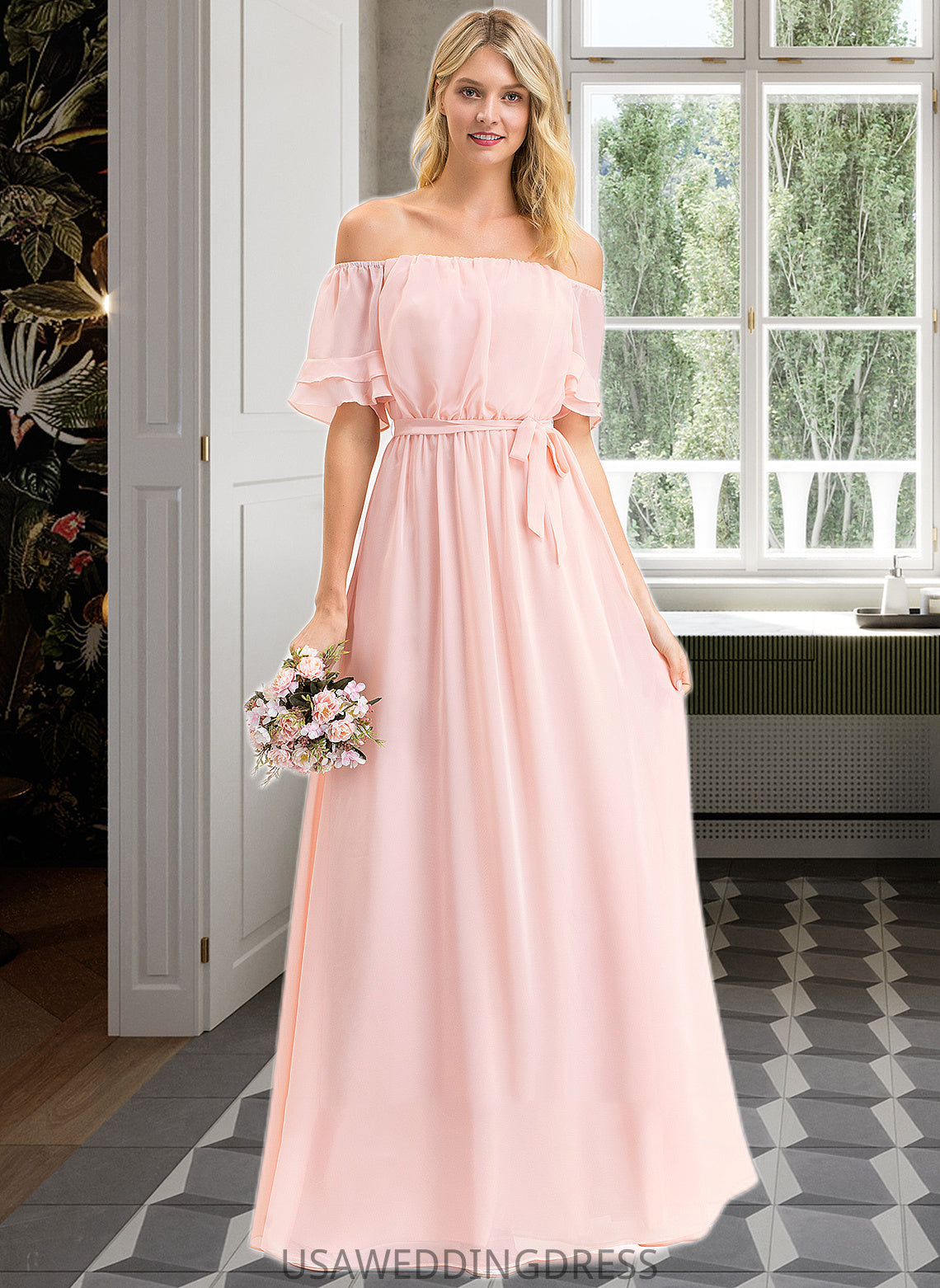 Halle A-Line Off-the-Shoulder Floor-Length Chiffon Bridesmaid Dress With Bow(s) Cascading Ruffles DSP0013121