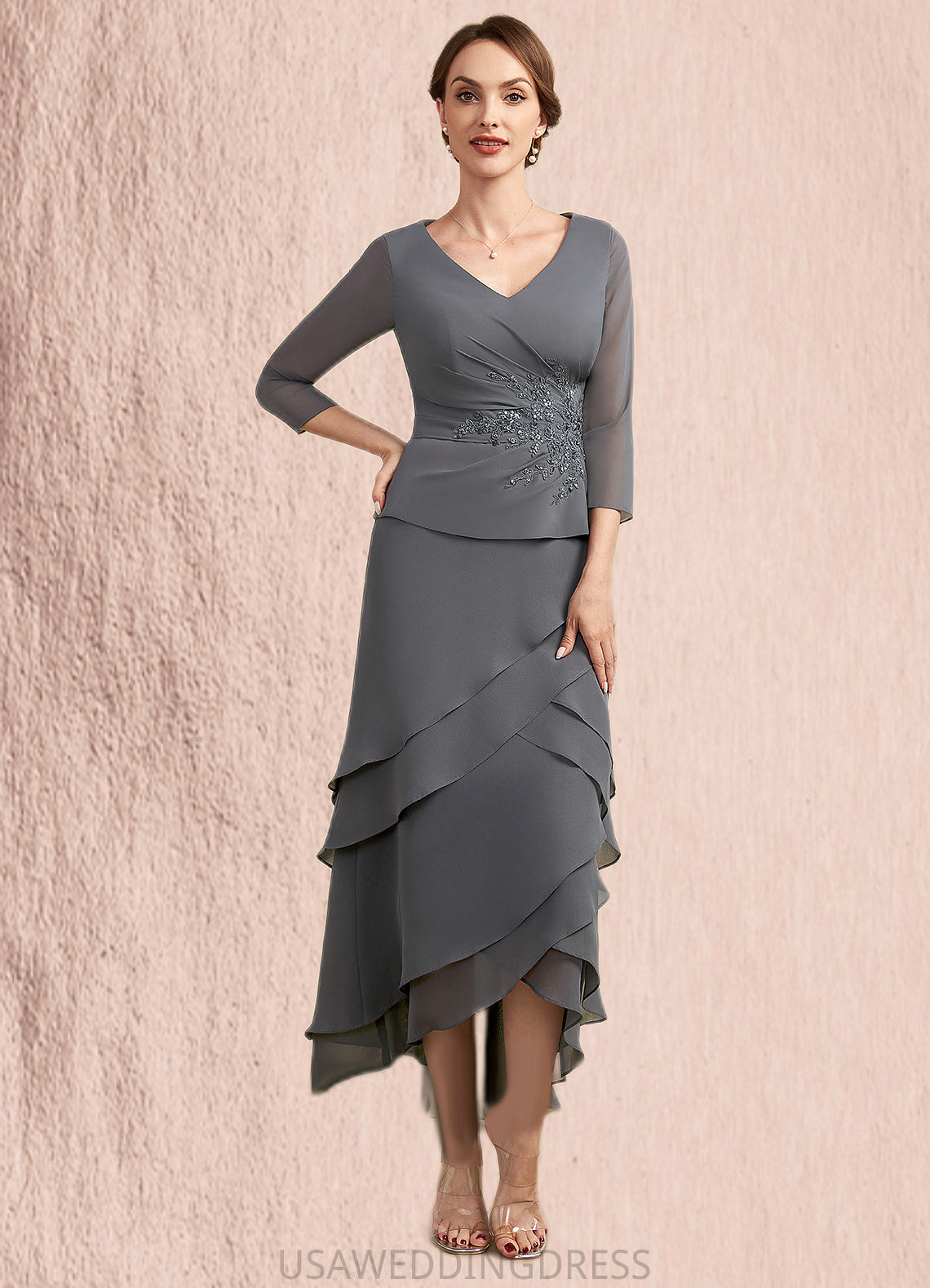 Hallie A-Line V-neck Asymmetrical Chiffon Lace Mother of the Bride Dress With Ruffle Beading Sequins DS126P0014860