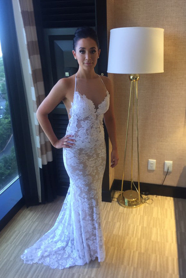 Halter Sweetheart Spaghetti Backlass Appliques Beach Wedding Dresses
