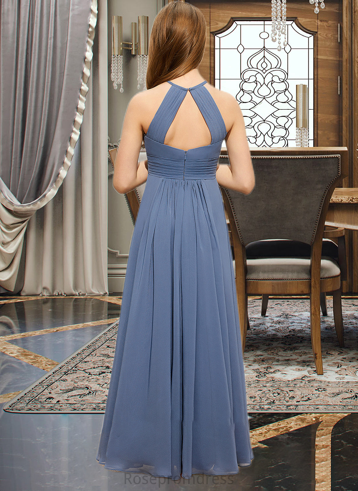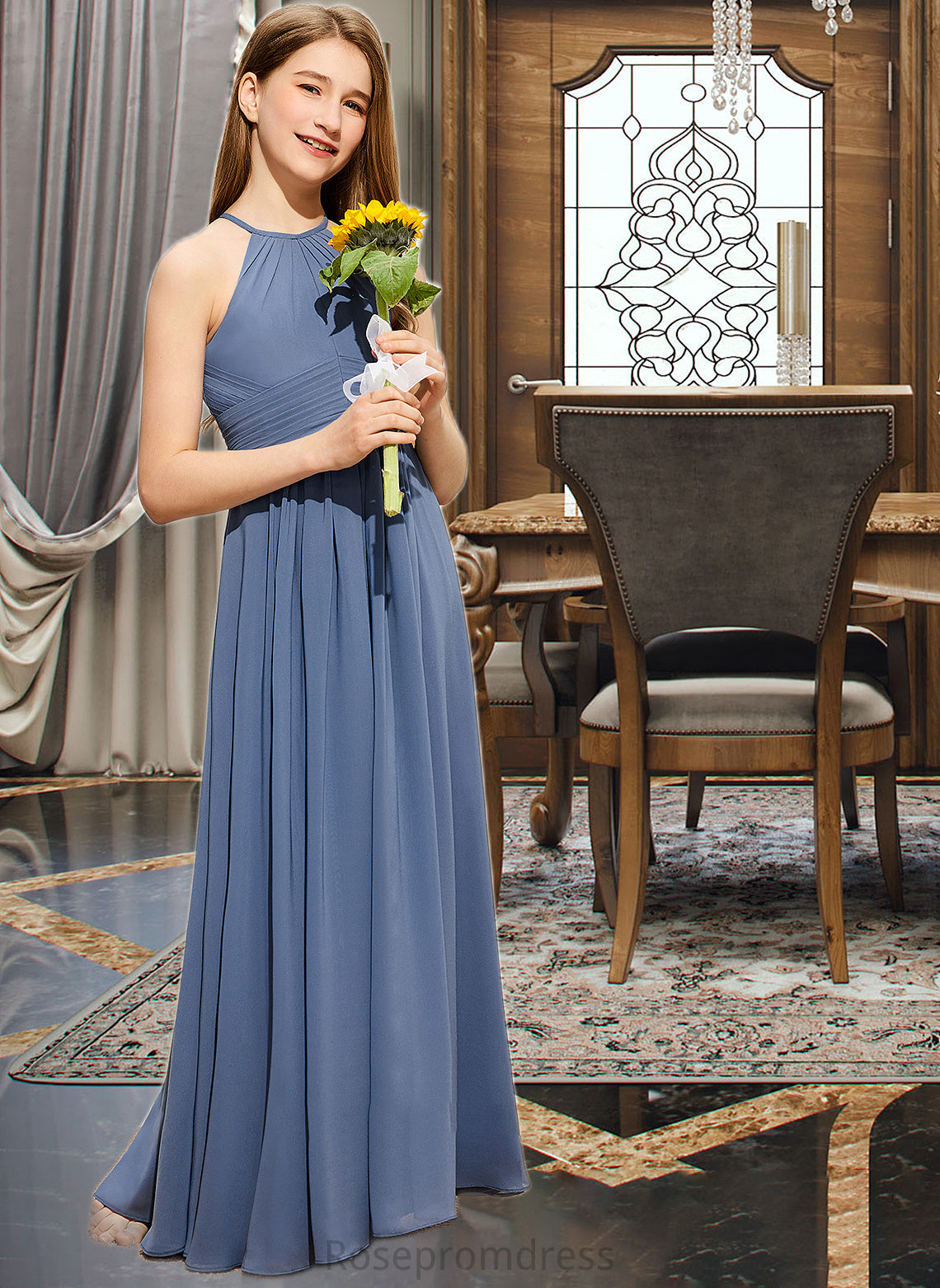 Hannah A-Line Scoop Neck Floor-Length Chiffon Junior Bridesmaid Dress With Ruffle SRSP0013641