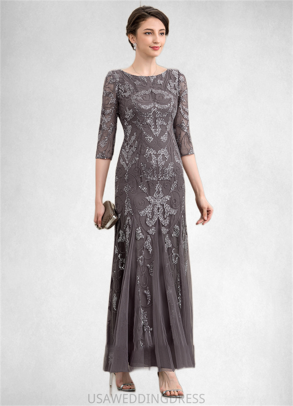 Hannah Sheath/Column Scoop Neck Ankle-Length Tulle Sequined Mother of the Bride Dress DS126P0014758